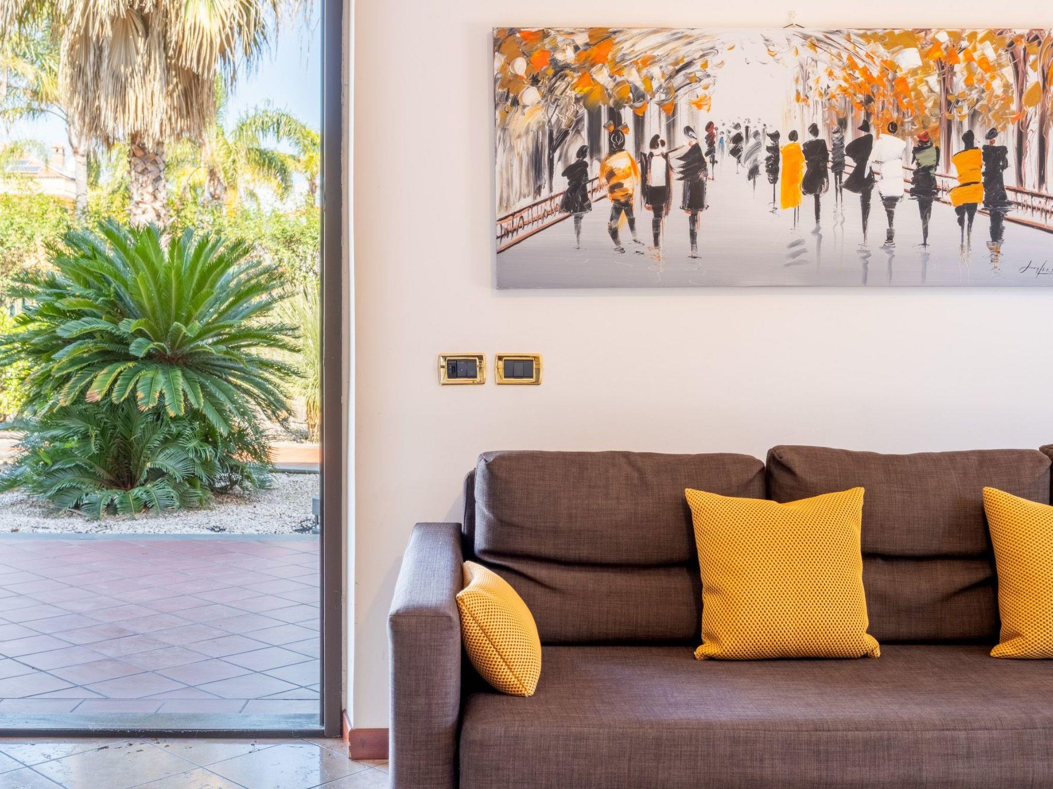 Surrounded by greenery and with a splendid view of the sea, this flat in a villa is the ideal choice for those who want a relaxing holiday and to discover the wonders of eastern Sicily. Located less than 300 metres from the beach, it is easily accessible on foot, offering you the opportunity to enjoy the sea without sacrificing tranquillity.