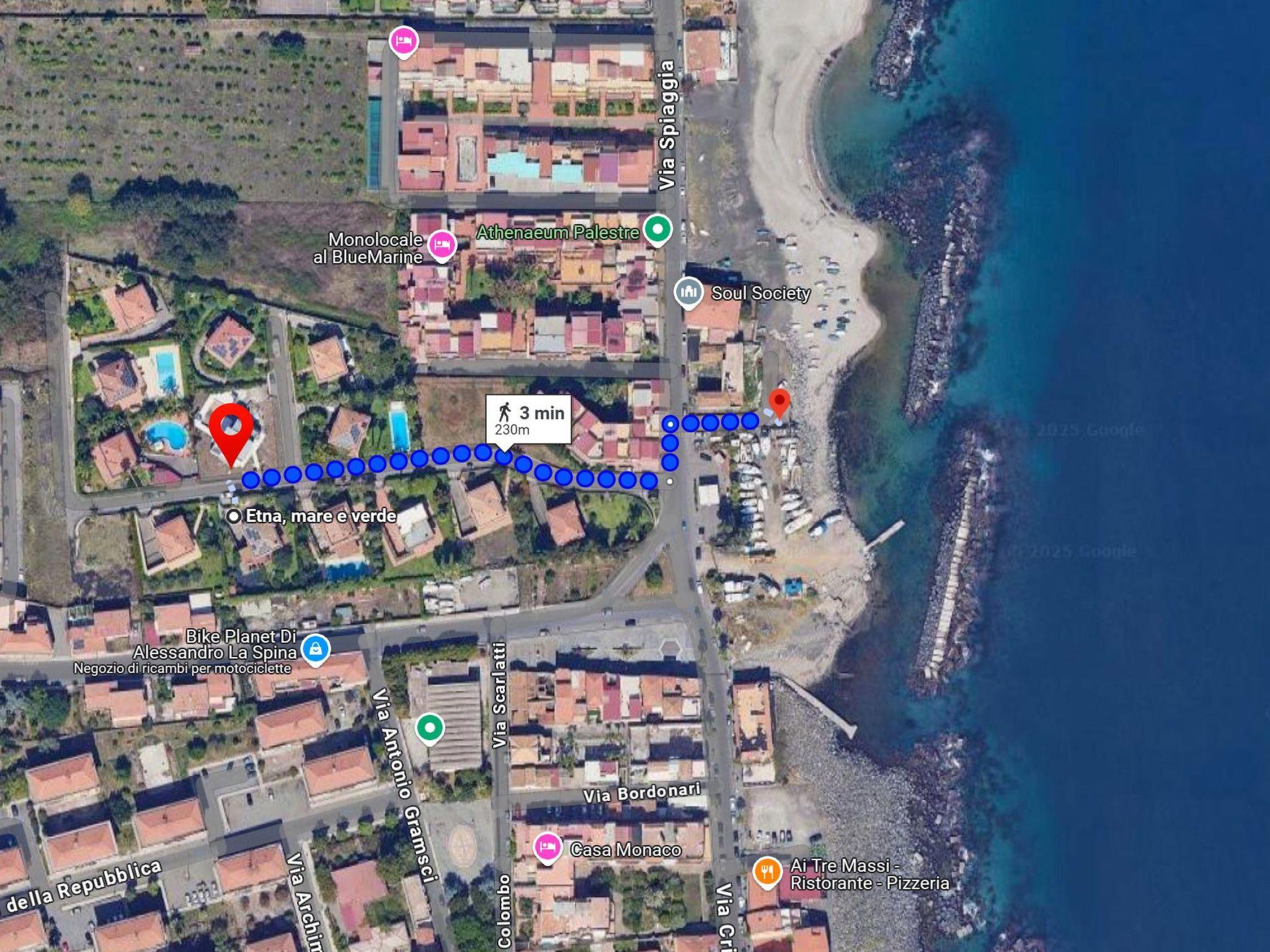 Perfectly connected, the villa is only 30 minutes from Catania airport, a 10-minute walk from the Giarre-Riposto railway station and the circumetnea railway, and just a 5-minute walk from the marina. The area offers all kinds of services: supermarkets, bakeries, pharmacies and an excellent fish market with fresh fish every day.