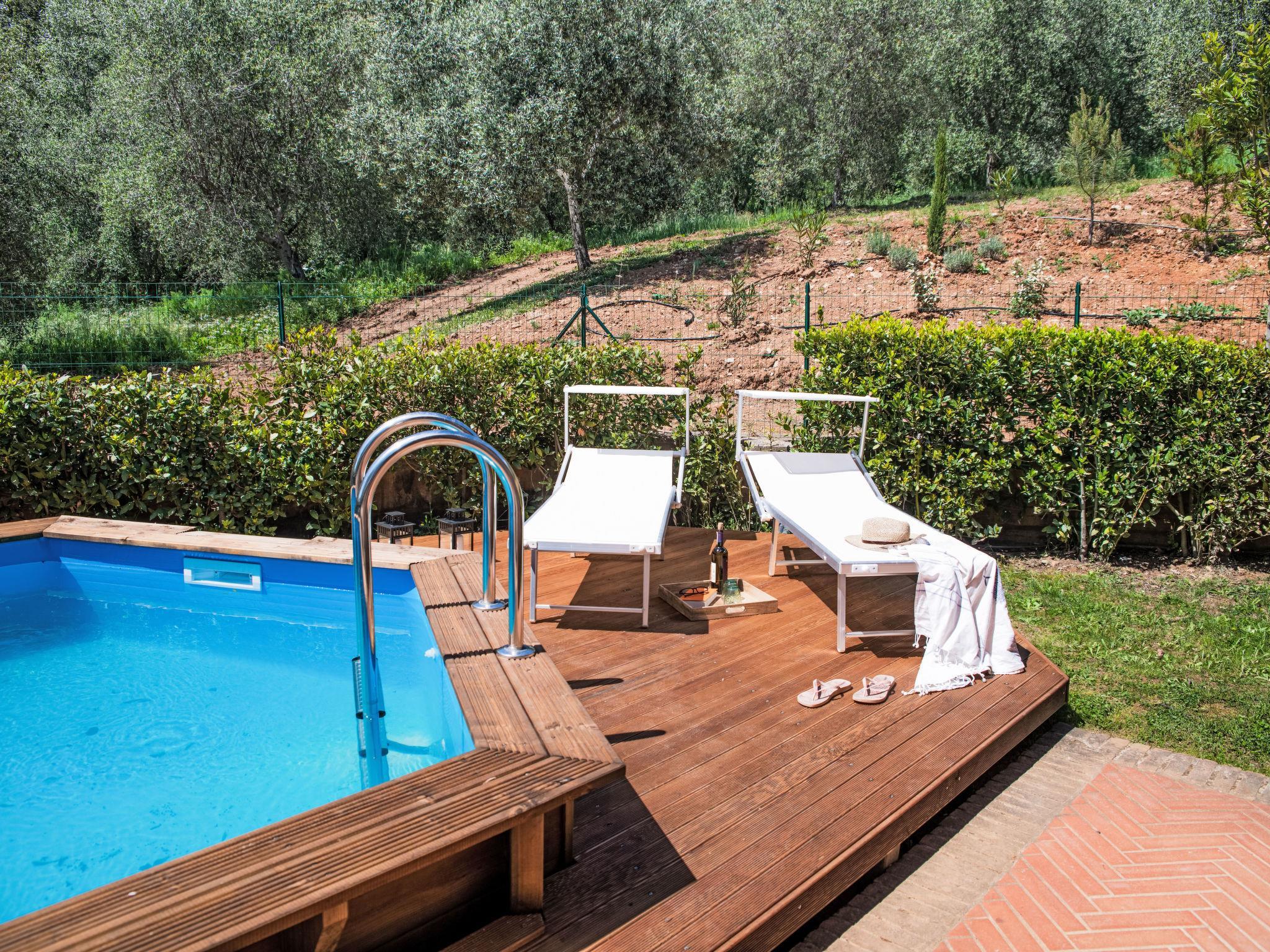 Cosy house "Olivo". 5 houses in the residence. In the district of La Pesta 9 km from the centre of Massa Marittima, in a sunny position on top of a hill, 17 km from the sea, 1.5 km from the lake, 17 km from the beach, in the countryside. Private: garden with wildlife garden, meadow, swimming pool (above ground) round (3 m diameter, seasonal availability: 15.May. - 30.Sep.). Outdoor shower, parking on the premises. Shop 5 km, grocery 5 km, supermarket 10 km, restaurant, bar 500 m, bicycle rental 10 km, bus stop "La Pesta" 500 m, sandy beach "Follonica" 9 km. Marina 22 km, golf course (18 hole) 15 km, surf school 20 km, minigolf 20 km, walking paths from the house 50 m. Nearby attractions: Valpiana 5 km, Gavorrano 14 km, Follonica 9 km, Cala Violina 25 km, Roccastrada 20 km. Well-known lakes can easily be reached: Lago dell'Accesa 1.5 km. Hiking paths: Riserva Naturale di Montioni 15 km. Please note: car recommended.