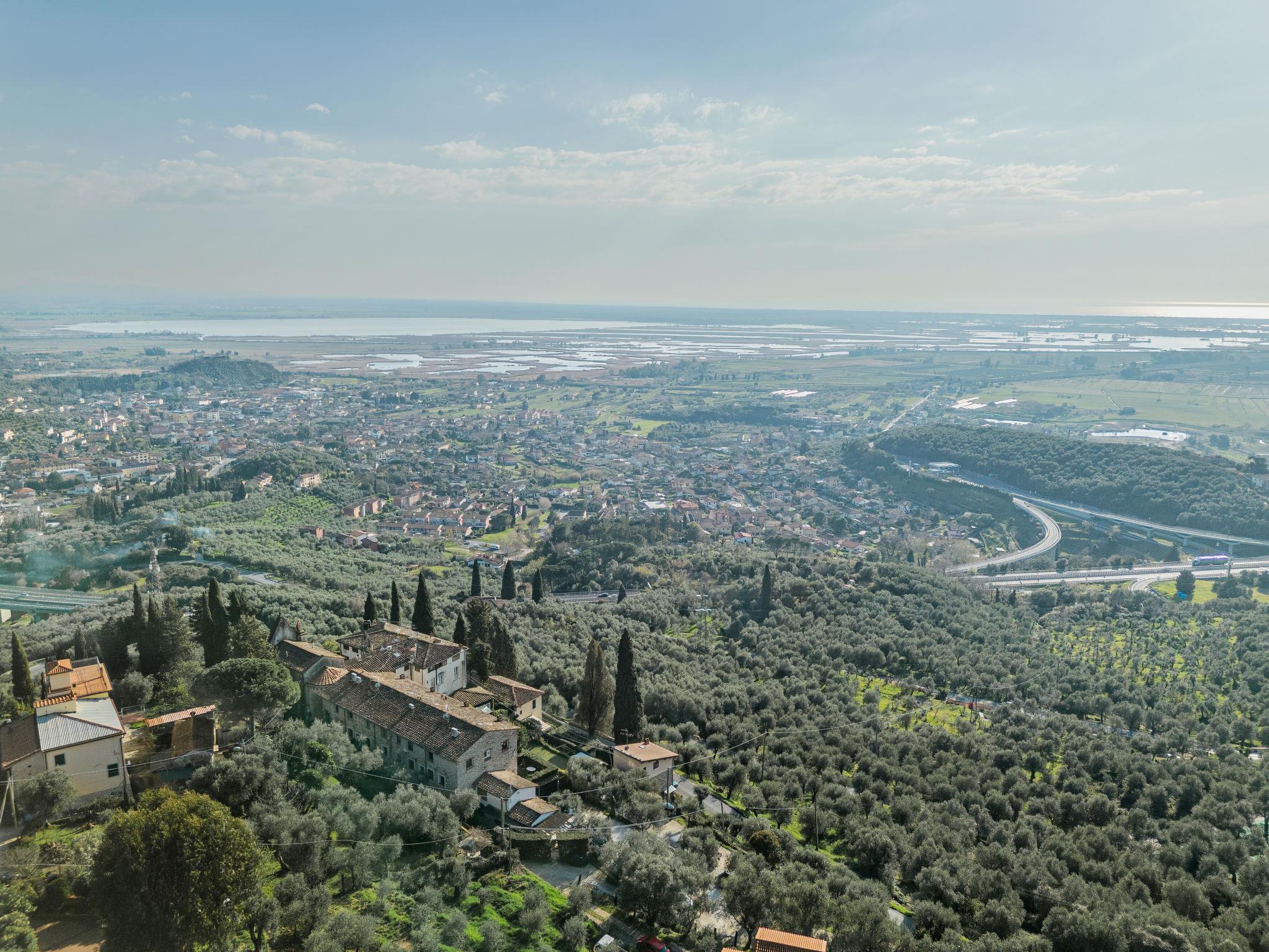 Piano di Conca 6 km from Massarosa: Detached house located on the hills, with a panoramic view of the Versilia coast. The property is located within a large private land, with a flower garden, olive grove, orchard, swimming pool. Despite being in an extremely quiet position, it is well served by the road network which allows easy travel to all the cities of Tuscany. Pool maintenance every Wednesday, from 18:00 to 19:00 and Saturday from 9:00 to 12:00. Rustic villa "Villa Le Casette", renovated, surrounded by trees and meadows. 6.5 km from the centre of Viareggio, 26 km from the centre of Pisa, 25 km from the centre of Lucca, 6.5 km from the sea, 3 km from the lake, 6.5 km from the beach, in the countryside. Private: garden 1'200 m2 with lawn, swimming pool round (8 m diameter, depth 120 cm, seasonal availability: 09.May. - 10.Oct.). Garden furniture, barbecue, pool maintenance by the owner/gardener. Heating available only from 01.Nov. - 15.Apr.. Motor access to the house (500 m via unmade road). Parking on the premises. Shop 2 km, bus stop 500 m, railway station "Viareggio" 6.5 km. Tennis 8 km. Please note: car recommended.