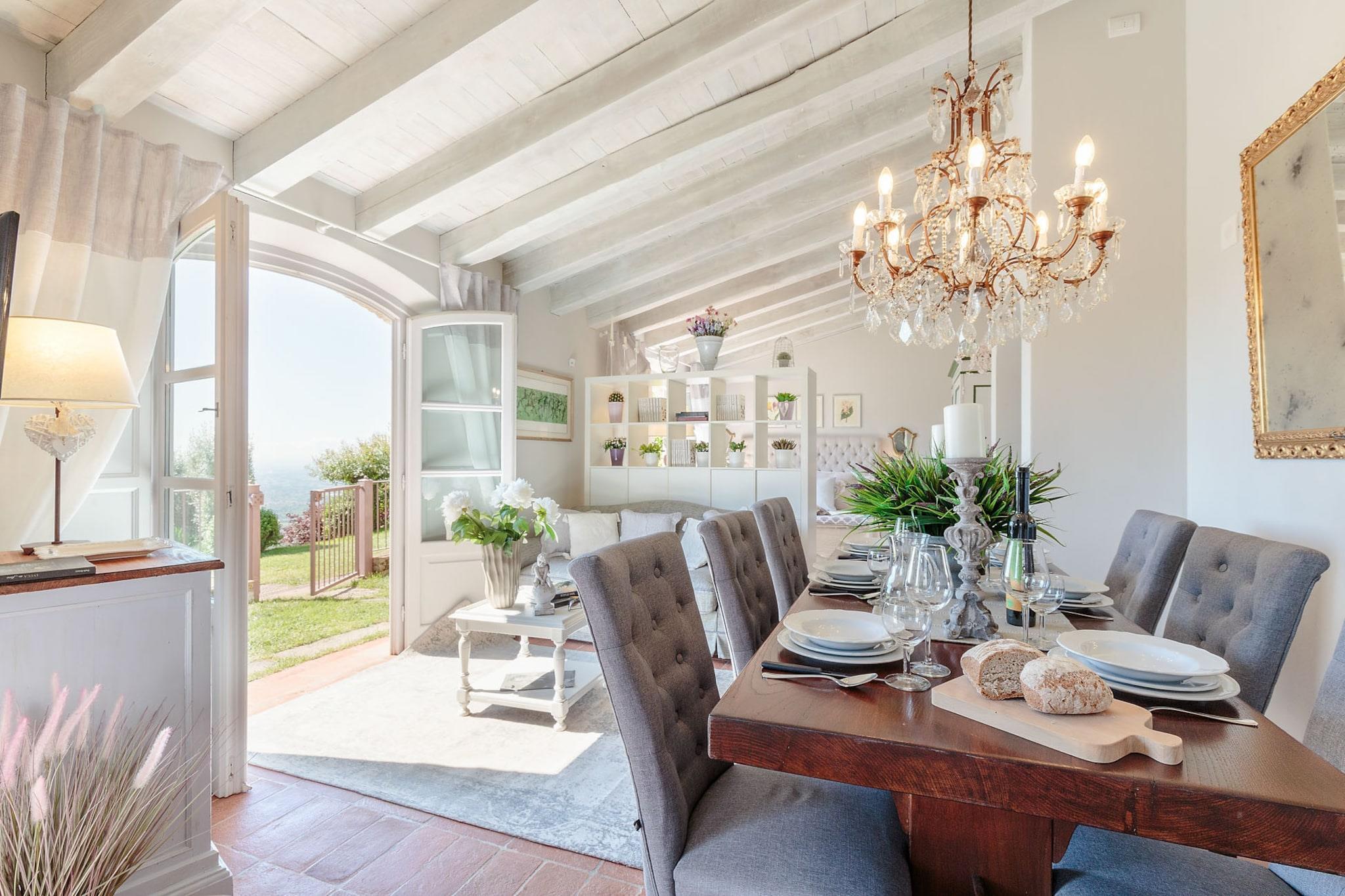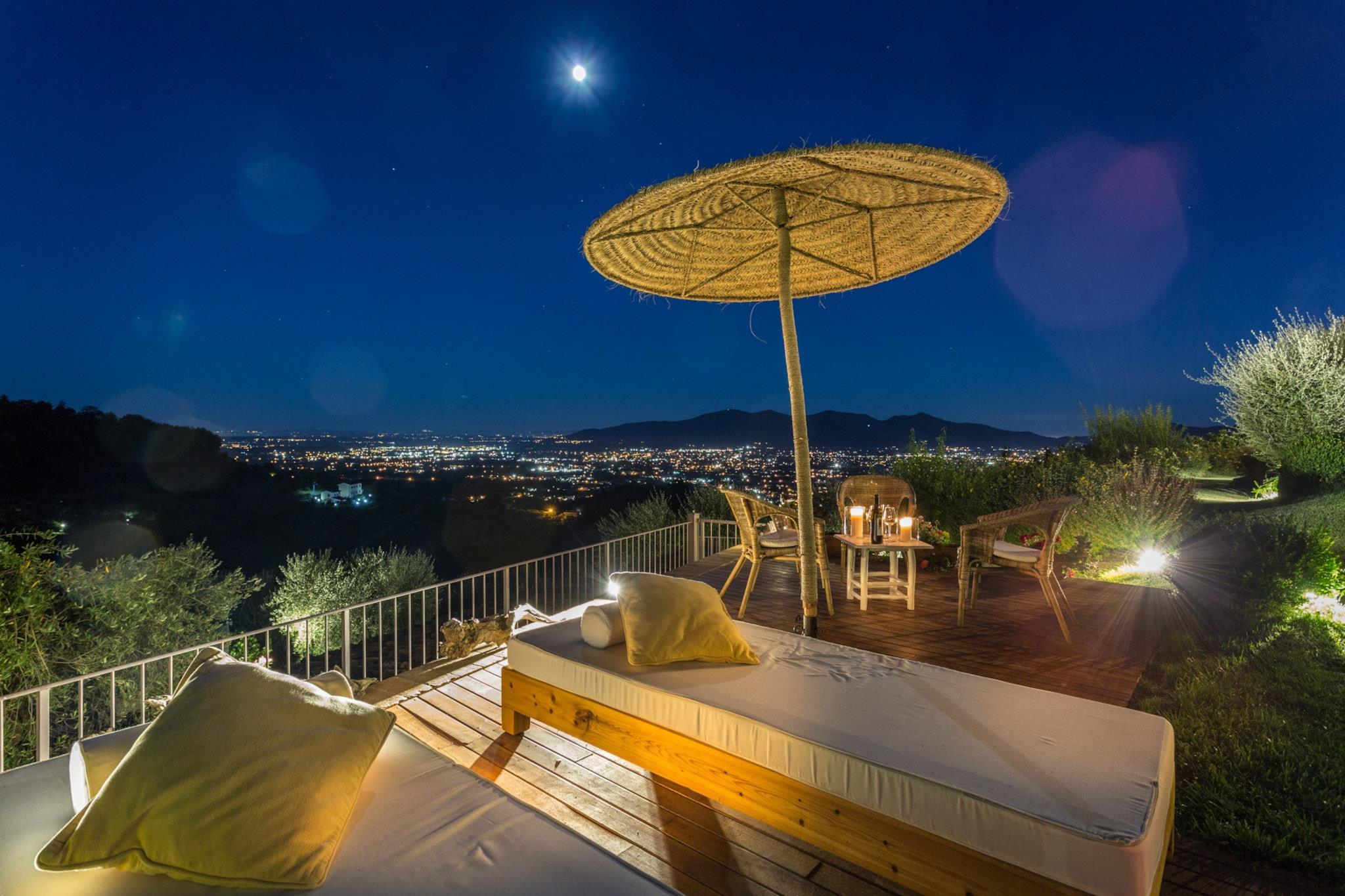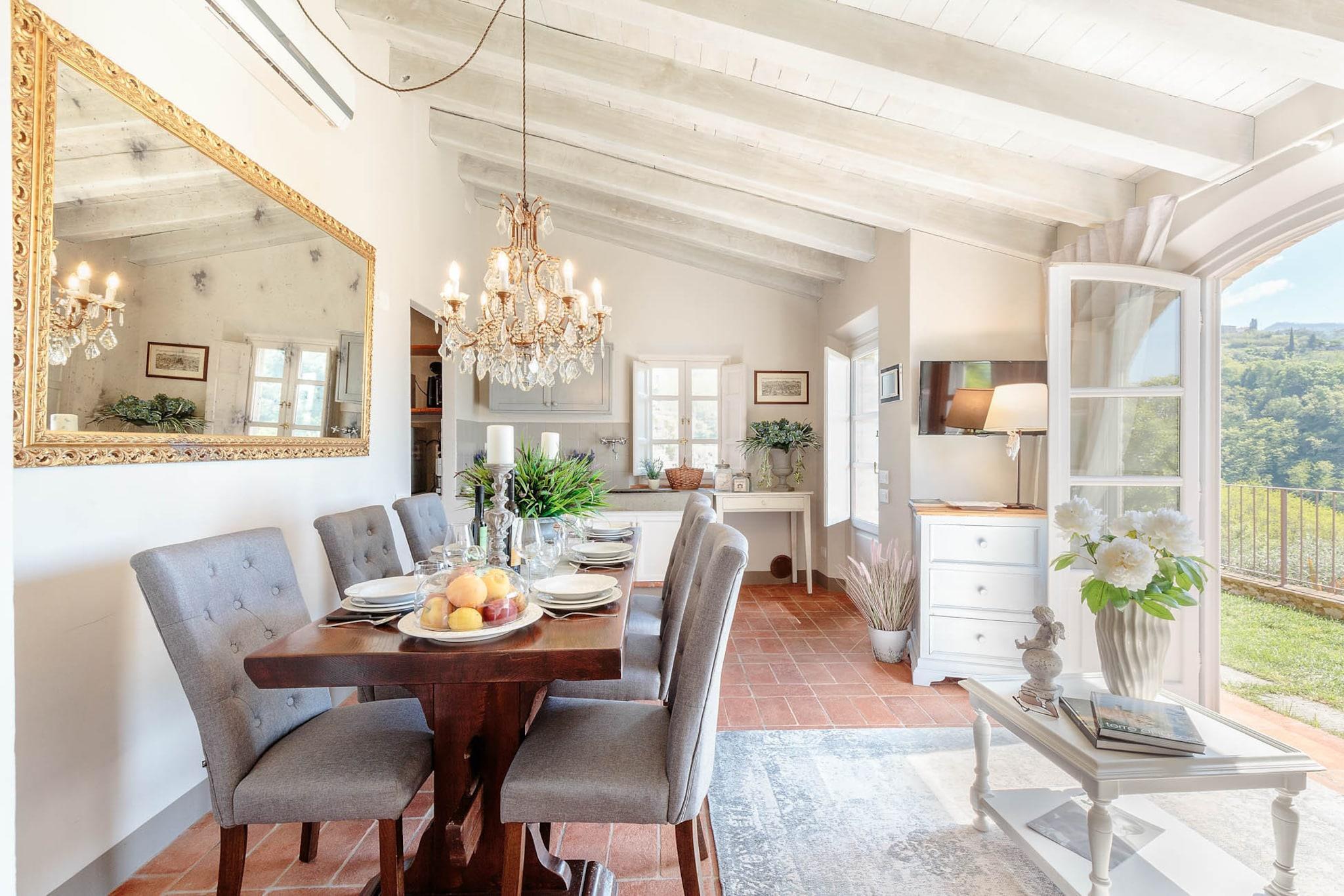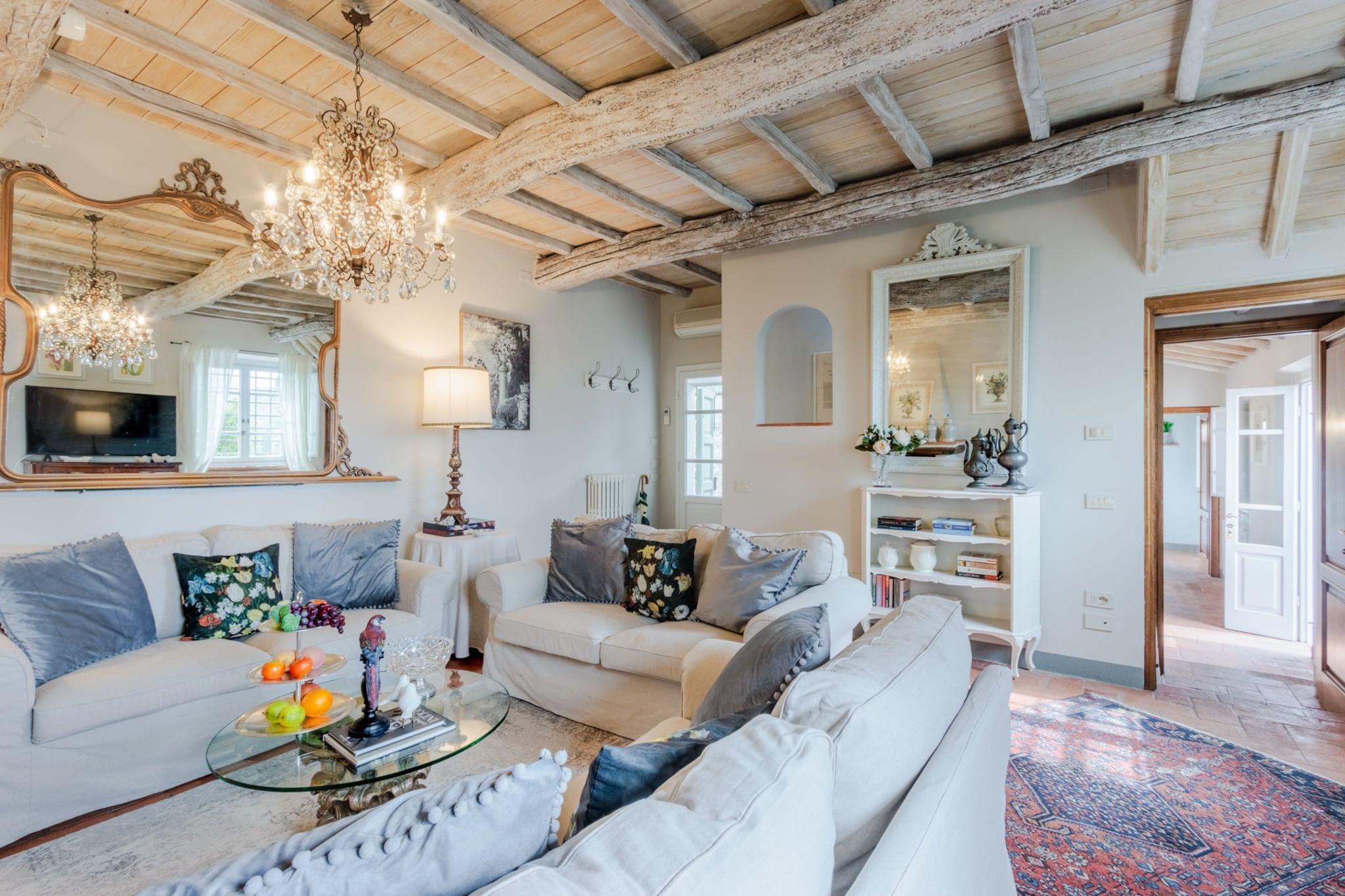 Beliggende 300 meter højt i Luccas bakker, nær den maleriske landsby Ciciani, tilbyder dette fantastiske bondehus og olivenolie-ejendom et bemærkelsesværdigt tilflugtssted. Ejendommen ligger på en vidtstrakt 5 hektar stor ejendom dedikeret til produktion af ekstra jomfruolivenolie og byder på tre udsøgte stenhuse omkring en spektakulær infinity-pool (12 x 6,5 meter) med en betagende udsigt over den historiske by Lucca. Hver gruppe har eksklusiv adgang til hele ejendommen, hvilket sikrer privatliv og ro. Nyd den udendørs livsstil med en terrasse ved poolen, der er perfekt til solnedgangscocktails og mindeværdige aftener. Den skyggefulde spiseplads er udstyret med et fuldt udstyret køkken, grill og brændefyret pizzaovn, ideel til måltider under åben himmel. Hvert hus er designet til komfort med aircondition og højhastigheds-Wi-Fi, samtidig med at den charmerende bondegårdsstemning opretholdes. Hyggelige spiseområder og indbydende opholdsområder skaber den perfekte atmosfære til afslapning og kontakt med dine kære. Denne ejendom fungerer som en indgang til at udforske Toscanas skatte, fra middelalderbyer og anerkendte vinmarker til ikoniske byer som Pisa, Firenze og Siena, alt sammen inden for en times kørsel. Nyd en perfekt blanding af eventyr og ro, uanset om du nyder hjemmelavede måltider under stjernerne eller slapper af ved infinity-poolen. En uforglemmelig ferie venter dig, der beriger din sjæl med skønheden og varmen i denne bemærkelsesværdige region.