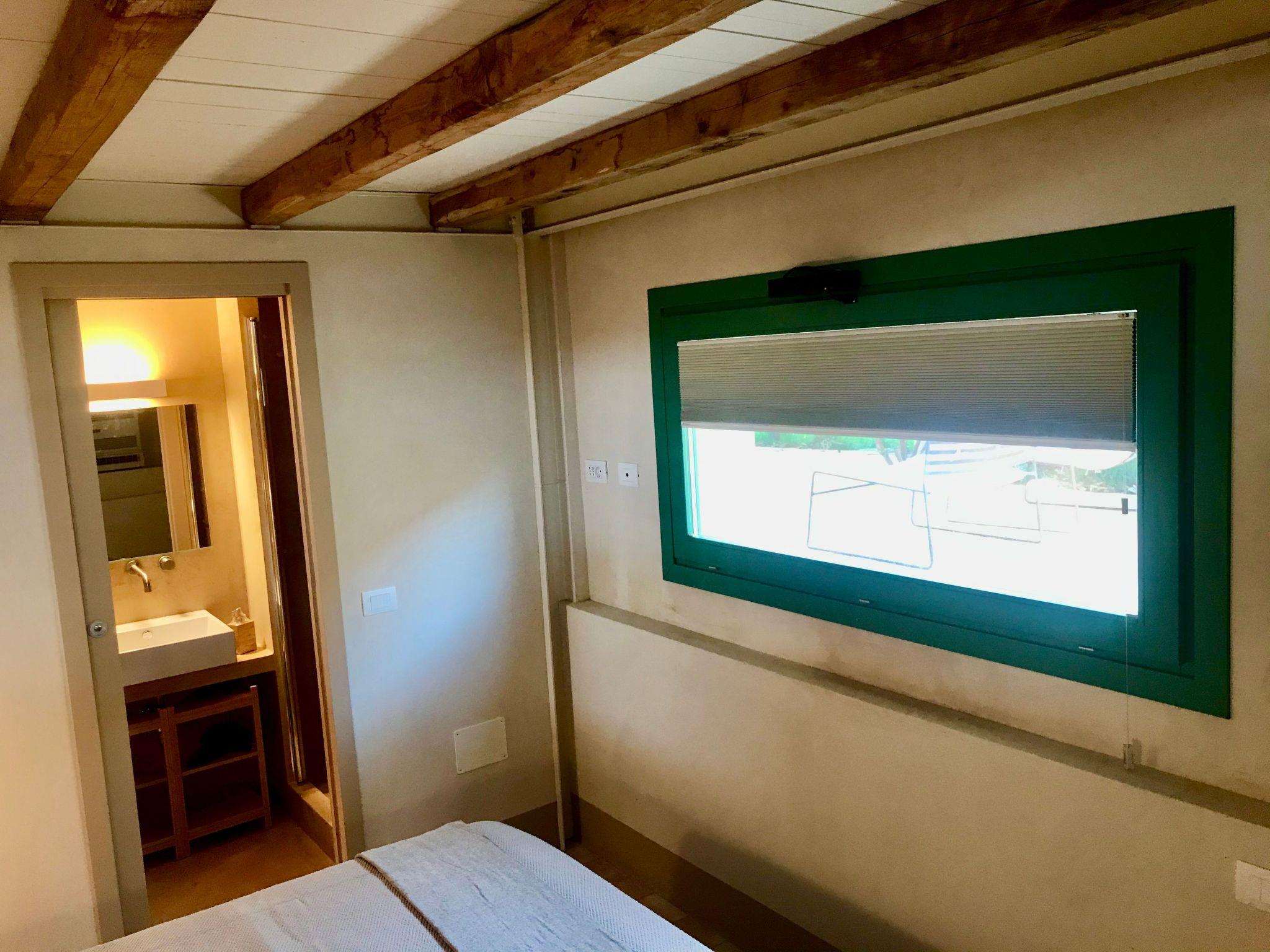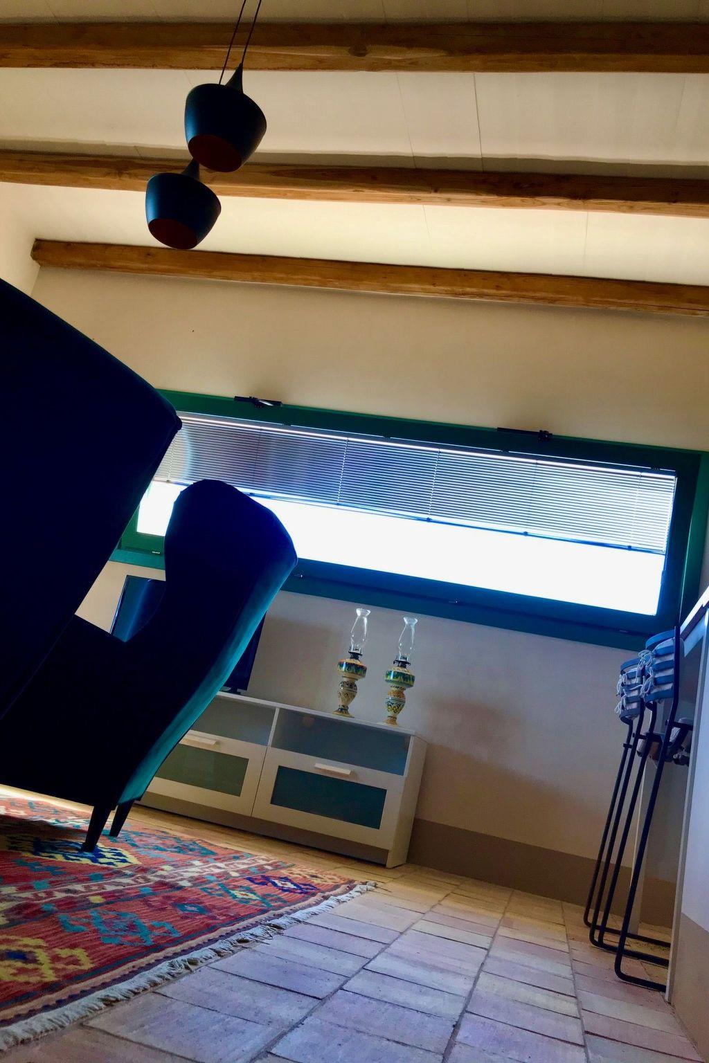 The Palm, another ornamental plant that has typified the landscape of Sicily for centuries, welcomes guests who wish to stay in this House. The Casa della Palma is accessed through a large, panoramic veranda covered with reeds facing south-east and raised above ground level; it is bordered on the north side by a courtyard below from which emerges, majestic, the foliage of the palm tree that inspired us to identify this house. It is arranged on a single level; from the covered veranda one is welcomed into the living area; a rectangular window facing south, delimiting the wide and deep panorama that can be seen, effectively becomes the frame of the natural picture it creates, in which the "painting" is represented by the countryside, the valley and the sea that closes the background. The living room is equipped with all comforts; the furnishings are characterised by simplicity, sobriety and essentiality; it is then characterised by the presence of an efficient cooking corner with a wooden base equipped with all the necessary services and accessories. In the centre of the room two colourful bergère armchairs allow for fantastic moments of absolute relaxation. Outside the living room is the reed-covered veranda that allows guests to savour the concrete experience of living Sicily in its deepest essence. Here, guests can sweep their gaze over a horizon that, from the northeast to the southeast, embraces all the surrounding countryside and nature with the horizon bordered by the hills of Caltabellotta and Sciacca on one side and the Capparina promontory covered in olive trees that slopes down to embrace the sea. In this cosy space they can indifferently organise their meals and also enjoy the cool evenings that the temperate evening climate of Sicily gives us. The house has two bedrooms.The first bedroom, through two large, bright windows, faces east to the previously described veranda with the palm tree canopy and north to the surrounding countryside and orchard. Its soft colours reflect that of the surrounding natural elements and harmonise well with the sobriety of its furnishings. One descends into it via a small masonry staircase and overall it gives guests a special feeling of inner intimacy. It has an independent room service at its disposal. The furnishings include a double bed, a walk-in wardrobe and a chest of drawers. The large French window can be closed by curtains made of completely blackout material to allow maximum comfort for guests who prefer to rest in the dark. From the living area, a small hallway leads to the second bedroom; this has been realised with the adoption of a particular architectural solution that has allowed it to be superimposed on the first with the help of an iron supporting structure and wooden walls. Passing through the entrance door, a small masonry staircase provides access to the floor where there are two single beds that can be converted into a double bed; a large north-facing window allows one to enjoy the countryside and the surrounding orchard. The room inside is also equipped with drawers and has its own bathroom. Special curtains on the window frames, made of completely blackout material, provide maximum comfort for guests who prefer to rest in the dark. The House is fully air-conditioned and Wi-Fi is always active and accessible in all its indoor and outdoor areas.