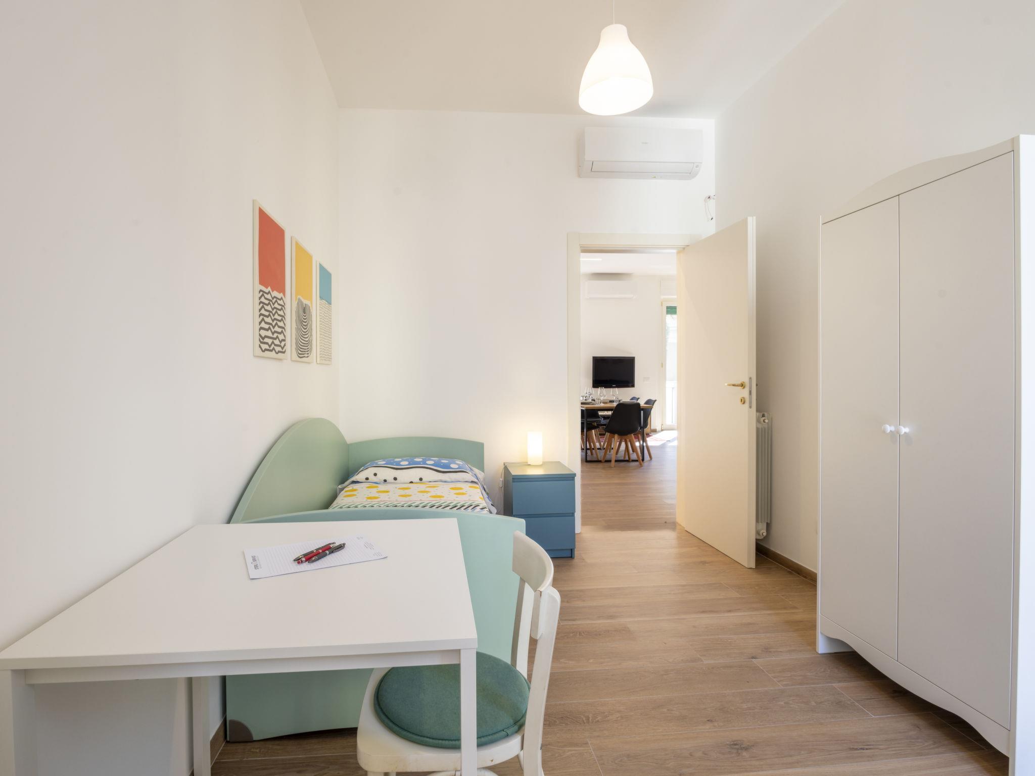 3-room apartment 101 m2 on 3rd floor. Spacious and bright, fully renovated in 2025, modern and stylish furnishings: large living/dining room with 1 sofabed, dining table, TV, radio, CD-player and hi-fi system. Exit to the balcony. 1 room with 1 bed, 1 pull-out bed and bathroom. Exit to the balcony. 1 double bedroom with Dressing room with TV. Luggage room. Large kitchenette (oven, dishwasher, 4 induction hot plates, toaster, kettle, freezer, electric coffee machine, Capsules for coffee machine (Nespresso) extra, combination microwave). Shower/bidet/WC. Heating, air-conditioning. 2 balconies. Facilities: washing machine, iron, children's high chair, baby cot, hair dryer. Internet (WiFi, free). Please note: non-smokers only. Fire extinguisher. IT015146C268UZSIN2