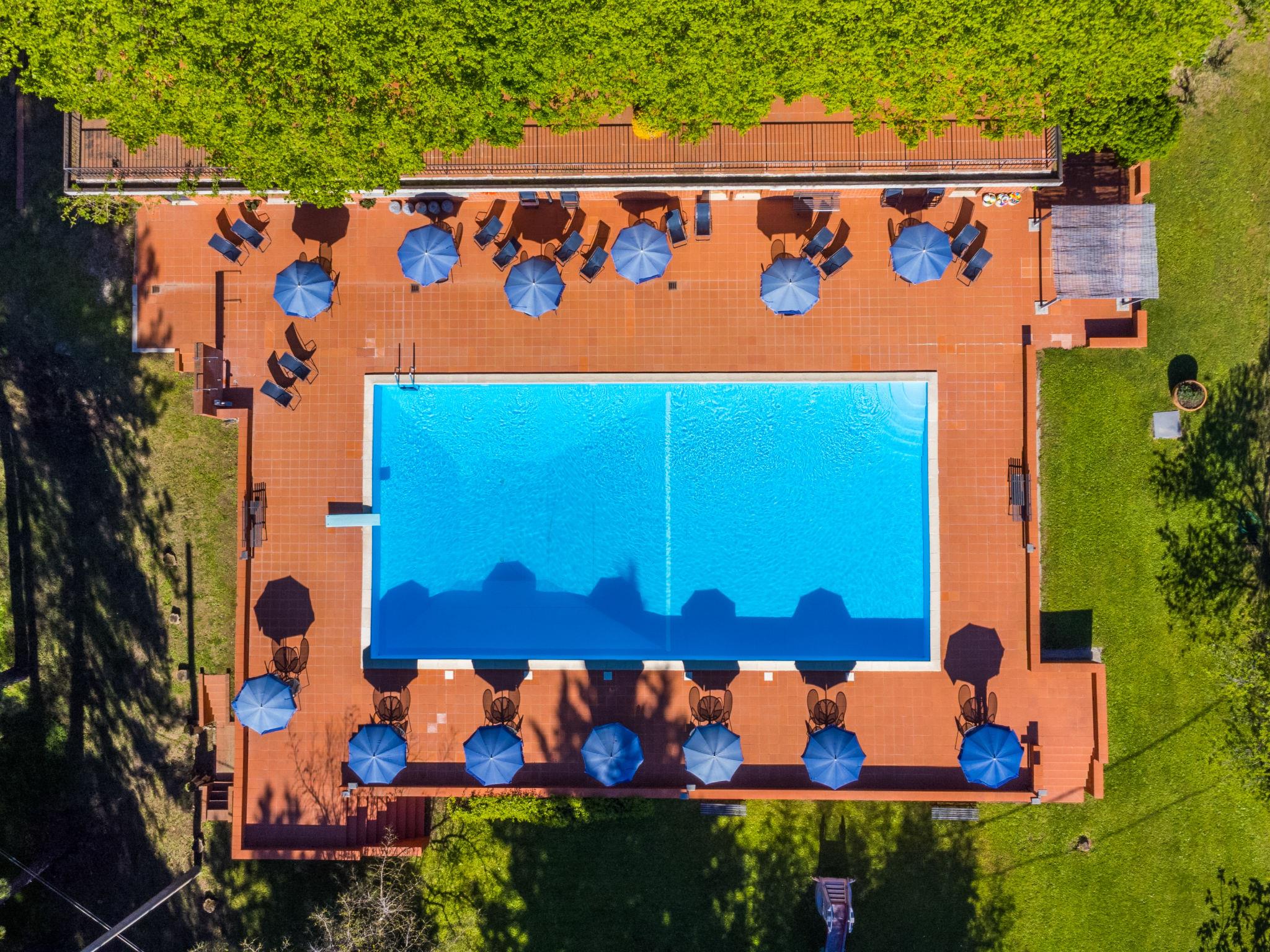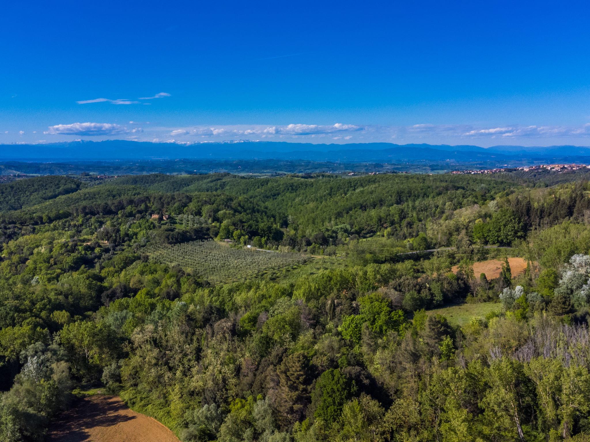 Country house "San Vivaldo", 400 m a.s.l., surrounded by trees and fields. 16 apartments in the residence. In the hamlet San Vivaldo 7 km from the centre of Montaione, 50 km from the centre of Pisa, 60 km from the centre of Firenze, in a sunny, elevated position in the residential district, 65 km from the sea, in the countryside. For shared use: property 920'000 m2, trees, swimming pool fenced (20 x 10 m, depth 150 - 250 cm, seasonal availability: 01.May. - 07.Oct. pool opening hours: 09:00-20:00) with salt-electrolysis pool-cleaning system. Shower/WC in the pool area, tennis, table tennis, terrace, garden furniture, barbecue, children's playground, pool maintenance by the owner/gardener. In the complex: reception, WiFi, washing machine (for shared use). Roofed, parking on the premises. Grocery, restaurant, bar, bakery 10 m, bus stop 7 km, sandy beach "Cecina Mare" 66 km. Golf course (18 hole) 4 km. Nearby attractions: San Gimignano 17 km, Certaldo 19 km, Volterra 30 km. Please note: car recommended. Baby equipment (included). Local sale of farm products. All houses/apartments are individually designed/furnished. Public E-charging station ca. 100 m.