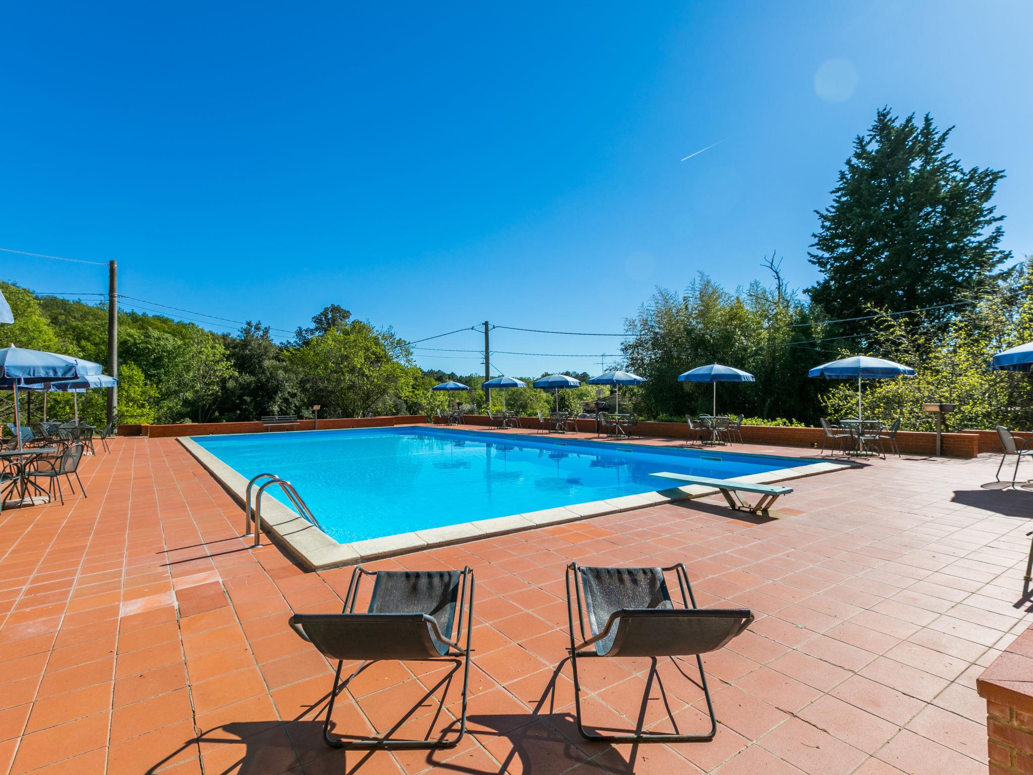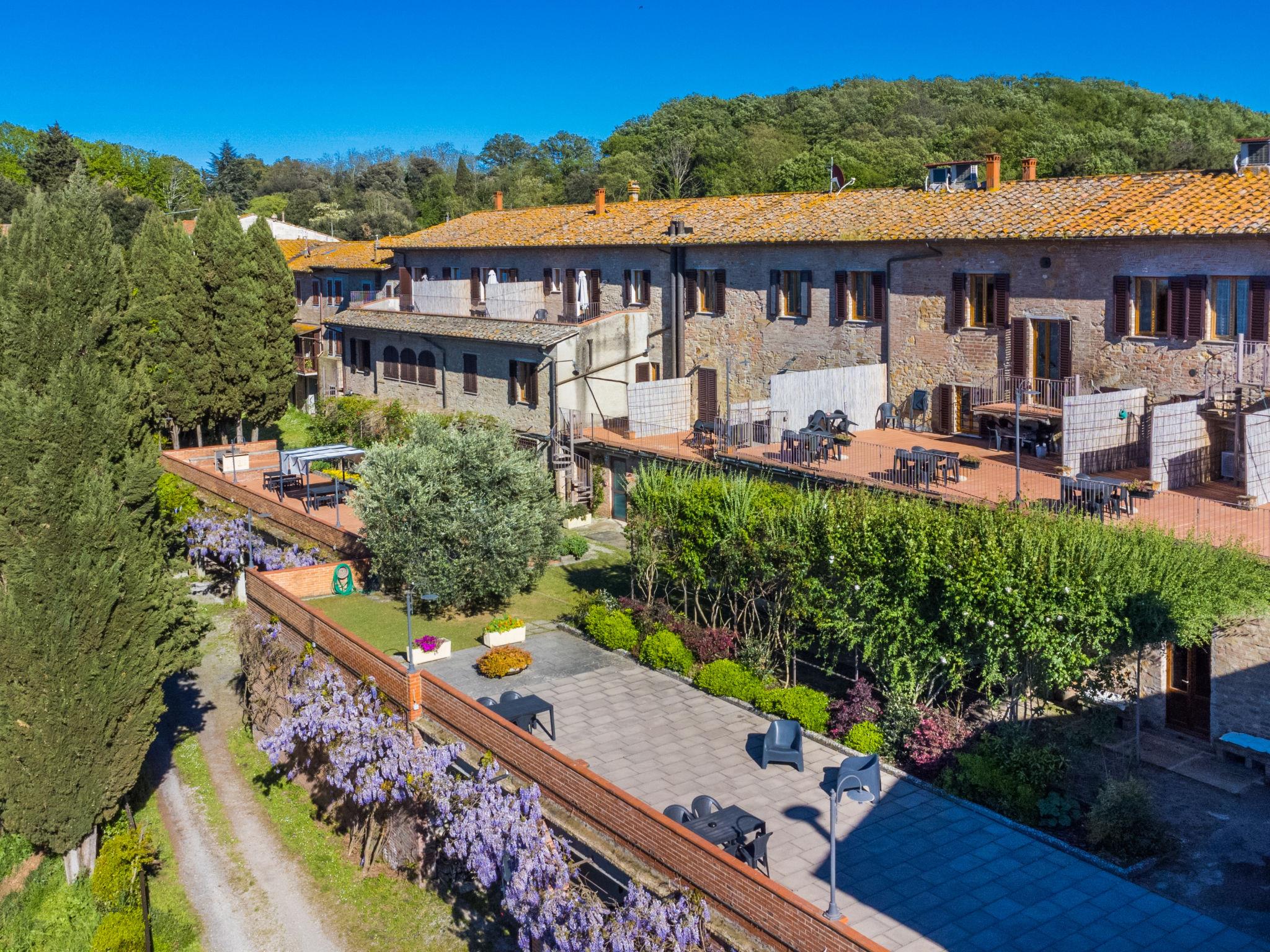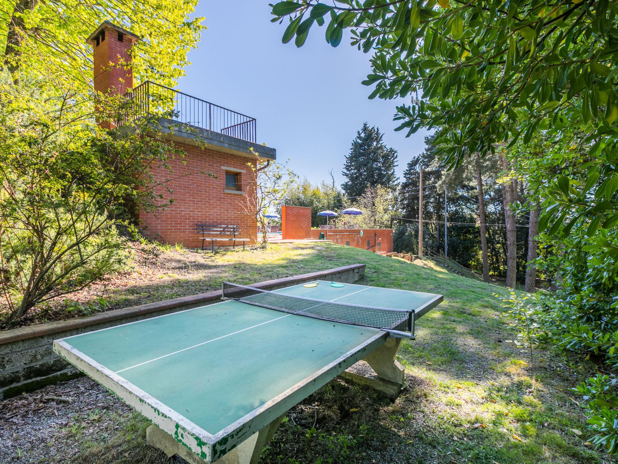 Country house "San Vivaldo", 400 m a.s.l., surrounded by trees and fields. 16 apartments in the residence. In the hamlet San Vivaldo 7 km from the centre of Montaione, 50 km from the centre of Pisa, 60 km from the centre of Firenze, in a sunny, elevated position in the residential district, 65 km from the sea, in the countryside. For shared use: property 920'000 m2, trees, swimming pool fenced (20 x 10 m, depth 150 - 250 cm, seasonal availability: 01.May. - 07.Oct. pool opening hours: 09:00-20:00) with salt-electrolysis pool-cleaning system. Shower/WC in the pool area, tennis, table tennis, terrace, garden furniture, barbecue, children's playground, pool maintenance by the owner/gardener. In the complex: reception, WiFi, washing machine (for shared use). Roofed, parking on the premises. Grocery, restaurant, bar, bakery 10 m, bus stop 7 km, sandy beach "Cecina Mare" 66 km. Golf course (18 hole) 4 km. Nearby attractions: San Gimignano 17 km, Certaldo 19 km, Volterra 30 km. Please note: car recommended. Baby equipment (included). Local sale of farm products. All houses/apartments are individually designed/furnished. Public E-charging station ca. 100 m.