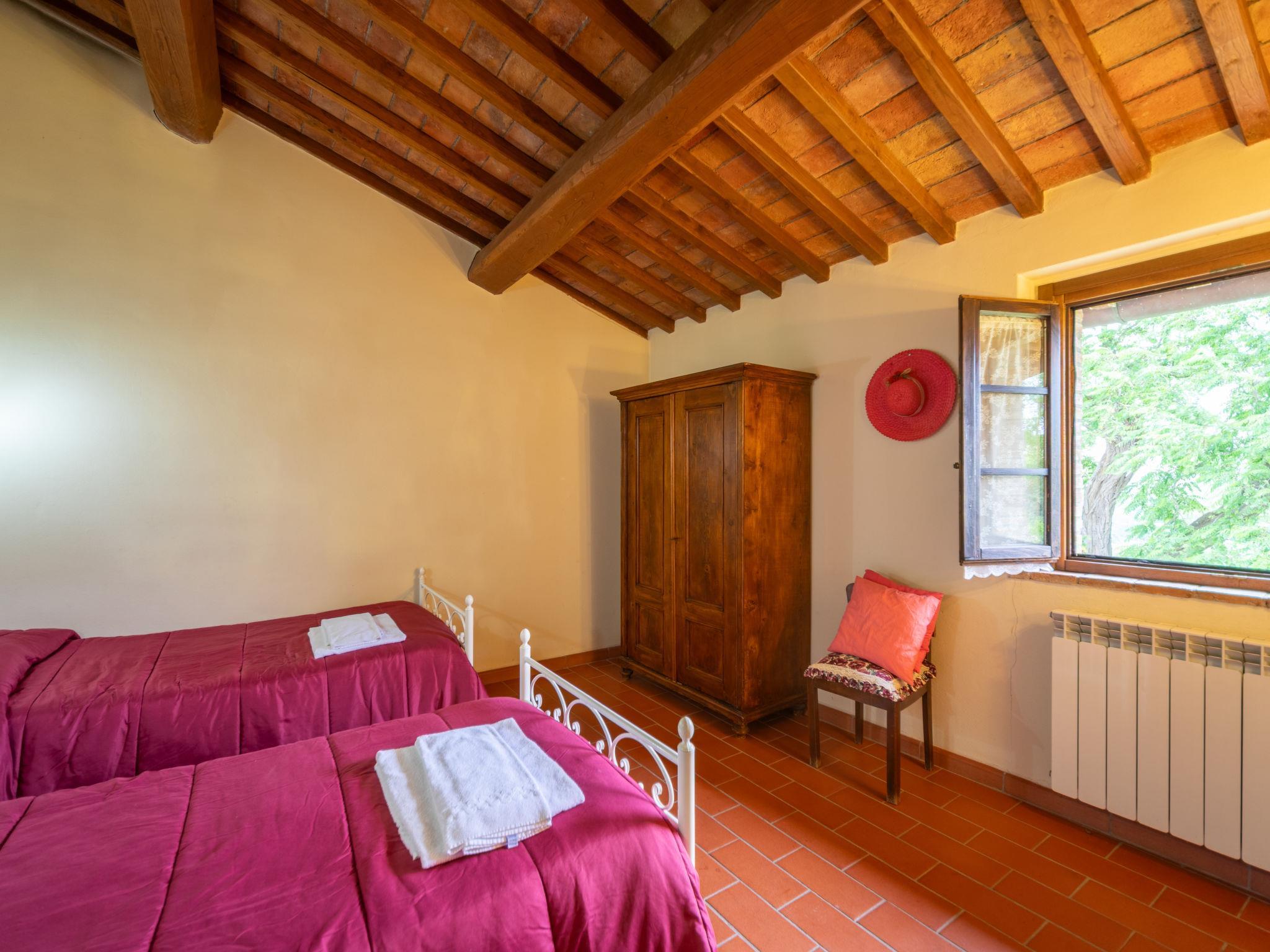 Montaione 19 km from San Gimignano: Agriturismo Casa Bacceli is divided into 7 apartments, one of which is occupied by the owner. The agroturismo is situated on a hill approx. 2 km from the centre of Montaione, in an oasis of peace and tranquility. An ideal place for relaxing holiday walking in the open air and in the Tuscan countryside - a perfect base for visiting the art cities in the region such as Volterra approx. 20 km, Siena and Lucca approx. 50 km, the Etruscan beaches approx. 60 km. Large working farm "Baccelli". 7 apartments in the property. 2 km from the centre of Montaione, 15 km from the centre of San Gimignano, 50 km from the centre of Firenze, in a secluded, quiet, sunny position on top of a hill. For shared use: garden (fenced), swimming pool (15 x 9 m, depth 120 - 200 cm, seasonal availability: 27.Apr. - 28.Sep.). Garden furniture, barbecue. In the complex: WiFi, central heating system, heating to be paid on the spot, heating available only from 01.Nov. - 07.Apr.. Motor access to the house (800 m via unmade road). Parking at the house. Shop 2 km, grocery 2 km, supermarket 2 km, bus stop 2 km, railway station "Castelfiornetino" 12 km. Golf course (18 hole) 17 km, tennis 5 km. Nearby attractions: Certaldo 19 km, San Miniato 30 km, San Casciano in Val di Pesa 40 km, Colle Val d'Elsa 40 km. WI-FI in the pool area and garden.
