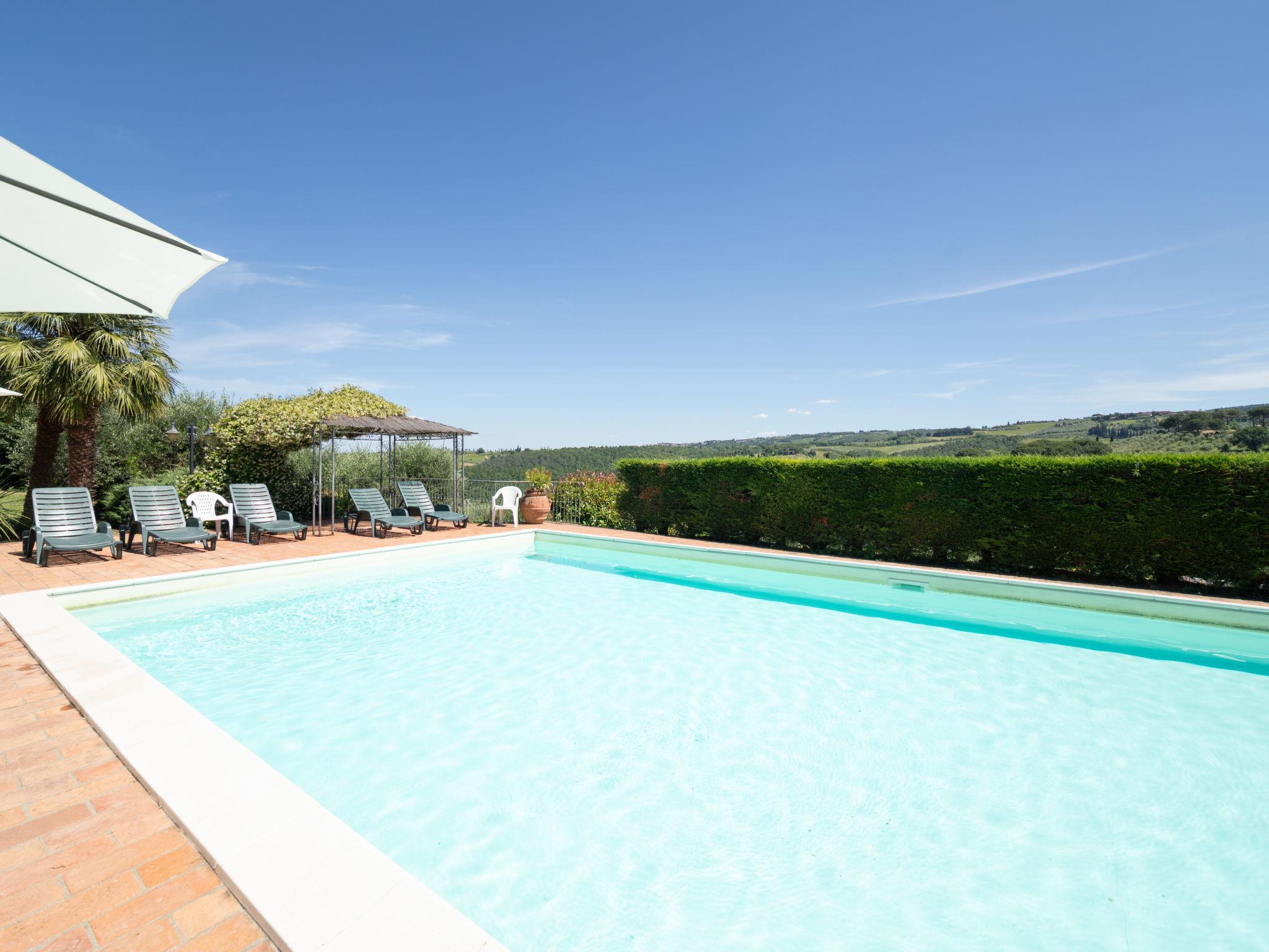 Montaione 19 km from San Gimignano: Agriturismo Casa Bacceli is divided into 7 apartments, one of which is occupied by the owner. The agroturismo is situated on a hill approx. 2 km from the centre of Montaione, in an oasis of peace and tranquility. An ideal place for relaxing holiday walking in the open air and in the Tuscan countryside - a perfect base for visiting the art cities in the region such as Volterra approx. 20 km, Siena and Lucca approx. 50 km, the Etruscan beaches approx. 60 km. Large working farm "Baccelli". 7 apartments in the property. 2 km from the centre of Montaione, 15 km from the centre of San Gimignano, 50 km from the centre of Firenze, in a secluded, quiet, sunny position on top of a hill. For shared use: garden (fenced), swimming pool (15 x 9 m, depth 120 - 200 cm, seasonal availability: 27.Apr. - 28.Sep.). Garden furniture, barbecue. In the complex: WiFi, central heating system, heating to be paid on the spot, heating available only from 01.Nov. - 07.Apr.. Motor access to the house (800 m via unmade road). Parking at the house. Shop 2 km, grocery 2 km, supermarket 2 km, bus stop 2 km, railway station "Castelfiornetino" 12 km. Golf course (18 hole) 17 km, tennis 5 km. Nearby attractions: Certaldo 19 km, San Miniato 30 km, San Casciano in Val di Pesa 40 km, Colle Val d'Elsa 40 km. WI-FI in the pool area and garden.