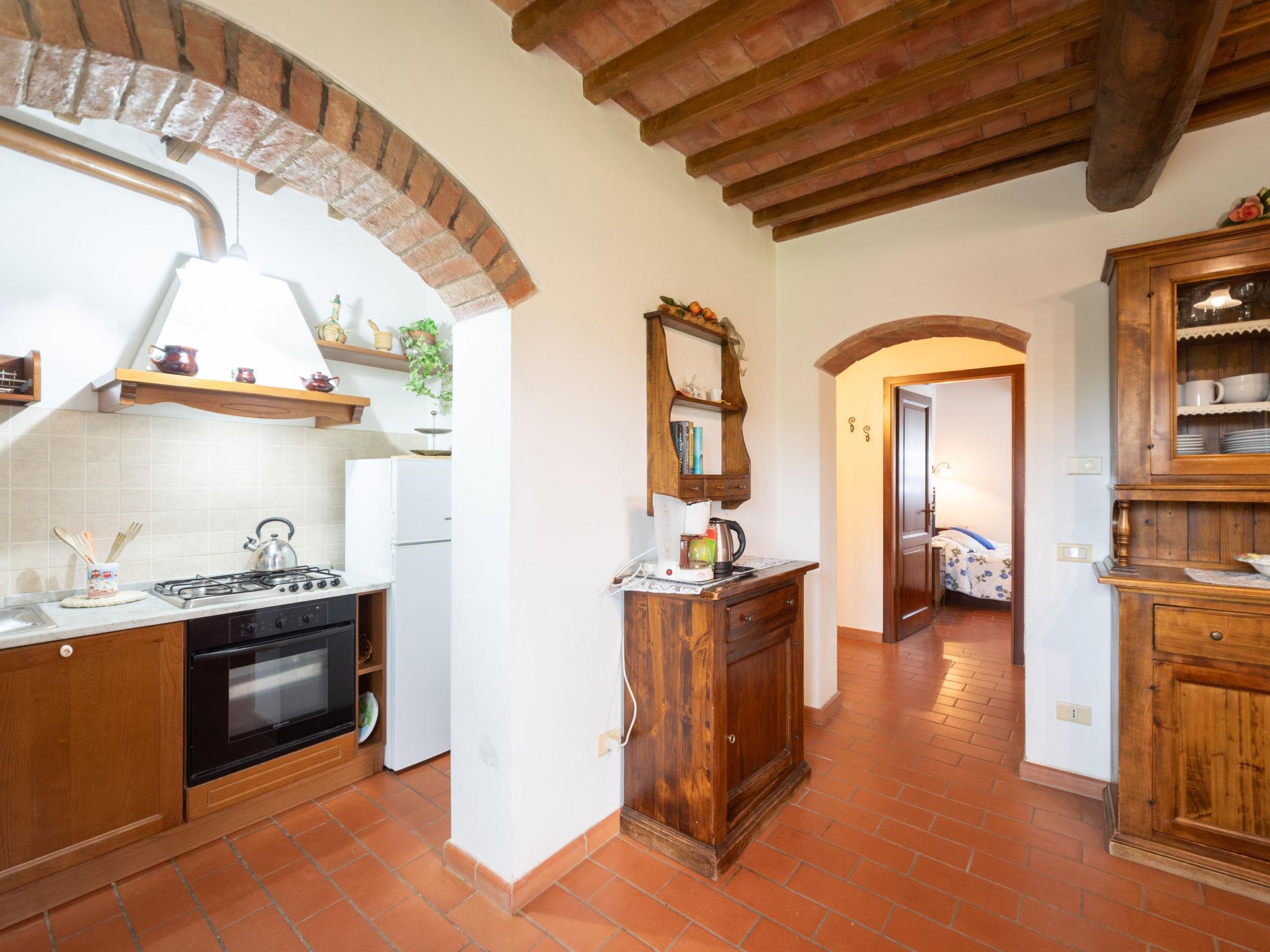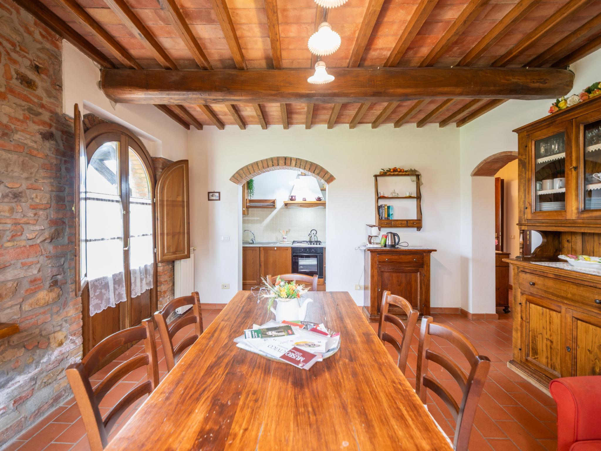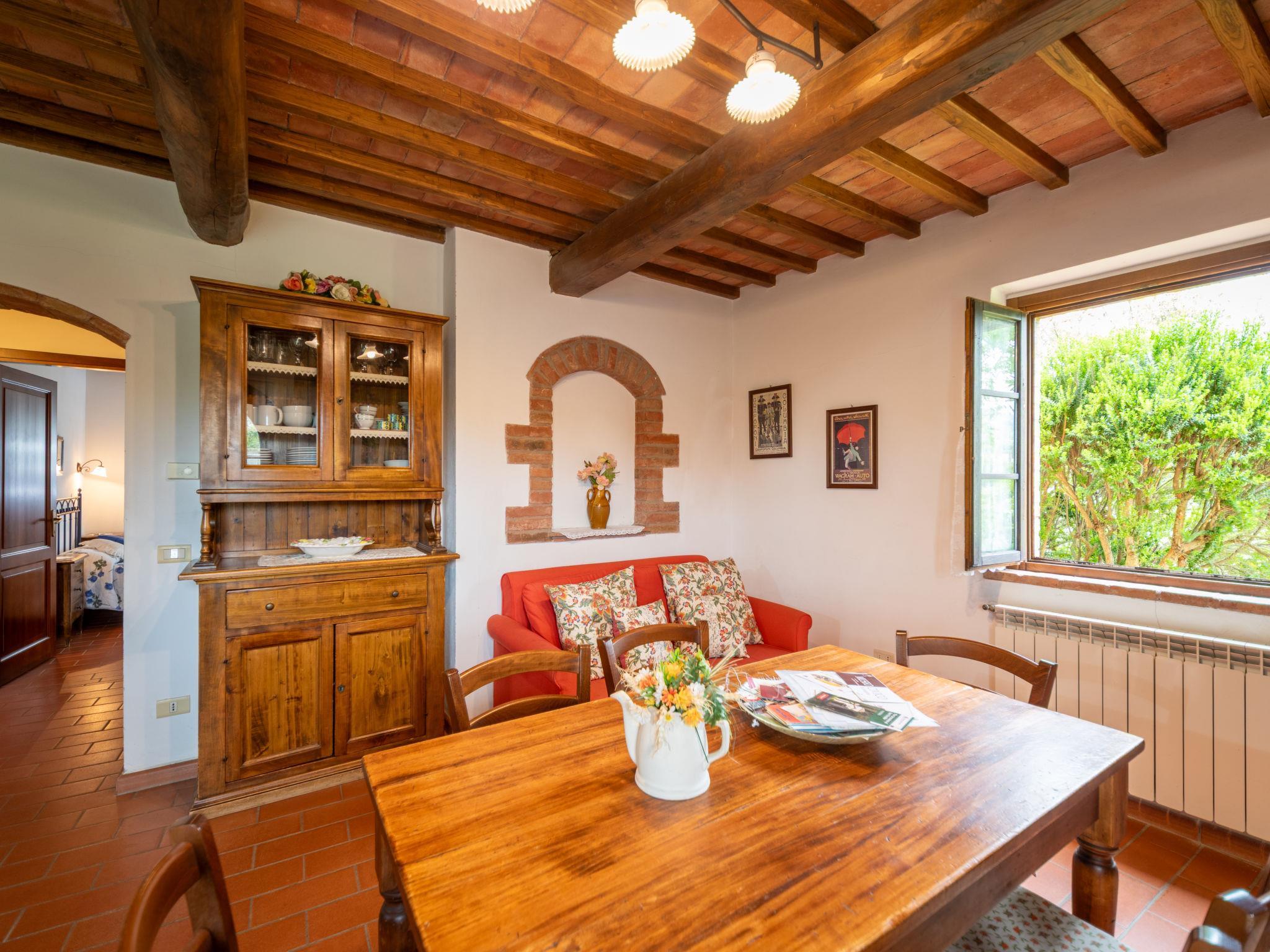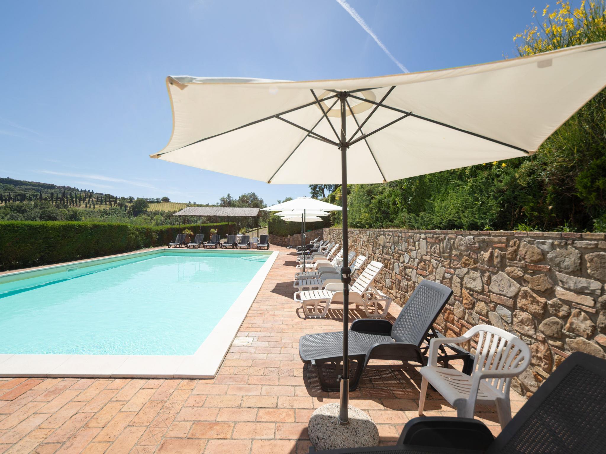 Casa Baccelli, an old farmhouse divided into eight apartments, one of which is inhabited by the owners, is proposed by us as an independent house. The seven apartments on the market communicate with each other only from the outside and each of them has its own kitchenette. Large working farm "Baccelli". 7 apartments in the property. 2 km from the centre of Montaione, 15 km from the centre of San Gimignano, 50 km from the centre of Firenze, in a secluded, quiet, sunny position on top of a hill, in the countryside. For shared use: garden (fenced). Private: swimming pool (15 x 9 m, depth 120 - 200 cm, seasonal availability: 27.Apr. - 28.Sep.). Outdoor shower, garden furniture, barbecue. In the complex: WiFi, heating to be paid on the spot, heating available only from 01.Nov. - 07.Apr.. Motor access to the house (800 m via unmade road). Parking at the house. Shop 2 km, grocery 2 km, supermarket 2 km, bus stop 2 km, railway station "Castelfiornetino" 12 km. Golf course (18 hole) 17 km, tennis 5 km. Nearby attractions: Certaldo 19 km, San Miniato 30 km, San Casciano in Val di Pesa 40 km, Colle Val d'Elsa 40 km. Please note: the owner lives on the same property.