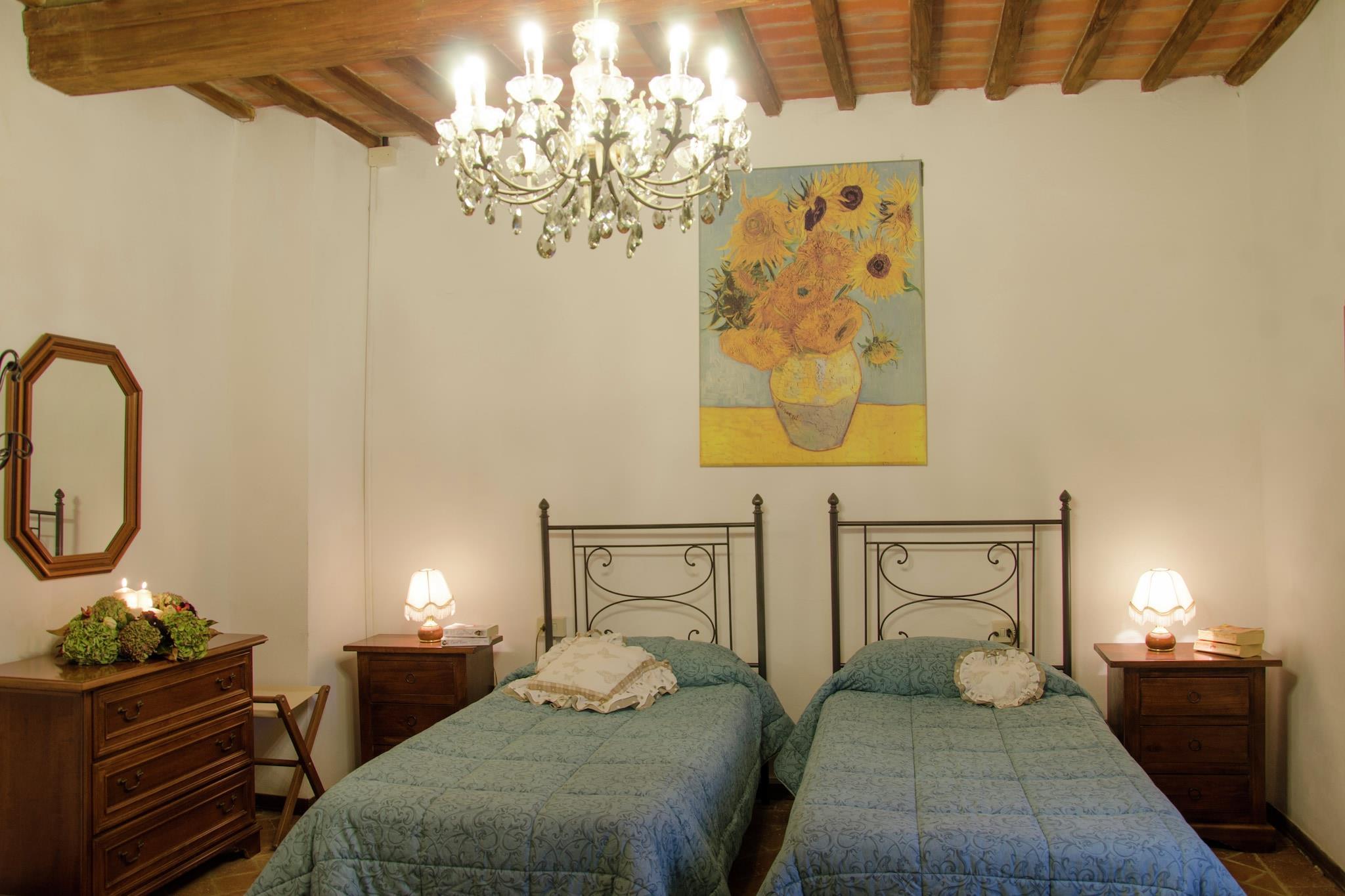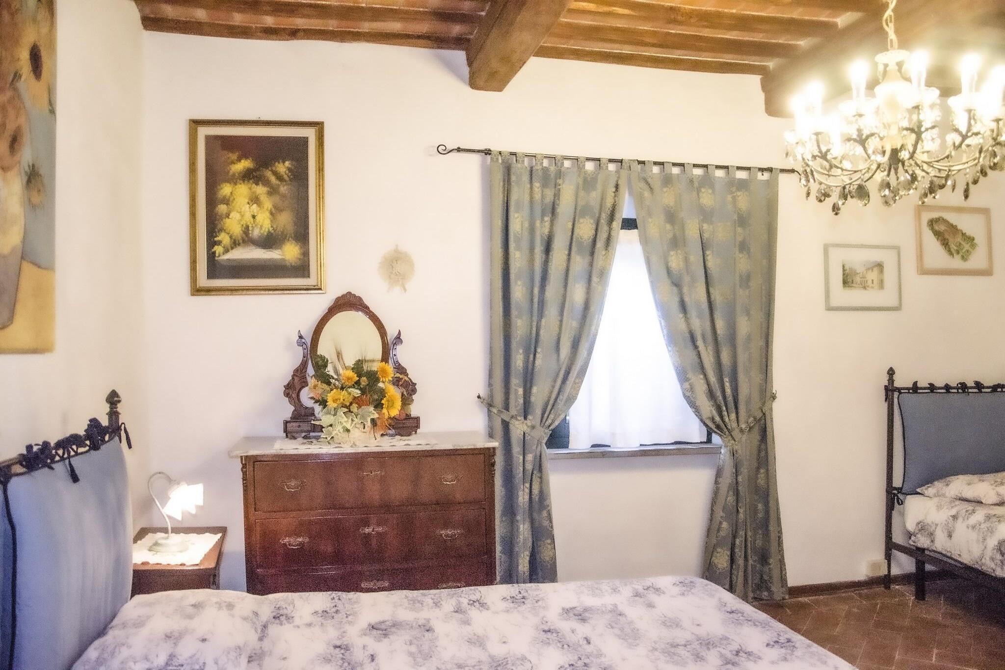 Denne hyggelige familiegård går tilbage til det syttende århundrede og er omgivet af Chianti-bakkerne. Den høje beliggenhed sikrer en smuk udsigt over landskabet! Ideel til familieferier.Du kan tage på vandreture i regionen, for eksempel gennem nabolandet Triangolo Verde Belverdere, og der er mange hyggelige landsbyer, der er mere end et besøg værd. I Castelfiorentino finder du fine butikker, et museum, flere supermarkeder og hyggelige restauranter.Swimmingpoolen er omgivet af en stor terrasse og en græsplæne, træer til skygge, et stort lysthus med bord, bænke, stole og liggestole. På forsiden af huset er endnu en terrasse med legeplads og bordfodbold. De venlige ejere af dette hus byder dig velkommen med varme, sympati og diskretion. Produkterne fra deres eget land er gratis tilgængelige for gæster. Ved ankomsten modtager du også en velkomstpakke med lokale produkter, frisk brød, pasta, olivenolie og vin.