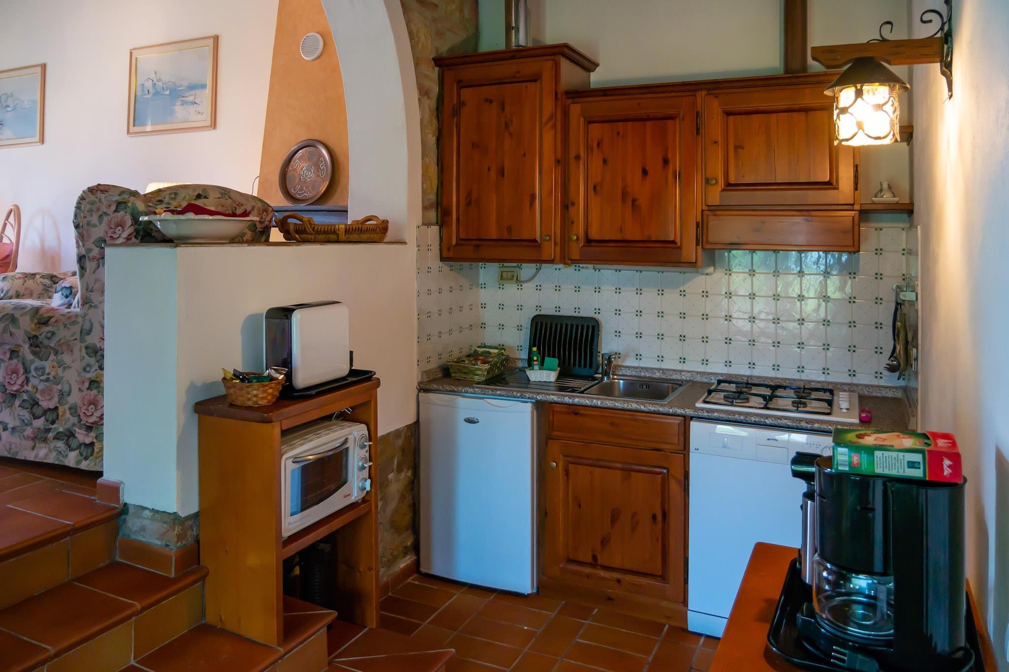 Denne indbydende lejlighed i stueetagen på Via Varna 69 nær Gambassi Terme har en varm opholdsstue med pejs og sovesofa, et veludstyret køkken på 17 m² med ovn, kogeplader, espressomaskine, elkedel, mikrobølgeovn, brødrister, opvaskemaskine og køleskab med fryser samt et spisebord. Den indeholder et soveværelse med dobbeltseng, et værelse med to enkeltsenge, et badeværelse med bruser og bidet samt en 15 m² privat terrasse, der åbner ud til fælles haver, perfekt til par eller små familier, der søger fred i Toscana. Den fælles, indhegnede have tilbyder afslappende omgivelser med loungemøbler og en trækulsgrill. Gæsterne kan nyde en 12×6 m pool med et lavvandet børneområde (åbent april-september), en udendørs bruser, brændeovn og fælles vaskemaskine. Børn og grupper vil elske legeredskaberne, bordtennisbordene, fodboldbordene og målet. Hjemmet ligger omgivet af toscanske bakker, 1 km fra ridestier og 6 km fra fiskesøer i Alberi. Gambassi Termes historiske spa ligger 7 km væk. I Castelfiorentino (3 km) serverer trattoriaer som Chiosco Ai Renai og Casa Masi lokale retter. Udforsk Varnas kirke fra det 13. århundrede og Sacro Monte di San Vivaldo, eller tag på dagsture til San Gimignano (18 km), Siena, Firenze, Pisa og Volterra. Med gratis Wi-Fi og kæledyrsvenlig charme tilbyder dette tilflugtssted kultur og komfort. Trøffelfestivalen finder sted hvert år i den sidste weekend i oktober.