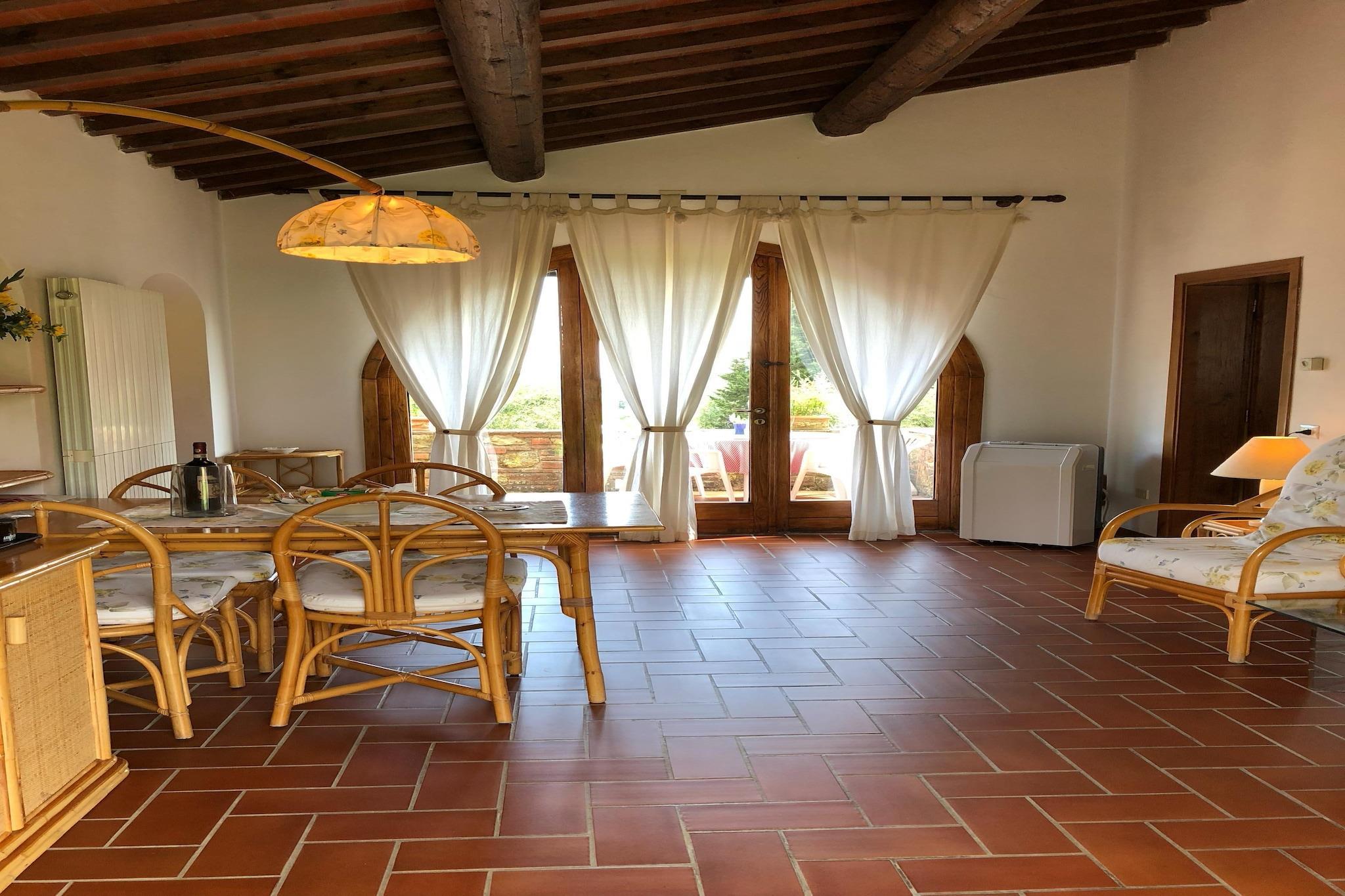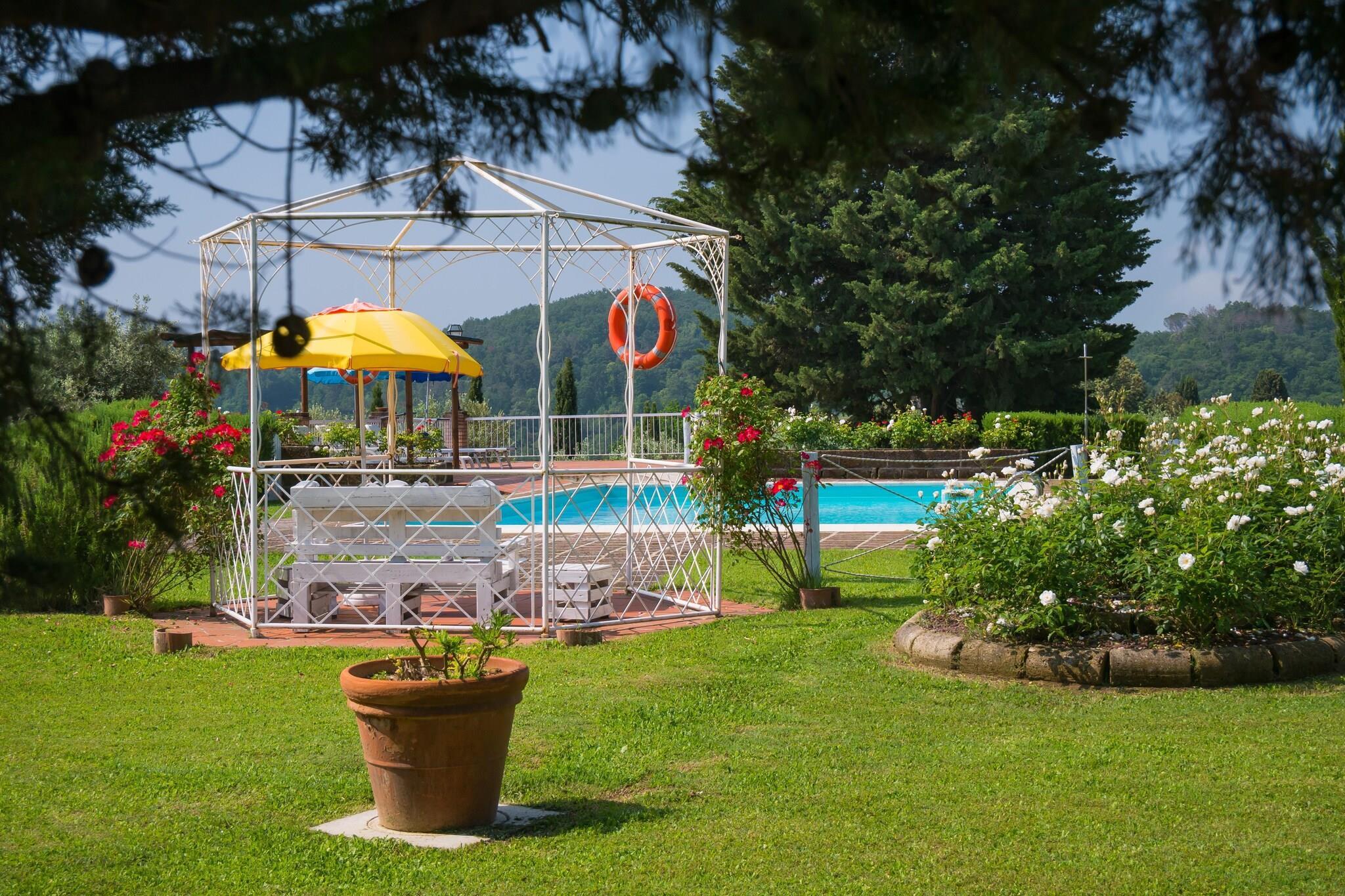 Denne lejlighed i stueetagen i Montaione ligger gemt væk i bakkerne ved Via Cerroni 7 og tilbyder et fredeligt ophold, kun 8 km fra middelalderbyen og 10 km fra Castelfalfi Golfklub. Indenfor supplerer et 19 m² stort køkken med ovn, køleskab og vask en hyggelig 16 m² stor stue, der åbner ud til en rummelig terrasse på 33 m². Ideel til familier eller par, de to soveværelser, et med dobbeltseng og et med tre enkeltsenge, deler to moderne badeværelser med brusere og bidet. Aircondition sikrer et behageligt indeklima året rundt. Den indhegnede have med lounge-sæder er perfekt til udendørs spisning eller afslapning. Gæsterne kan nyde en 12×6 m pool (åben april-oktober), legeområder, bordtennis, fodboldmål, fælles vaskeri og en brændefyret ovn. En carport og en ladestander til elbiler tilføjer bekvemmelighed og miljøvenlighed. Omkringliggende aktiviteter omfatter ridestier (1 km), fiskesøer (6 km) og kulturelle seværdigheder som Montaiones kirke San Regolo eller "Toscanas Jerusalem", Sacro Monte di SanVivaldo. Fantastisk mad venter på CasaMasi, IlCaminetto og flere. Kæledyrsvenligt og forbundet, dette er Toscana, når det er bedst. Trøffelfestivalen finder sted den sidste weekend i oktober hvert år.