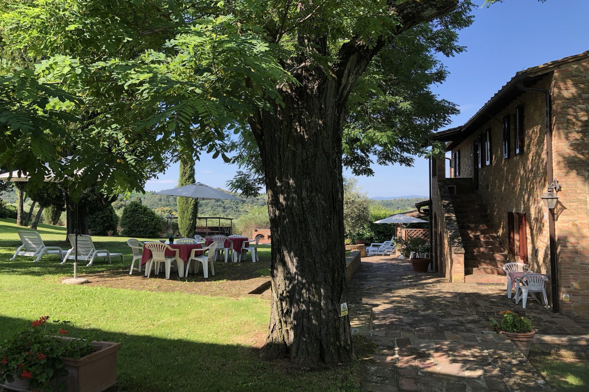 Charmerende landlig oase Beliggende i de fredfyldte toscanske bakker, husede denne romantiske stenlejlighed engang gamle vogne, men tilbyder nu en fredelig oase fyldt med rustik charme. Med tuf- og murstensvægge, der udstråler varme, en privat terrasse med udsigt over Evola-dalen og frodige haver fyldt med oliven- og frugttræer, inviterer dette hjem til hvile og refleksion. Slap af i det store udendørsområde med en fælles pool med hydromassage, en legeplads for børn, kæmpeskak, bordtennis og en fodboldbane - perfekt til familier, par og kæledyrselskere. Udforsk Toscanas ikoniske perler Ideelt placeret til at udforske Toscana, vil du være tæt på den middelalderlige landsby Montaione og inden for rækkevidde af Firenze, Siena, Pisa, San Gimignano og Volterra. Oplev bølgende vinmarker, cypresseromkransede veje og kunstskatte rundt om hvert hjørne. Nærliggende aktiviteter omfatter ridning, fiskeri ved Alberi og den berømte 27-hullers Castelfalfi Golfklub, kun 10 km væk. Termiske bade og naturskønne vandrestier tilbyder afslapning kun 1 km fra ejendommen. Nyd lokale smagsoplevelser Nyd det bedste af det toscanske køkken kun 1 km væk på lokale trattoriaer, eller nyd et roligt måltid på din terrasse med ingredienser fra nærliggende markeder. Besøg stedets vinkælder for at prøvesmage og købe godsets egen vin og olivenolie. Uanset om du er her for at smage, udforske eller blot slappe af, tilbyder dette udsnit af Toscana en autentisk og uforglemmelig oplevelse. Trøffelfestivalen finder sted hvert år i den sidste weekend i oktober.