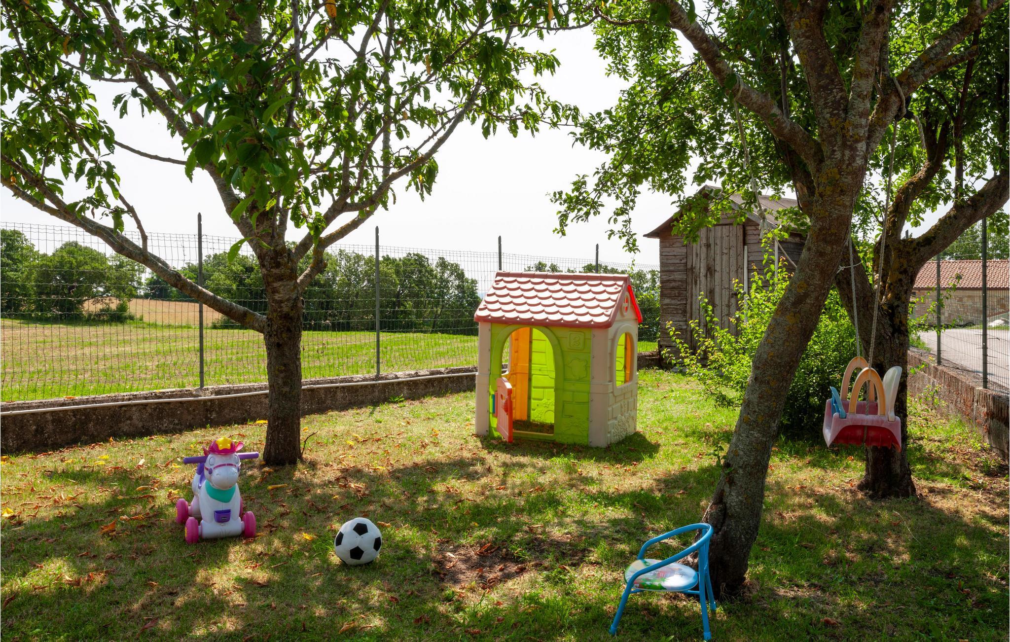 Huset er på to etager og ligger i en skøn indhegnet have, udstyret med havemøbler, hvor I kan nyde feriens måltider i det fri. Et ideelt rejsemål til alle der holder af natur og med mange vandrestier og mountainbike-ruter i nærheden. Herfra er der cirka 30 km til Adriaterhavskysten med lange strande og forlystelsesparker for alle aldre.