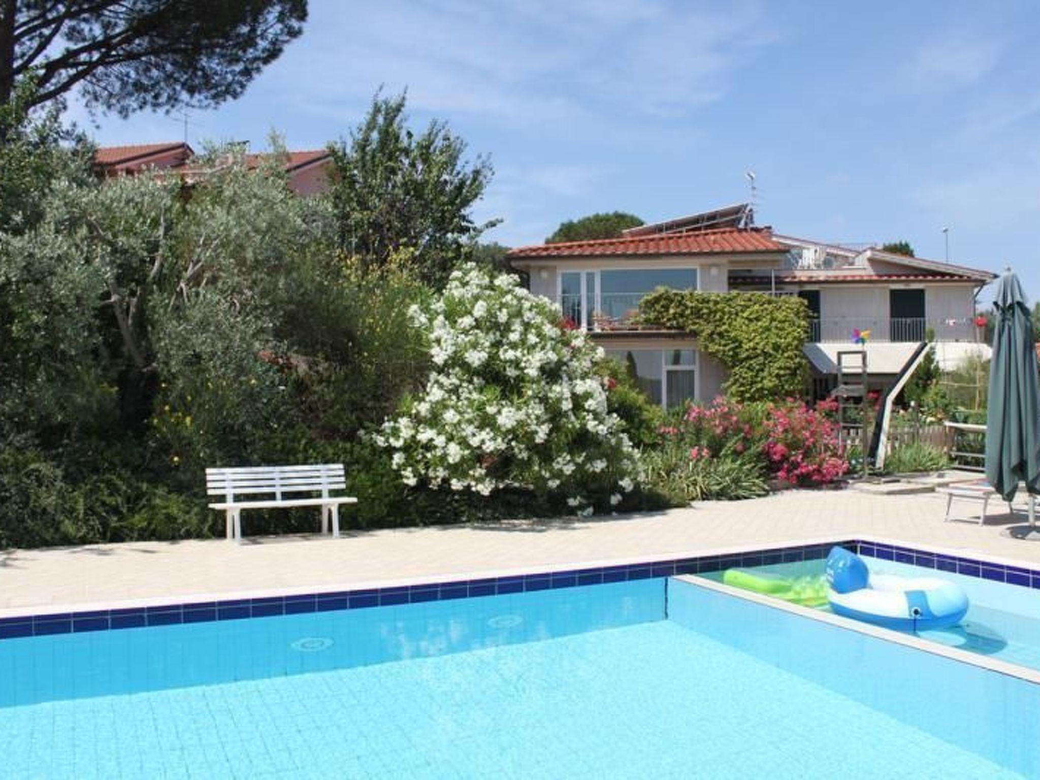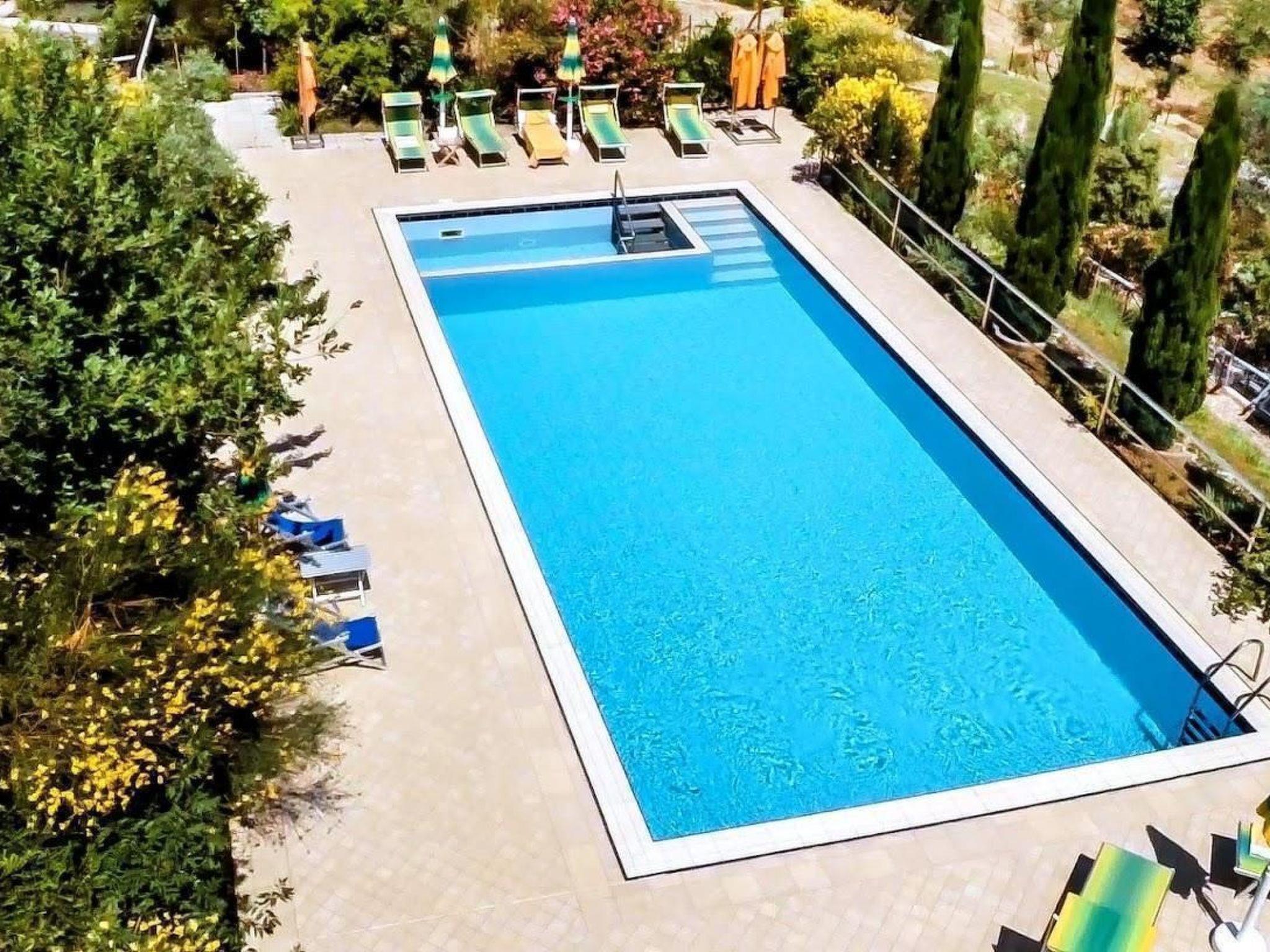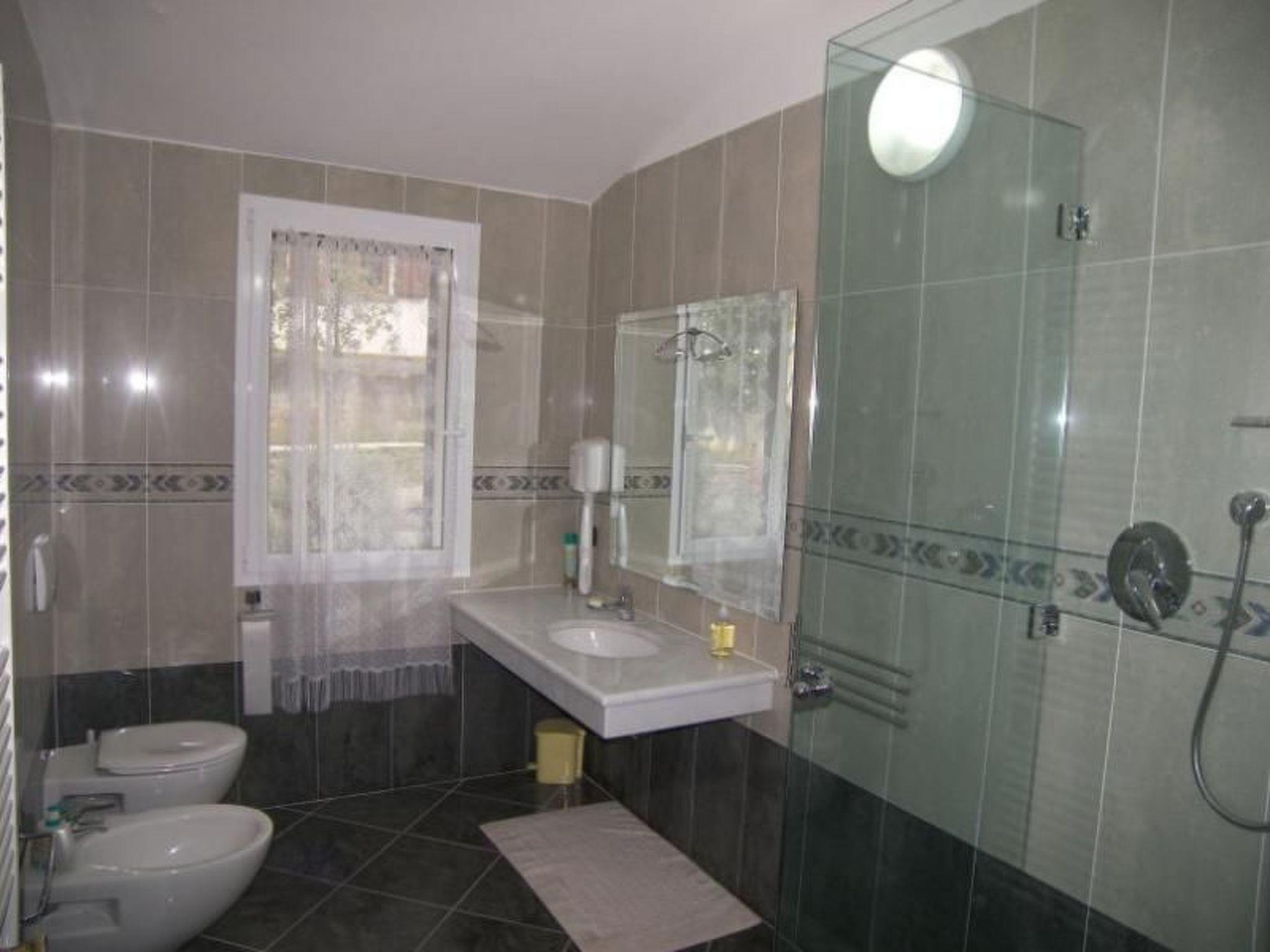 The holiday home has a total of six bedrooms, six bathrooms, a large kitchen and a living room. The living area is spread over two levels. The kitchen is located on the ground floor and is equipped with an oven, refrigerator with freezer, gas hob, microwave, dishwasher, etc. The ground floor also has four bedrooms and four bathrooms: two bedrooms with double beds and private bathroom with shower; one bedroom with double bed and private bathroom with Jacuzzi. This bedroom is only accessible from the outside; a bedroom with two single beds and private bathroom with shower is located in the corridor. On request, a third bed can be added in this room. The bathrooms are equipped with a bidet, towel warmer and hairdryer. Each of the four bedrooms has access to the outdoor area, which includes the garden and the large terrace. Each room also has a television. Upon request, up to two cots for children up to three years of age can be provided free of charge. On the first floor is a large, bright living room with large windows and a large terrace offering a magnificent view of Montelupo and Capraia. The living room is equipped with a television (satellite TV). The first floor also houses a double bedroom with private bathroom with shower and a triple bedroom with private bathroom with shower in the corridor.
