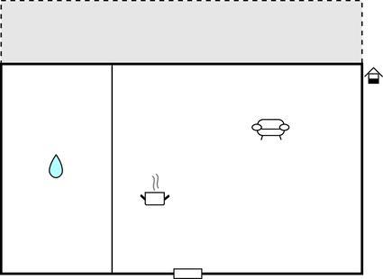 Komb. spisestue/køkken 30m2 - 2 Sovepladser. (Dobbeltseng(e)).