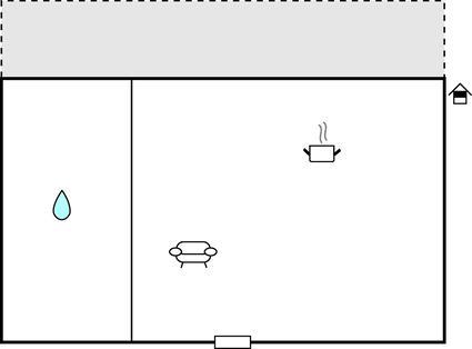 Opholdsstue/køkken 45m2 - 2 Sovepladser. (Dobbeltseng(e)).