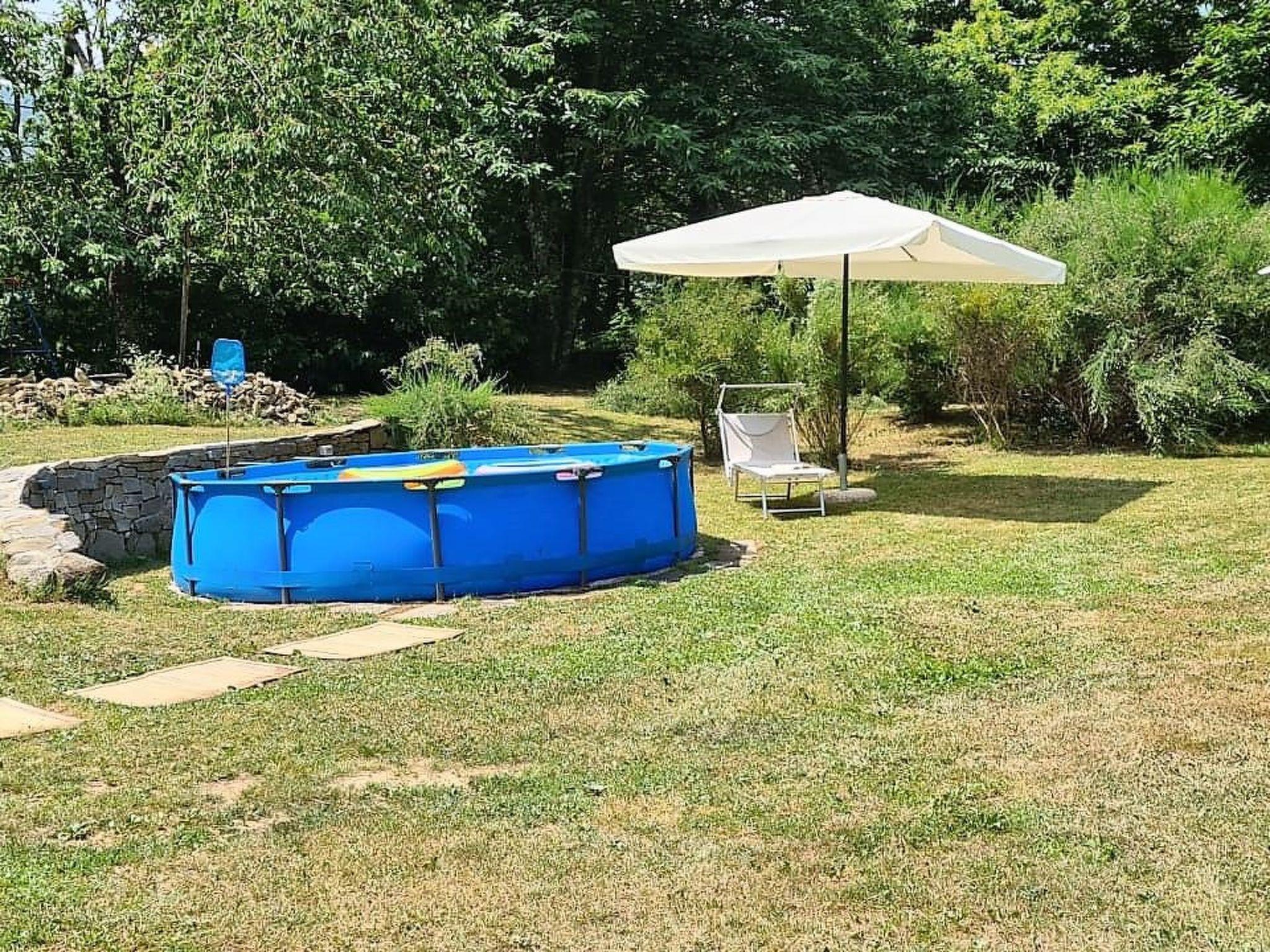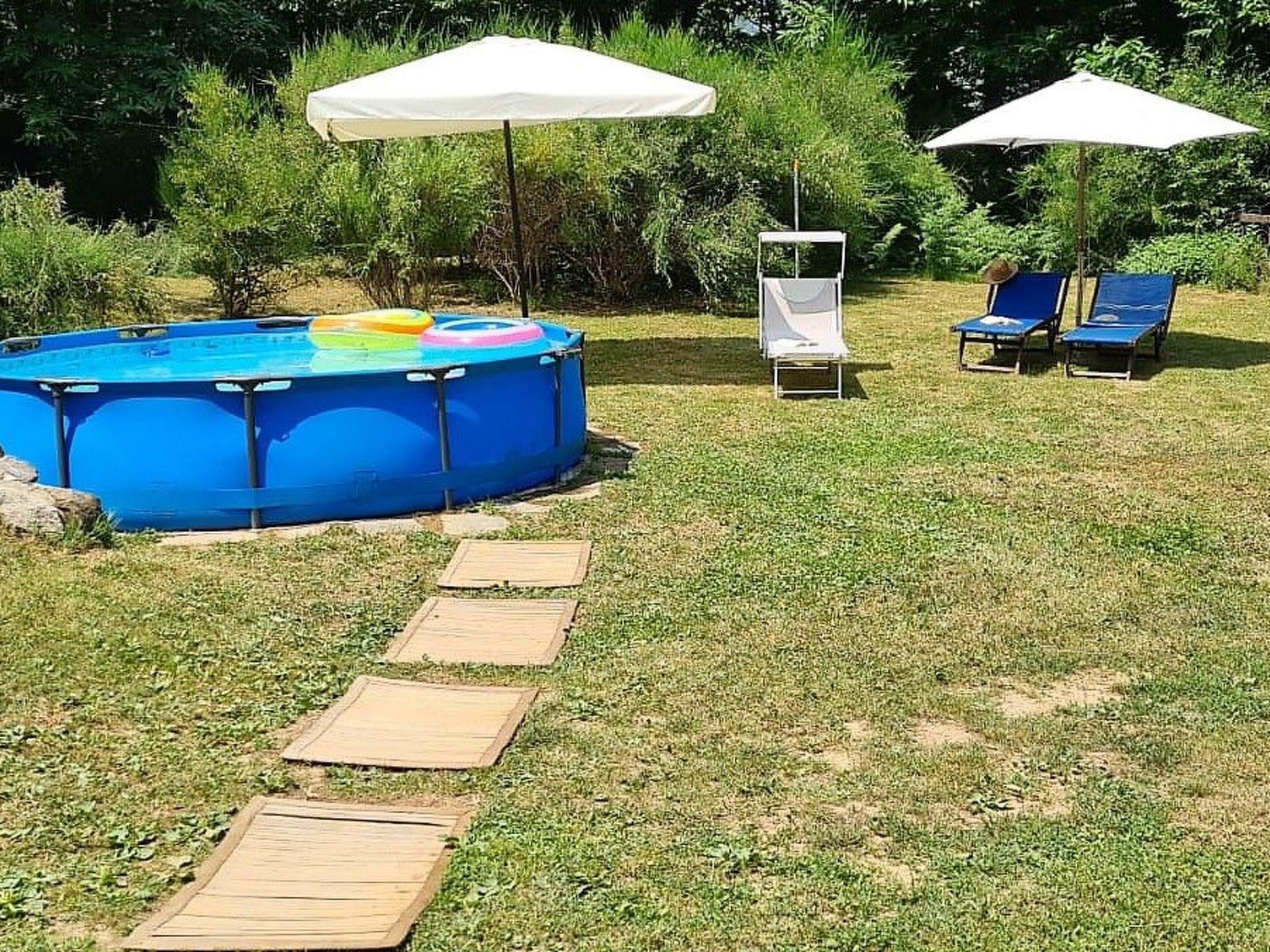Above-ground pool for exclusive use on the lawn and solar-powered hot shower.