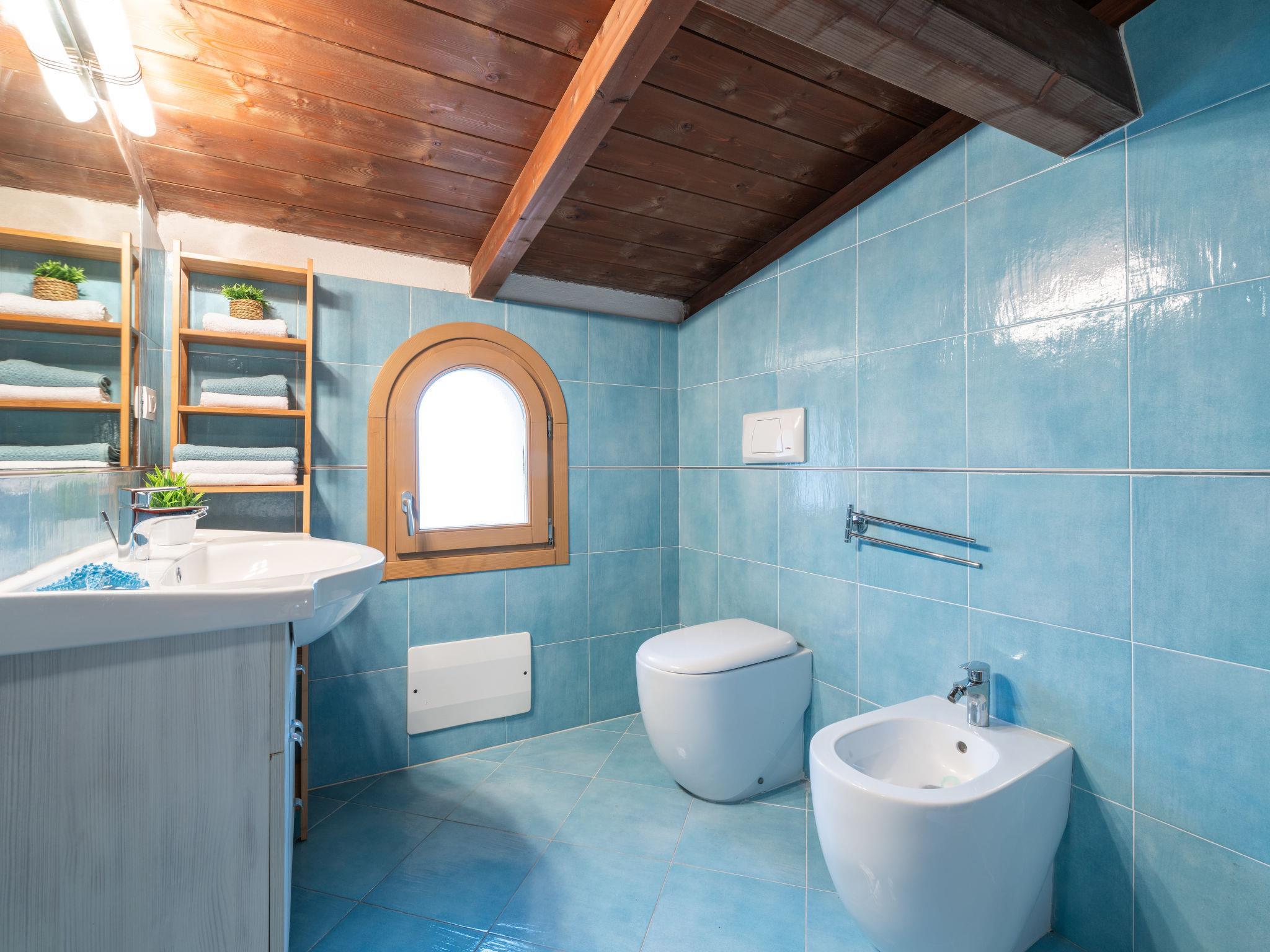 "Cadoni", 2-room house on 2 levels, on the ground floor. Antique and cosy furnishings: large living/dining room with 1 double sofabed, dining table, TV, air conditioning, fan and forced-air heating. Exit to the garden. Kitchen (4 gas rings, toaster, kettle). Shower/bidet/WC. Upper floor: 1 large room with 2 beds, 1 double bed, air conditioning, fan and forced-air heating. Shower/bidet/WC. Large terrace roofed, garden. Terrace furniture, barbecue. View of the resort. Facilities: washing machine, iron, children's high chair, baby cot (extra), hair dryer. IT111042C2000R7956