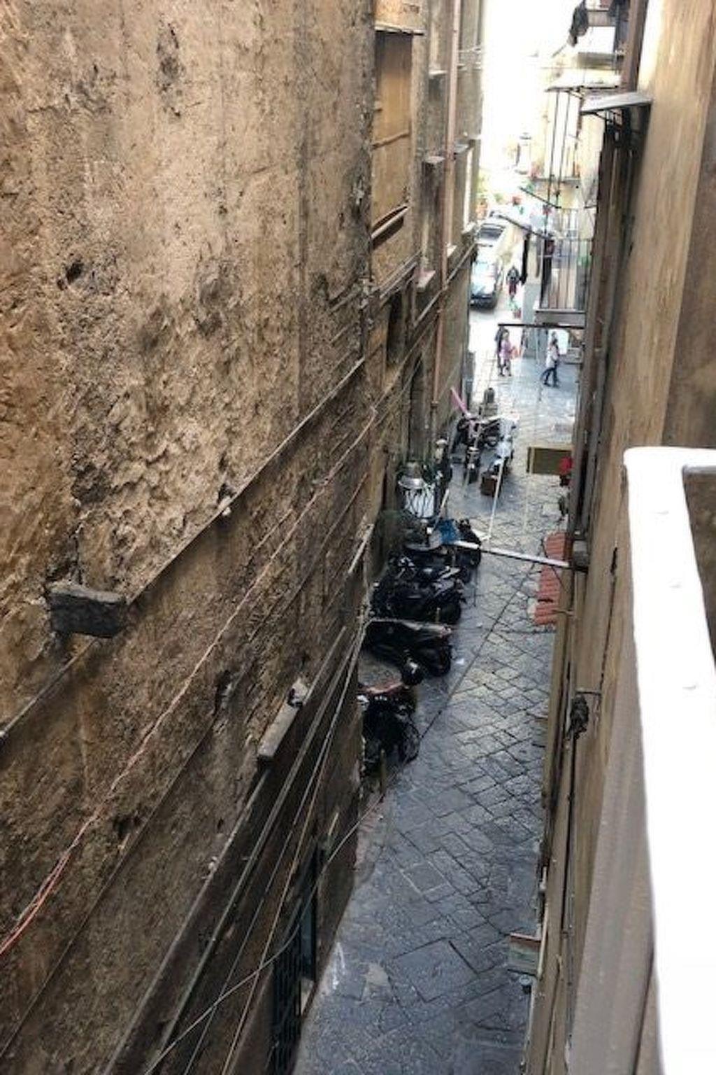 Two small Neapolitan balconies, one overlooking an internal courtyard, the other in the large bedroom overlooking an alley.