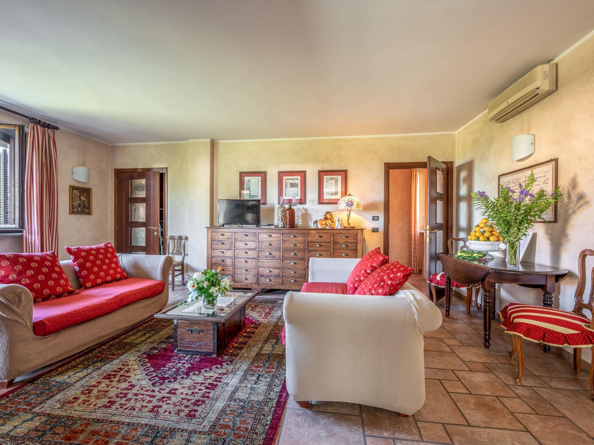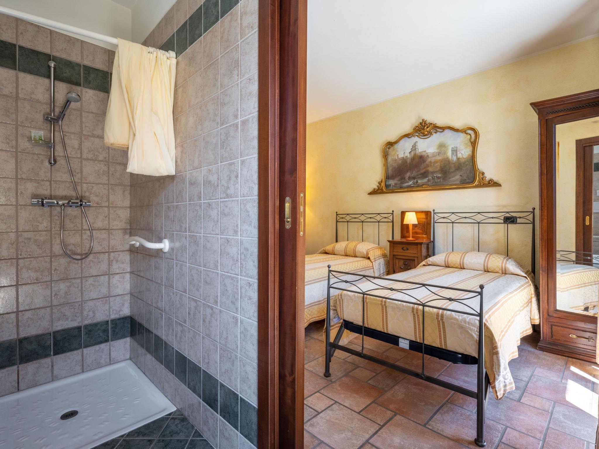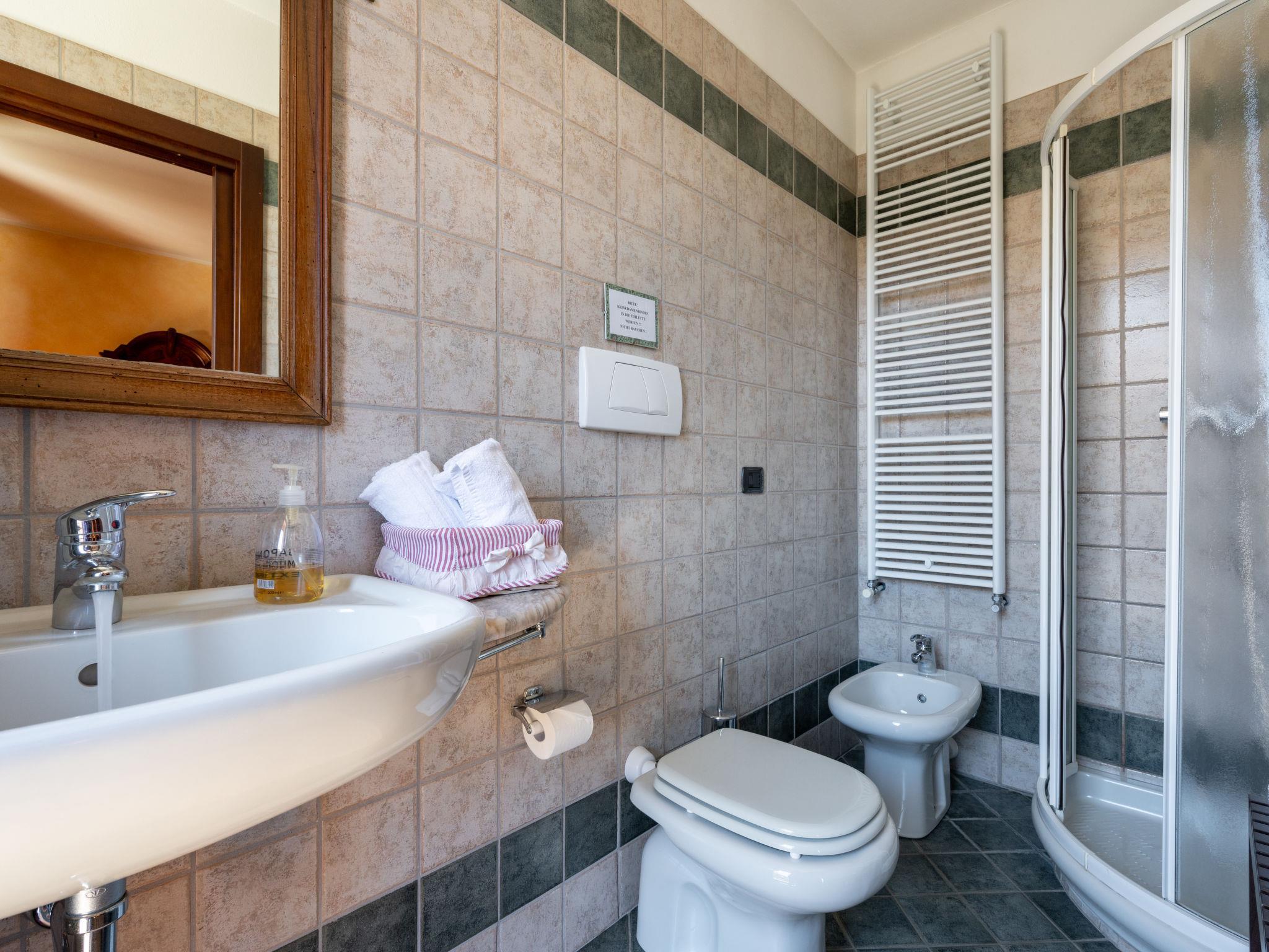 6-room semi-detached house 240 m2 on 2 levels. Comfortable and tasteful furnishings: large living room with open-hearth fireplace, satellite TV, radio, CD-player and hi-fi system. Open dining room with dining table. Exit to the terrace, to the swimming pool. 1 room with 2 beds, shower/WC and satellite TV. Exit to the terrace. Kitchen (oven, 3 gas rings, toaster, kettle, microwave, freezer, electric coffee machine). Exit to the terrace. Sep. WC. Upper floor: 1 room with 2 beds, separate WC, hydro massage bath and satellite TV. Exit to the balcony. 1 room with 2 beds, open-hearth fireplace, shower/WC and satellite TV. Exit to the balcony. 1 room with 1 french bed (160 cm, length 200 cm), shower/WC and satellite TV. Exit to the balcony. Heating, air-conditioning. Heating available only from 01.10. to 30.04. Natural stone floors. 2 balconies, 2 terraces covered. Terrace furniture, balcony furniture, barbecue. Facilities: washing machine, mosquito net, children's high chair, baby cot. Internet (WiFi, free). Please note: non-smoking house. When there are less than the maximum number of guests staying at the property, not all of the bedrooms will be available for use. IT004147B4P8EH5YU2