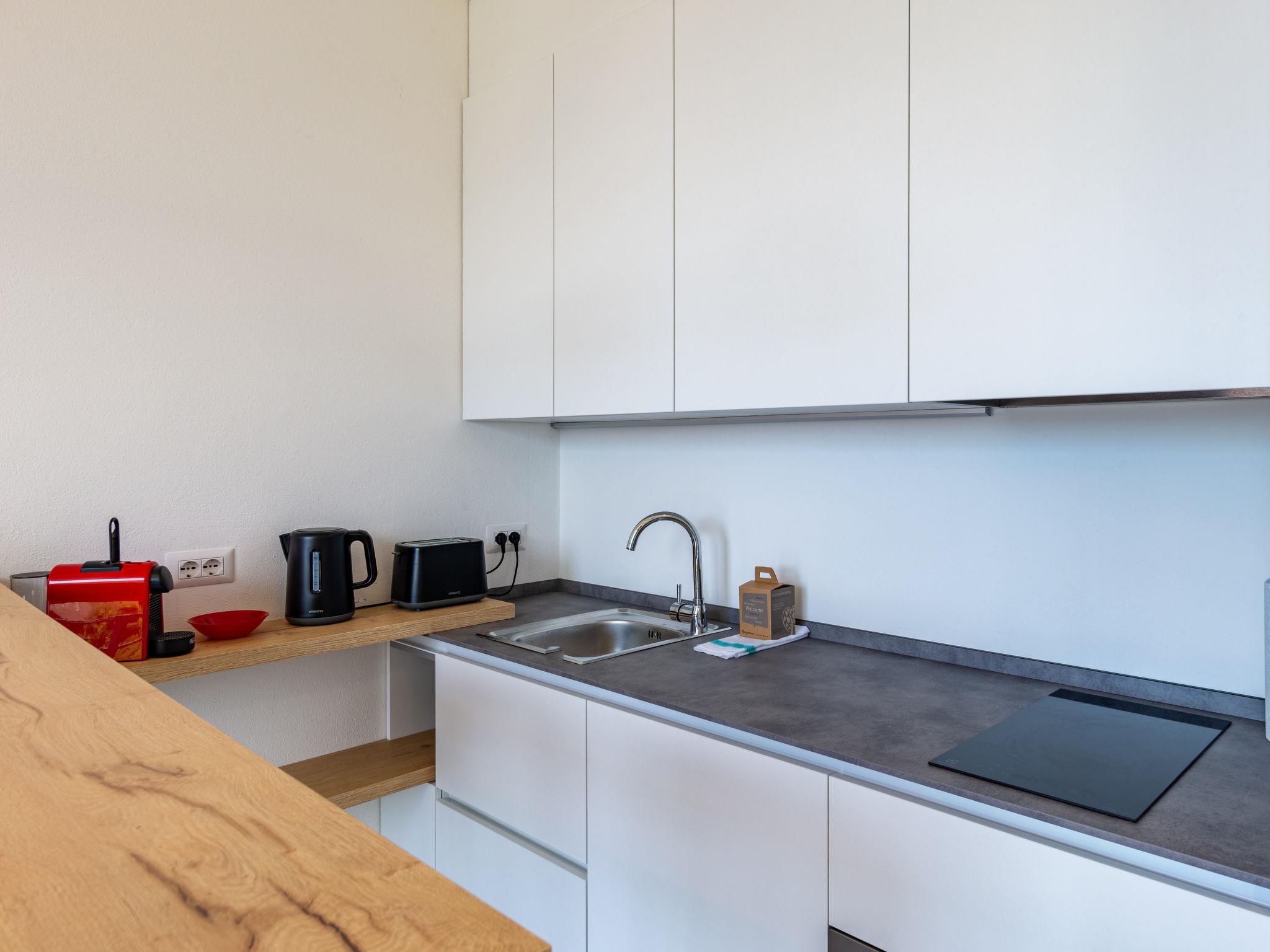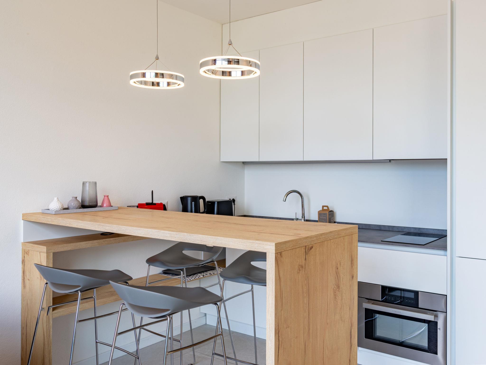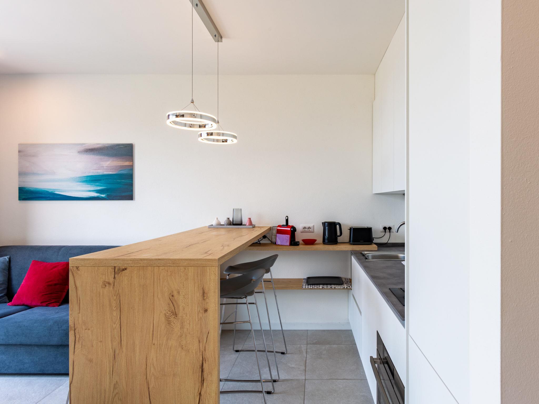 2-room apartment 50 m2, on the ground floor. Bright, comfortable and modern furnishings: living/sleeping room with 1 sofabed (120 cm, length 190 cm), bar and satellite TV (flat screen). Exit to the terrace. 1 room with 1 double bed (180 cm, length 200 cm). Exit to the terrace. Small, open kitchen (oven, dishwasher, 2 induction hot plates, toaster, kettle, microwave, freezer, electric coffee machine). Shower/bidet/WC. Air-conditioning, underfloor heating. Heating available only from 15.10. to 15.04, Solar power. Natural stone floors. Large terrace 18 m2 partly roofed. Terrace furniture, deck chairs (2). Marvellous panoramic view of the lake, the mountains and the resort. Facilities: washing machine, iron, hair dryer. Internet (WiFi, free). Parking at 100 m. Please note: non-smokers only. Private entrance. IT013161C25FEAMGP4