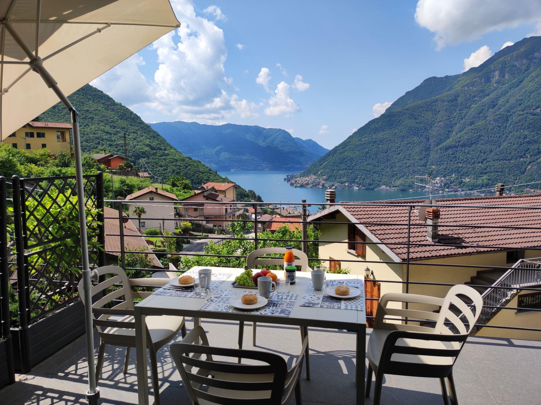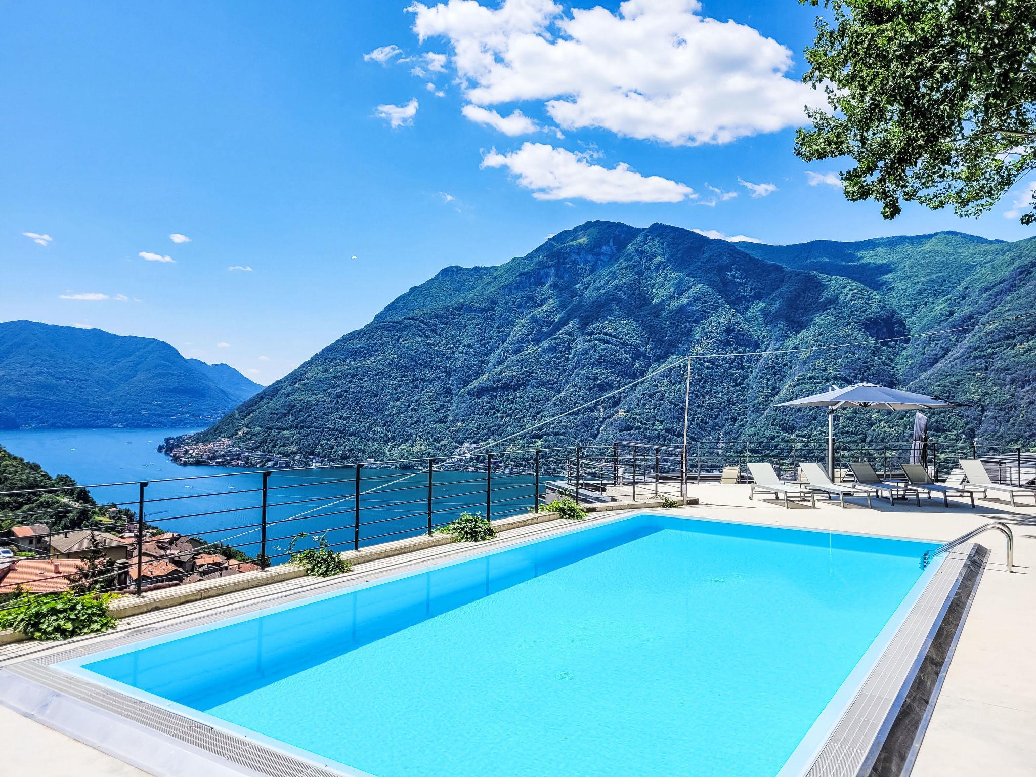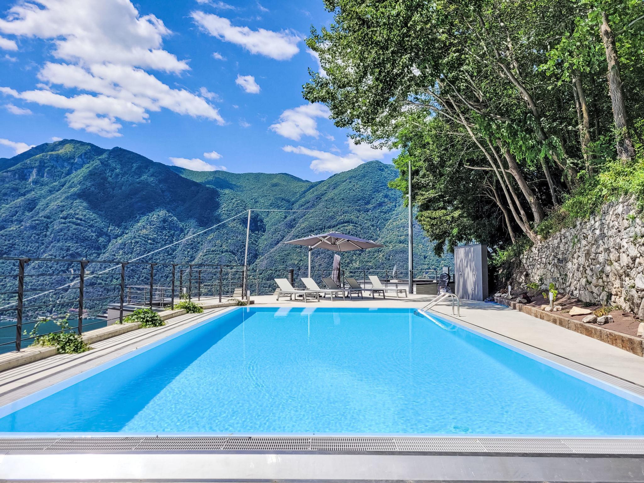 Modern, luxurious residence "Lakeview Terrace", built in 2023. 6 apartments in the residence. Above Nesso 700 m from the centre of Nesso, 20 km from the centre of Como, 21 km from the centre of Bellagio, in a sunny, elevated position on a slope, in the residential district, 2 km from the lake. For shared use: swimming pool angular (5 x 10 m, depth 140 cm, seasonal availability: 01.May. - 30.Sep.). Outdoor shower, terrace, pool maintenance by the owner/gardener. In the house: air conditioning. Stepped path (30 steps) to the house. Parking at 100 m. Shop 850 m, restaurant 300 m, bar 700 m, bus stop 100 m, railway station "Como" 19 km, ferry "Bellagio-Menaggio-Varenna" 16 km, shingle beach 2 km (small). Marina 2.3 km. Nearby attractions: Orrido di Nesso, Bellagio, Como, Varenna. Hiking paths: Cascate di Nesso, Piani del Tivano, Ghisallo. Please note: car recommended. The owner does not accept any youth groups.