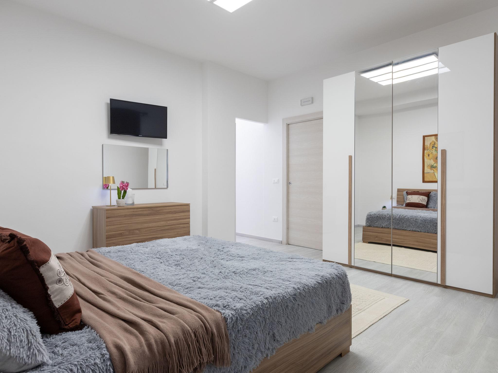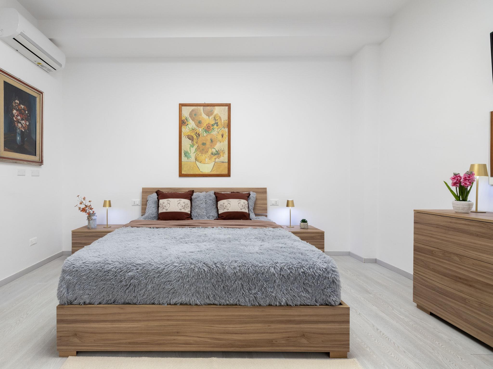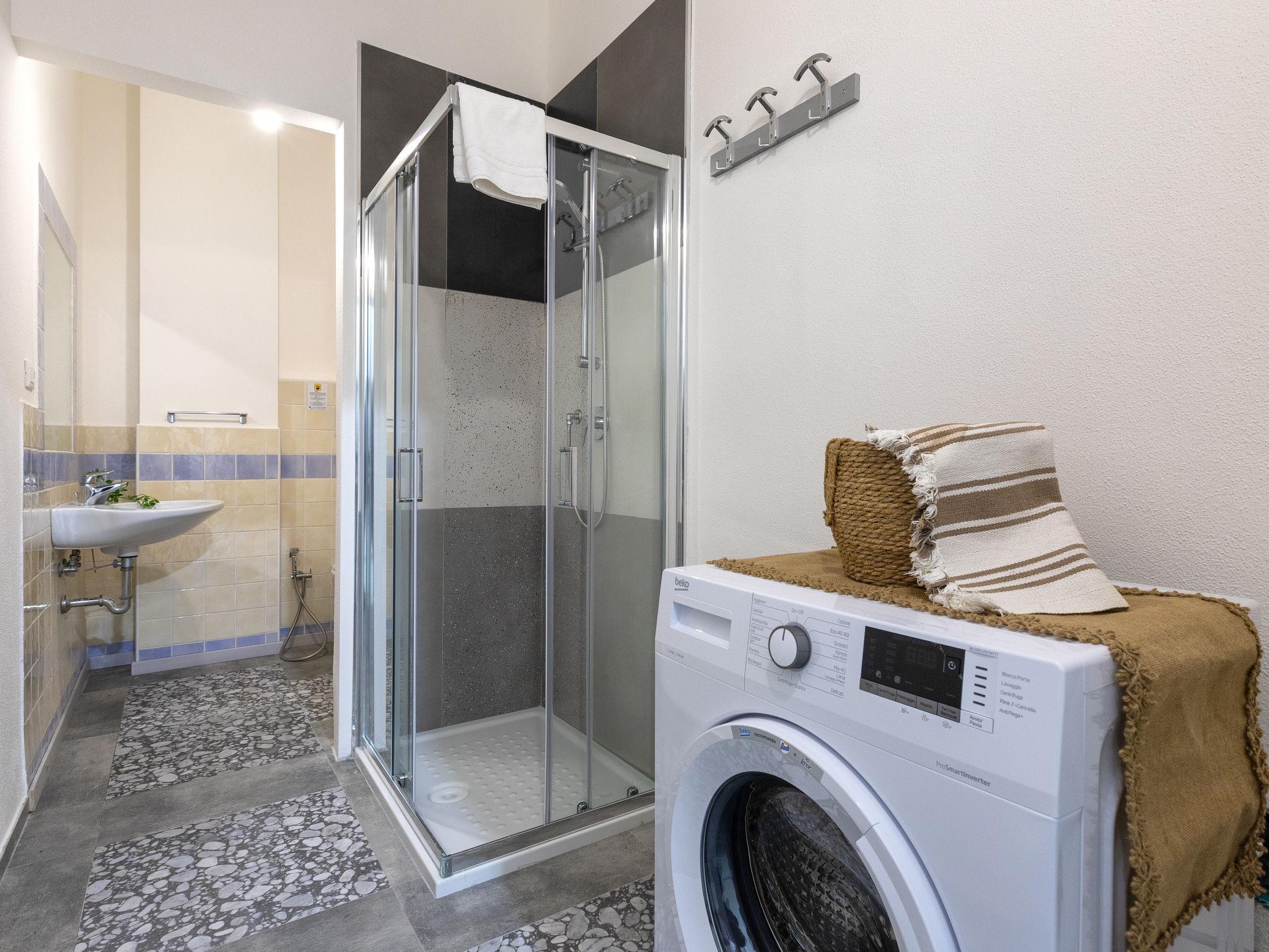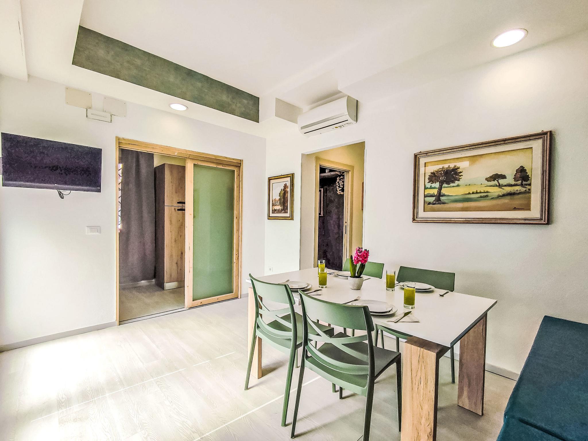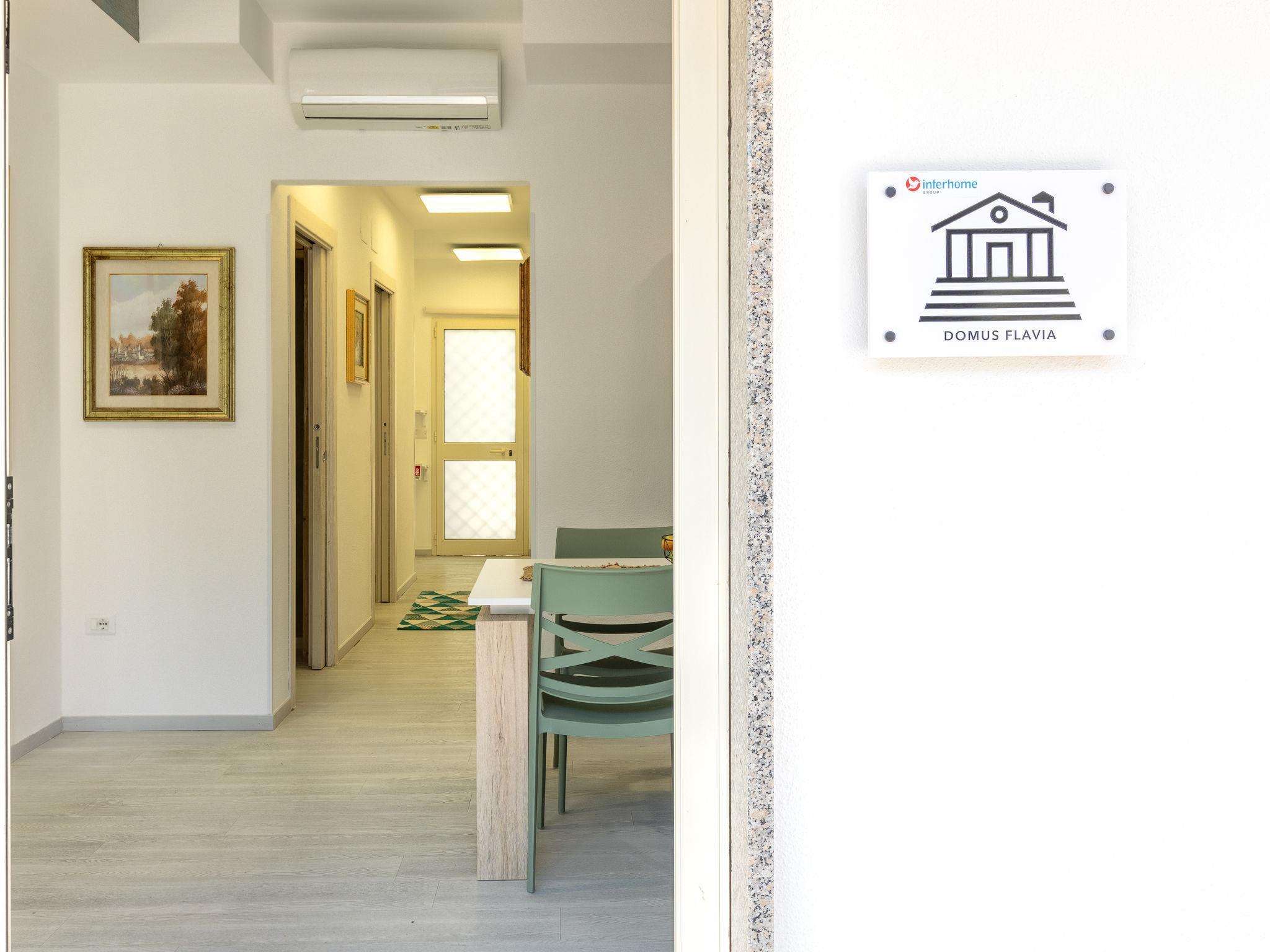 "Domus Flavia", 3-room apartment 97 m2, on the upper ground floor. Spacious, fully renovated in 2025, tasteful and cosy furnishings: living/dining room with dining table and TV (flat screen). 1 room with 1 double bed, shower/WC and TV (flat screen). Exit to the veranda. 1 room, window onto the courtyard with 1 double bed and TV (flat screen). Kitchen (oven, 4 induction hot plates, toaster, kettle, microwave) with air conditioning. Shower/WC. Air-conditioning, forced-air heating, boiler (75 litres). Small terrace. Box-room. Facilities: washing machine, iron, hair dryer. Internet (WiFi, free). Parking space n 3 (fenced 1 car). Please note: apartment carpark side. Non-smoking house. Maximum 1 pet/ dog allowed. Private entrance, smoke alarm, fire extinguisher. IT090047C2000S9258