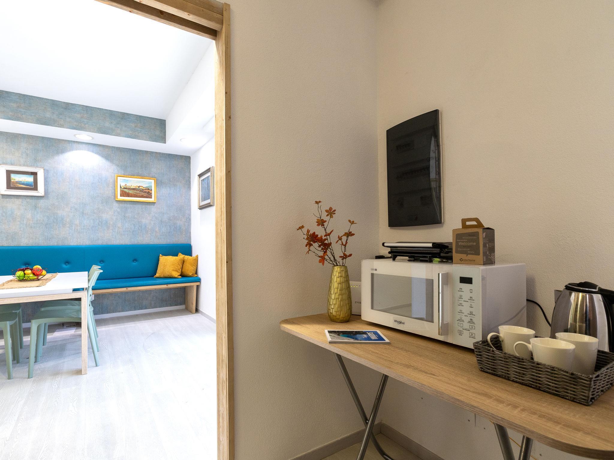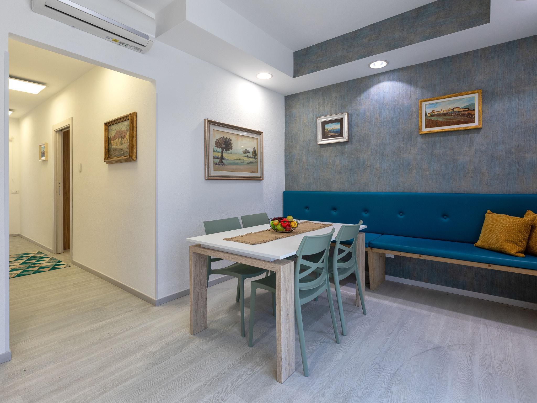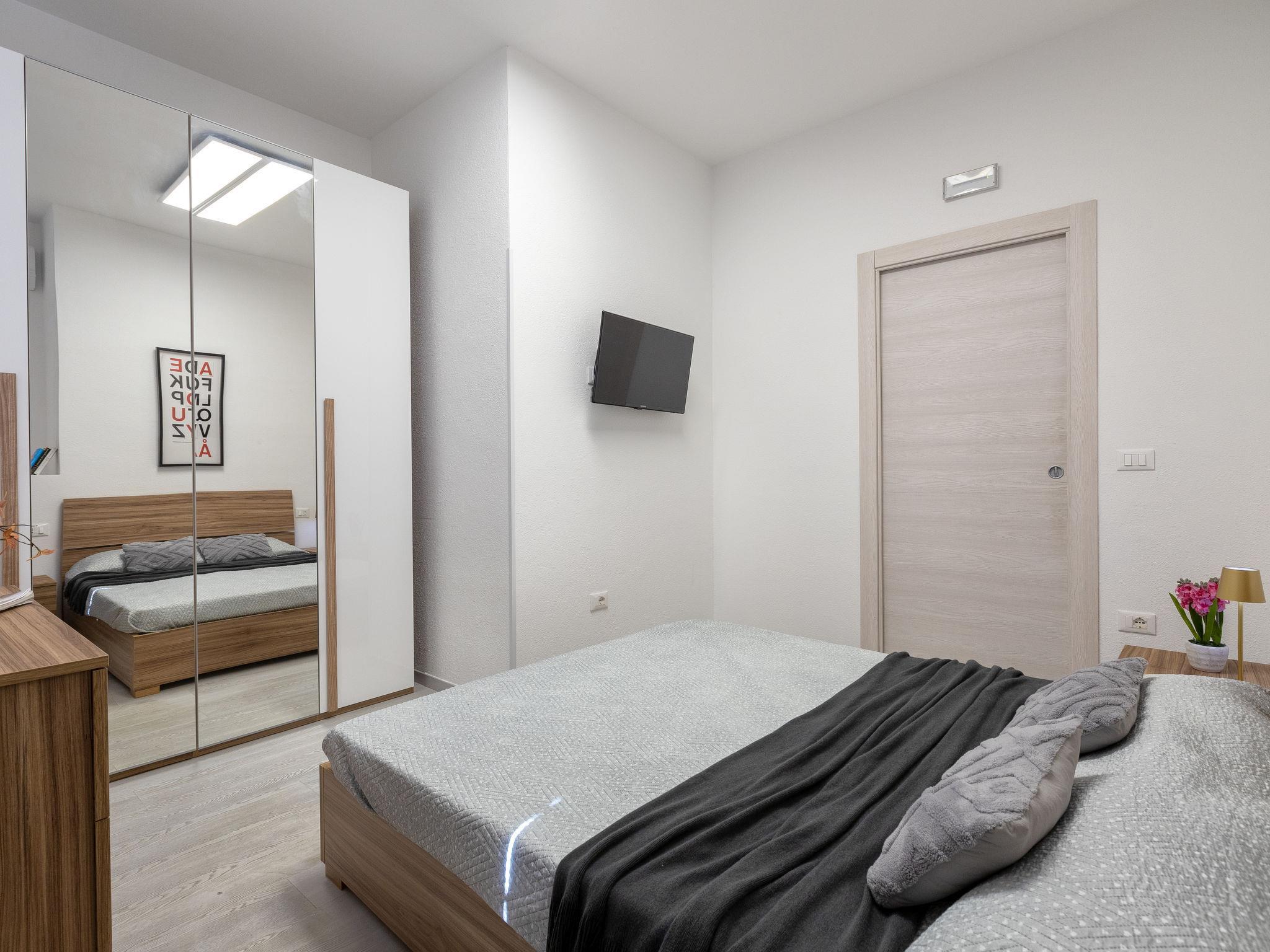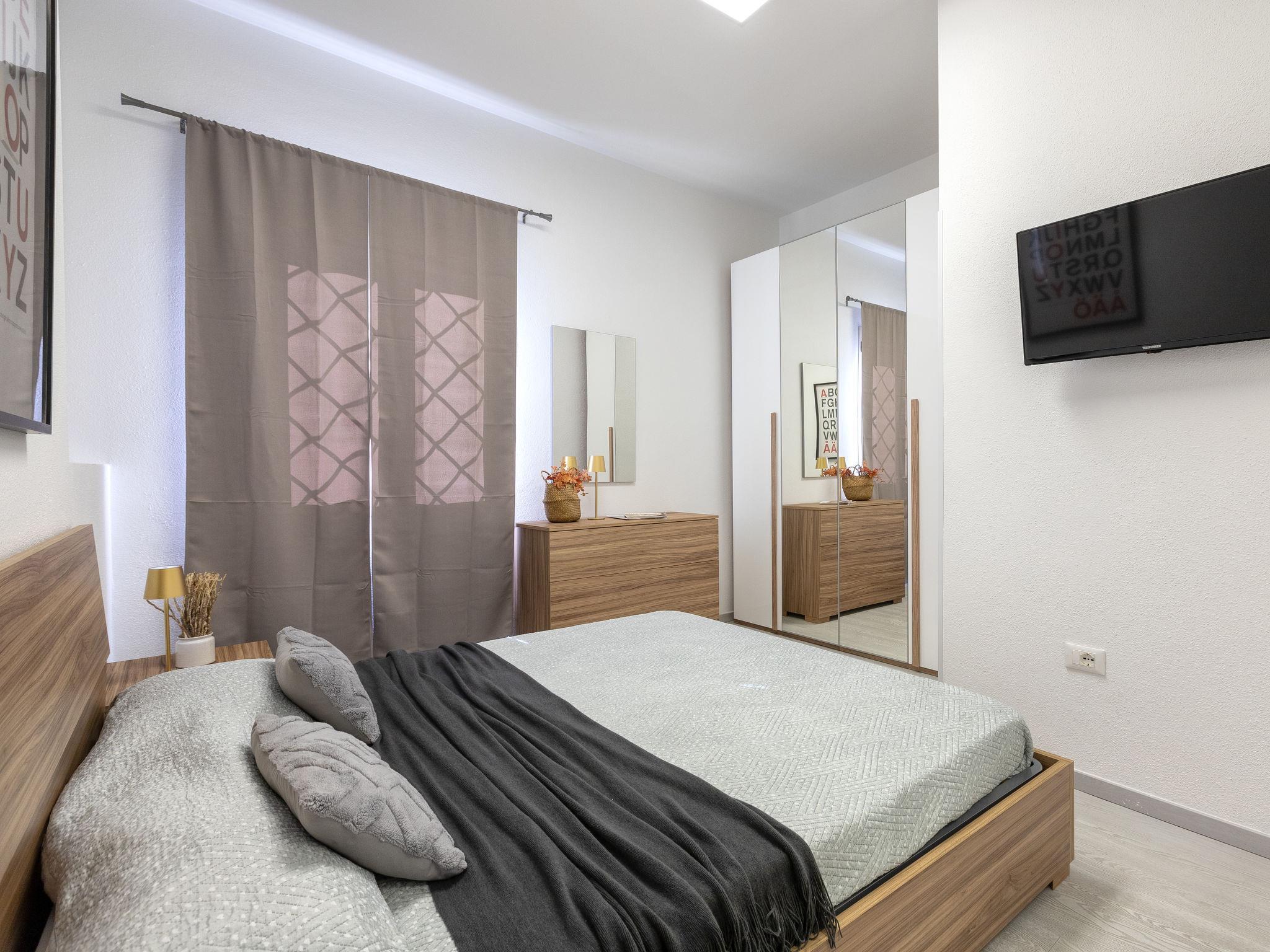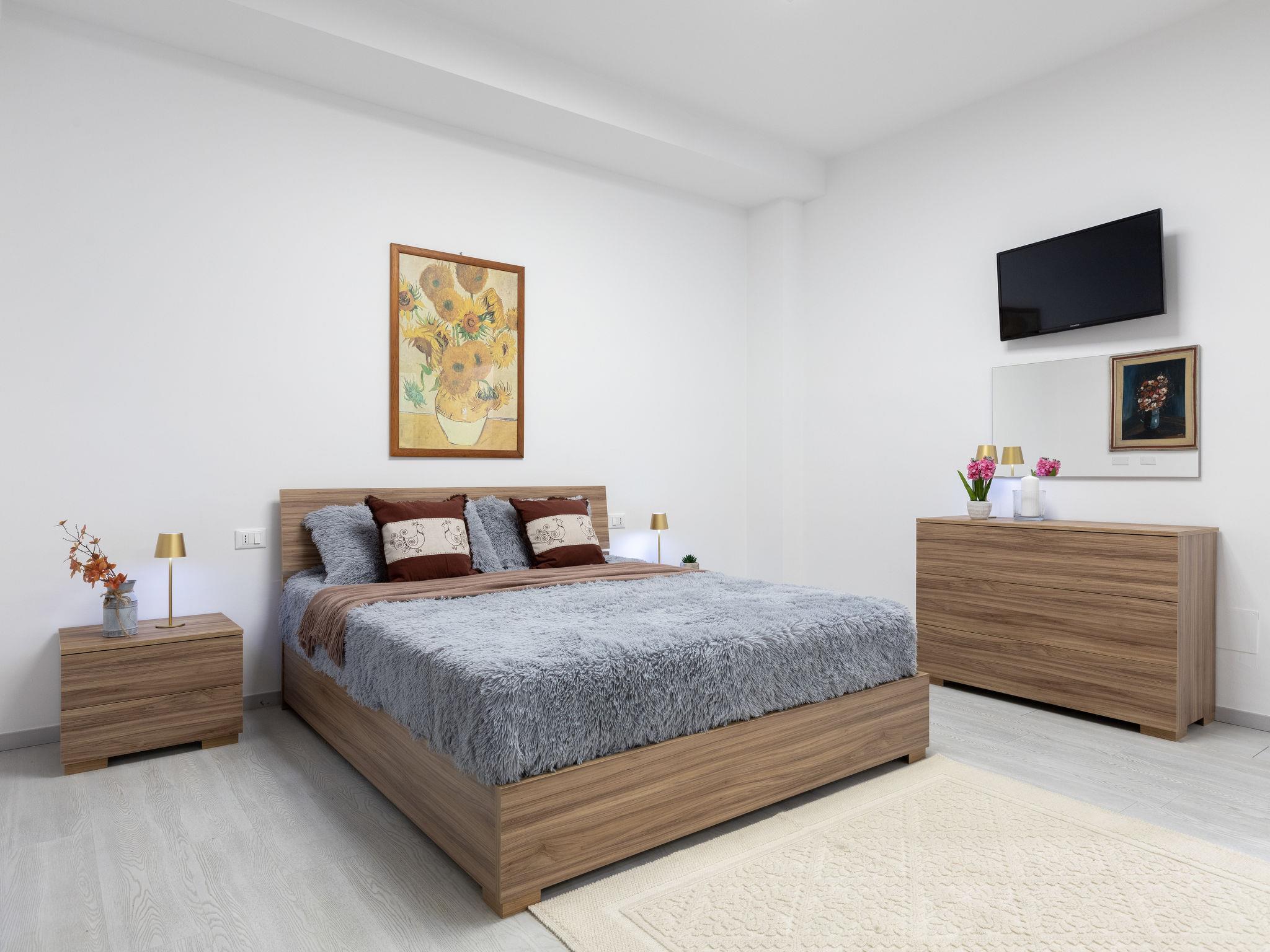 "Domus Flavia", 3-room apartment 97 m2, on the upper ground floor. Spacious, fully renovated in 2025, tasteful and cosy furnishings: living/dining room with dining table and TV (flat screen). 1 room with 1 double bed, shower/WC and TV (flat screen). Exit to the veranda. 1 room, window onto the courtyard with 1 double bed and TV (flat screen). Kitchen (oven, 4 induction hot plates, toaster, kettle, microwave) with air conditioning. Shower/WC. Air-conditioning, forced-air heating, boiler (75 litres). Small terrace. Box-room. Facilities: washing machine, iron, hair dryer. Internet (WiFi, free). Parking space n 3 (fenced 1 car). Please note: apartment carpark side. Non-smoking house. Maximum 1 pet/ dog allowed. Private entrance, smoke alarm, fire extinguisher. IT090047C2000S9258
