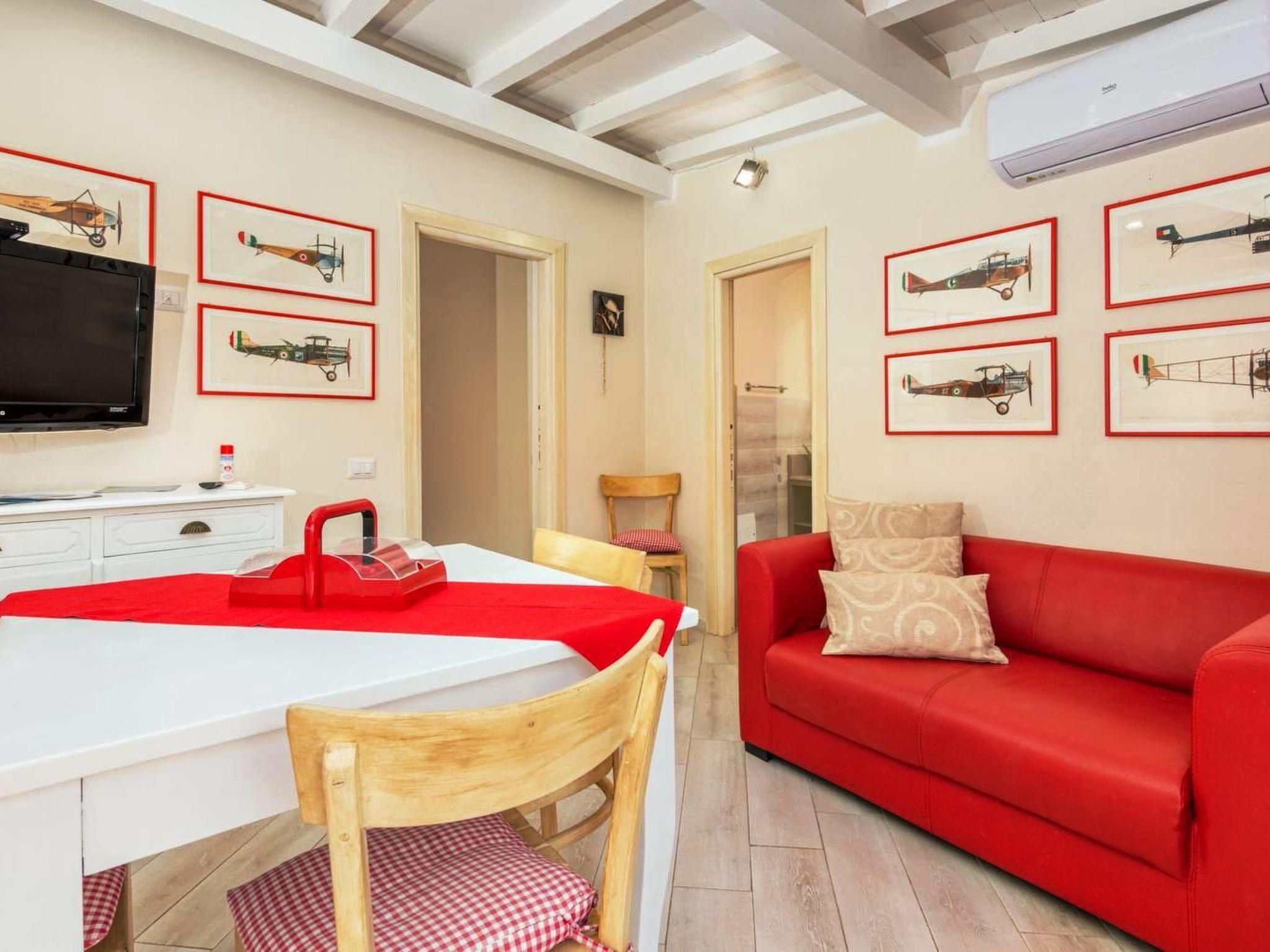The apartment is about 55 square meters, is made up of the following rooms: a living room with kitchen, flat screen TV and sofa for two people; a bedroom (next to the living room) with a double bed; a fully equipped kitchen with stove, oven, microwave, coffee machine and dining corner, finally an adjacent bathroom with shower and bidet.