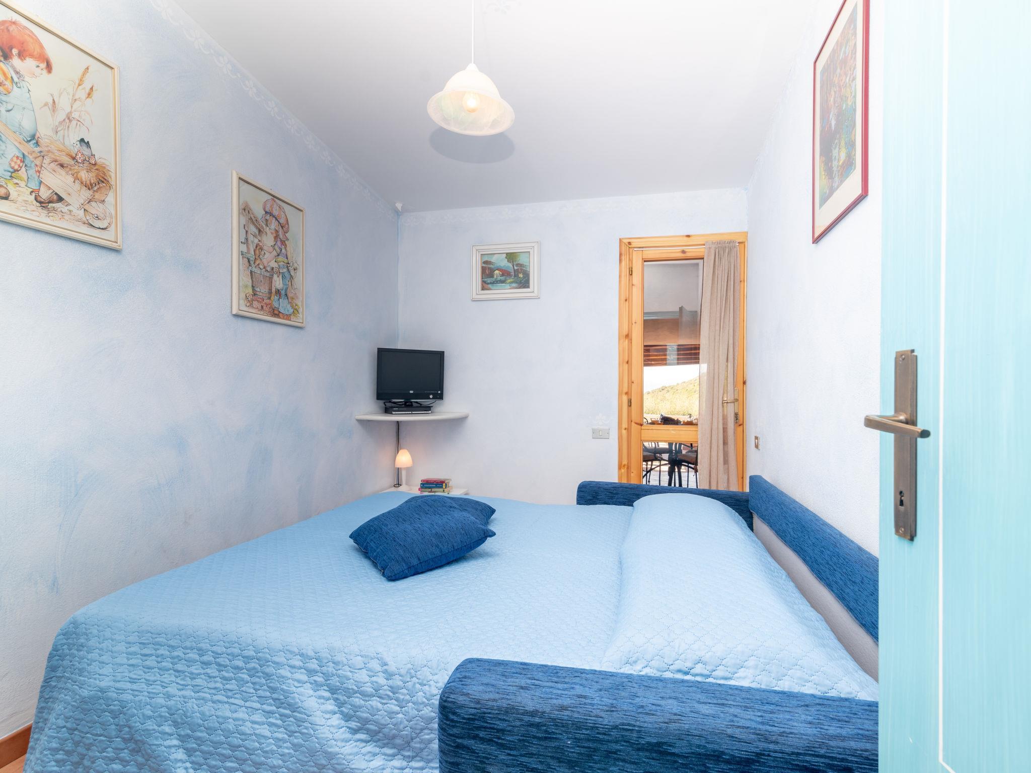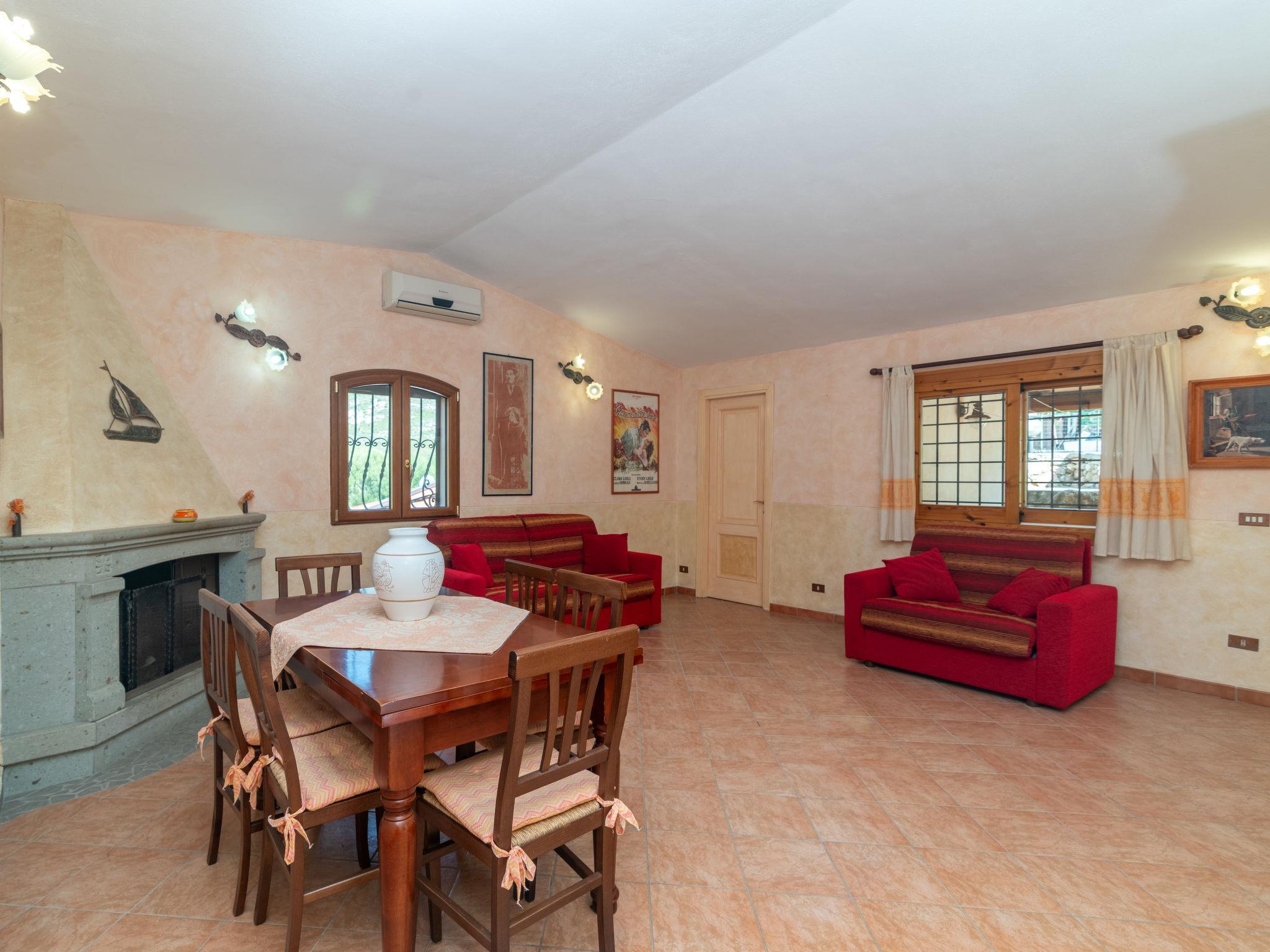 "Fusco", 4-room house 110 m2, on the upper ground floor. Comfortable and cosy furnishings: living/dining room with 1 sofabed and TV. Exit to the terrace. 1 double bedroom with TV. 2 rooms, each room with 1 double sofabed. Exit to the veranda. Open kitchen (oven, 4 gas rings, toaster, kettle, microwave). Exit to the veranda. 2 showers/bidet/WC. Air-conditioning, forced-air heating (extra). Large terrace roofed, terrace partly roofed. Terrace furniture, barbecue, sitting area. Panoramic view of the sea and the countryside. Facilities: washing machine, iron, children's high chair, baby cot (extra), hair dryer. Parking (roofed). Maximum 1 pet/ dog allowed. IT090047C2000R9827