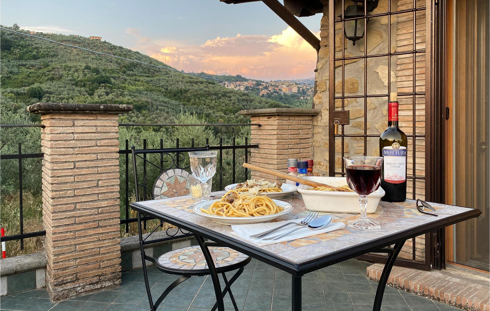 På toppen af ??en bakke, med en dejlig panoramaudsigt over sletten, byder dette feriehus jer velkommen uden for den gamle middelalderby Olevano Romano.