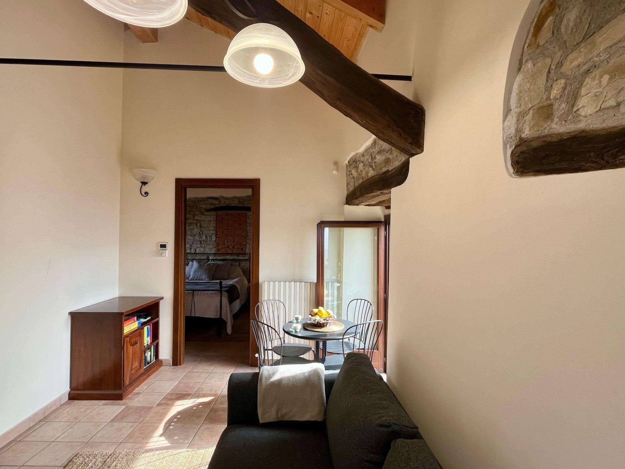 This charming apartment in Olmo Gentile, nestled in the enchanting landscapes of the Alta Langhe Piedmont region, offers a serene getaway for 2-4 guests. Situated in a detached country estate on the first floor, this retreat ensures a comfortable stay with its well-appointed amenities. The apartment comprises 1 Livingroom 1 bedroom and 1 bathroom, and a breath taking balcony over the hills and the Alps.