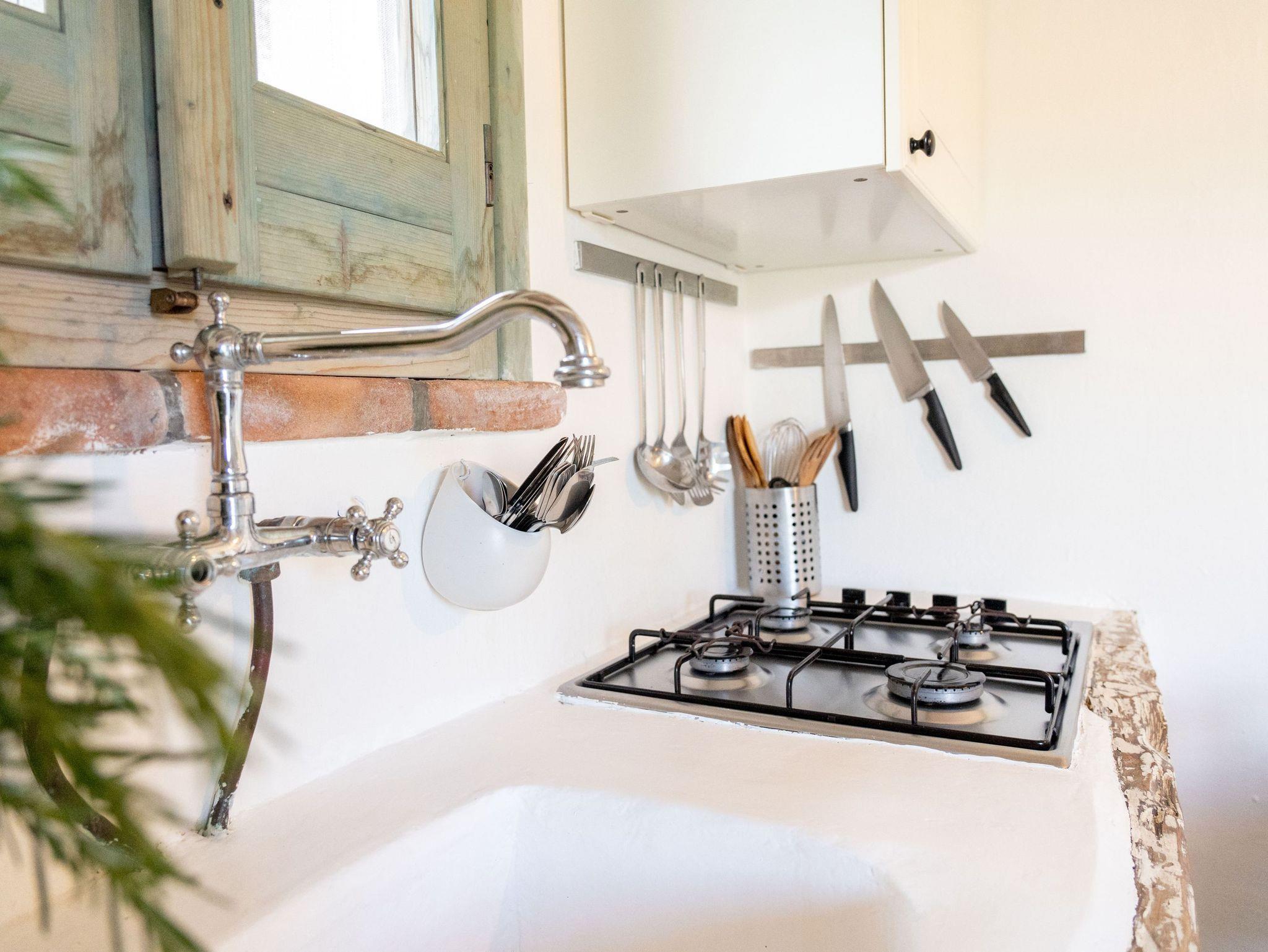 Das Haus ist von Olivenbäumen und frischer Minze umgeben und verfügt über eine offene Architektur mit einem Schilfdach und einer Schlafgalerie. Es wurde ausschließlich aus Naturmaterialien erbaut und die Küche wurde freihand gemauert. Hier kann man die Ruhe genießen und dem Gesang der Zikaden lauschen, während man die saubere Luft atmet. Ein besonderes Highlight ist der kleine SPA-POOL.