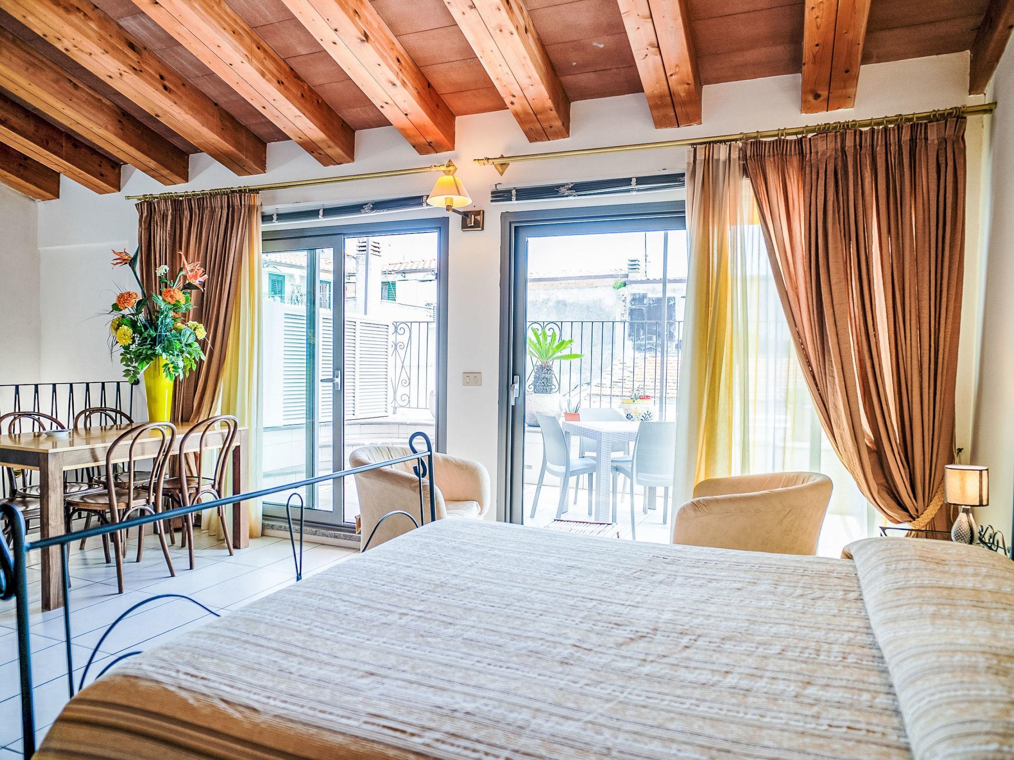 "Roof", 2-room apartment on 3rd floor. Very comfortable and cosy furnishings: living/dining room with 1 double bed, TV and air conditioning. Exit to the balcony. With sloping ceilings with 1 bed and 1 double bed. Kitchenette (4 gas rings, kettle, electric coffee machine). Exit to the balcony. Shower/bidet/WC. Heating. Maximum 1 pet/ dog allowed. IT069058B4VSAAHGH9