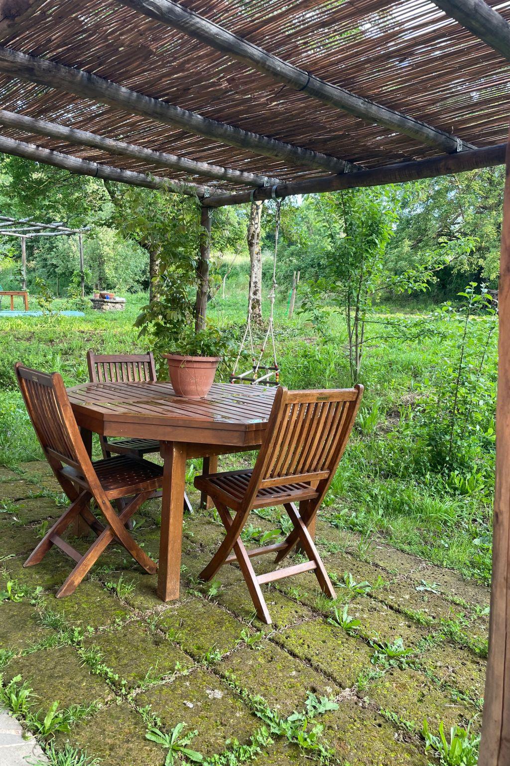 The large garden is for communal use and is completely enclosed, a feature that adds a sense of tranquillity and security to your stay. The outdoor area is designed for relaxing evenings or peaceful mornings, where the greenery of nature will envelop you in a rejuvenating embrace.