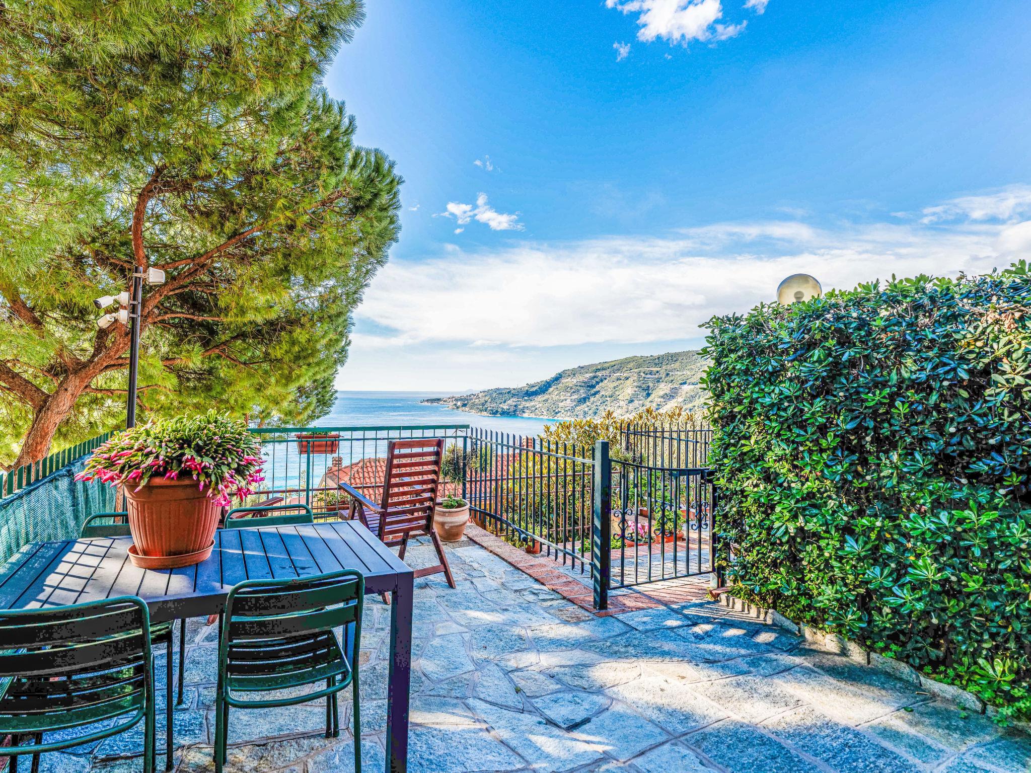 "Beautiful Seaview", 2-room terraced house 60 m2 on 1st floor. Comfortable and tasteful furnishings: living/dining room with 1 sofabed (140 cm, length 200 cm). Exit to the terrace. Open kitchen (oven, dishwasher, 4 induction hot plates, toaster, kettle, microwave, electric coffee machine). Shower/bidet/WC. Air-conditioning, forced-air heating. 2nd upper floor: 1 double bedroom with shower/bidet/WC. Terrace. Terrace furniture. Very beautiful panoramic view of the sea and the resort. Facilities: washing machine, children's high chair, baby cot for up to 2 year olds, hair dryer. Internet (WiFi, free). Please note: non-smoking house. Private entrance, smoke alarm, fire extinguisher. IT008035C242JECVLR