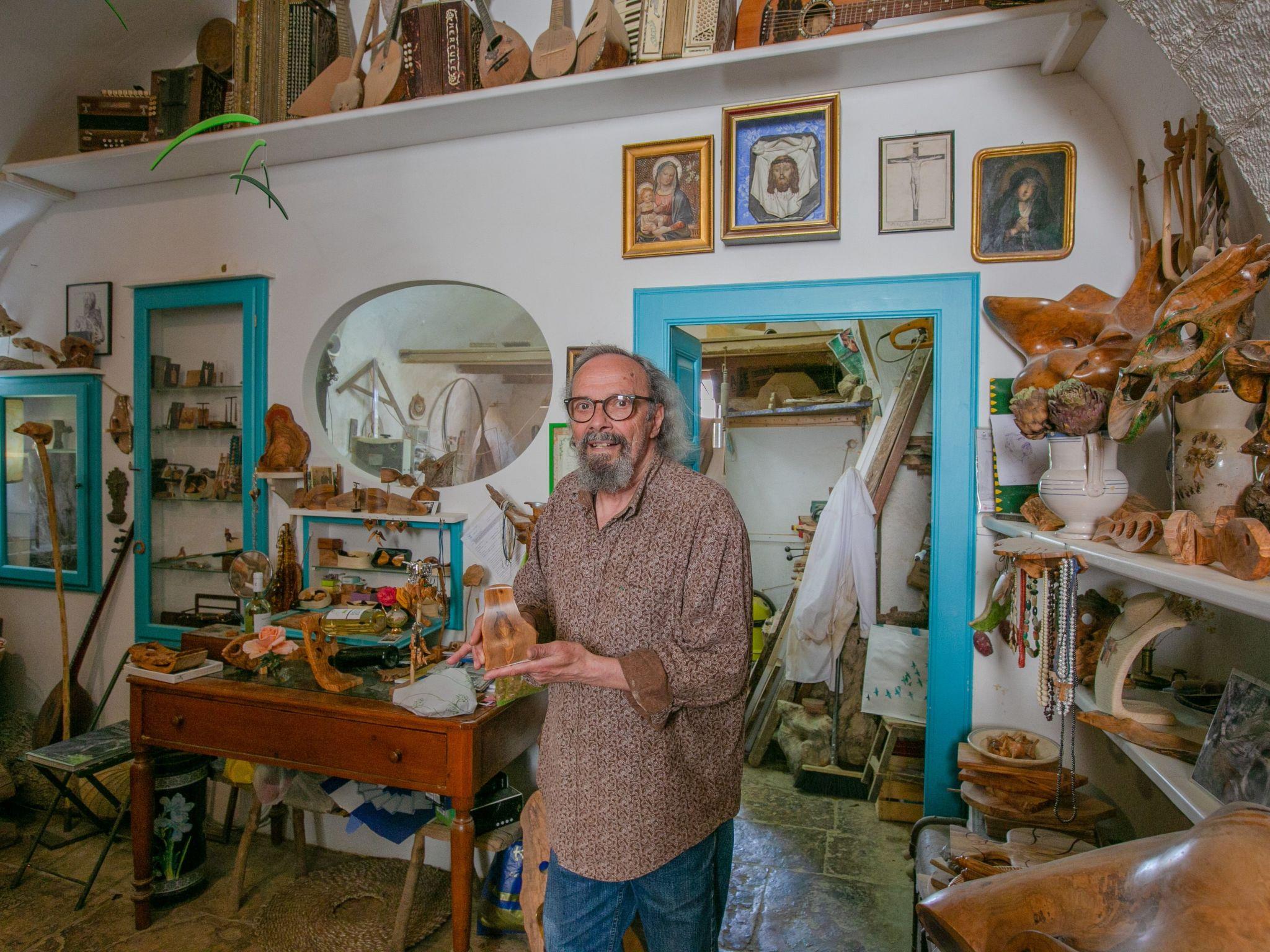 at 200 m l'Ulivo che Canta' olive tree objects handmade by the sculptor Tonino Zurlo;