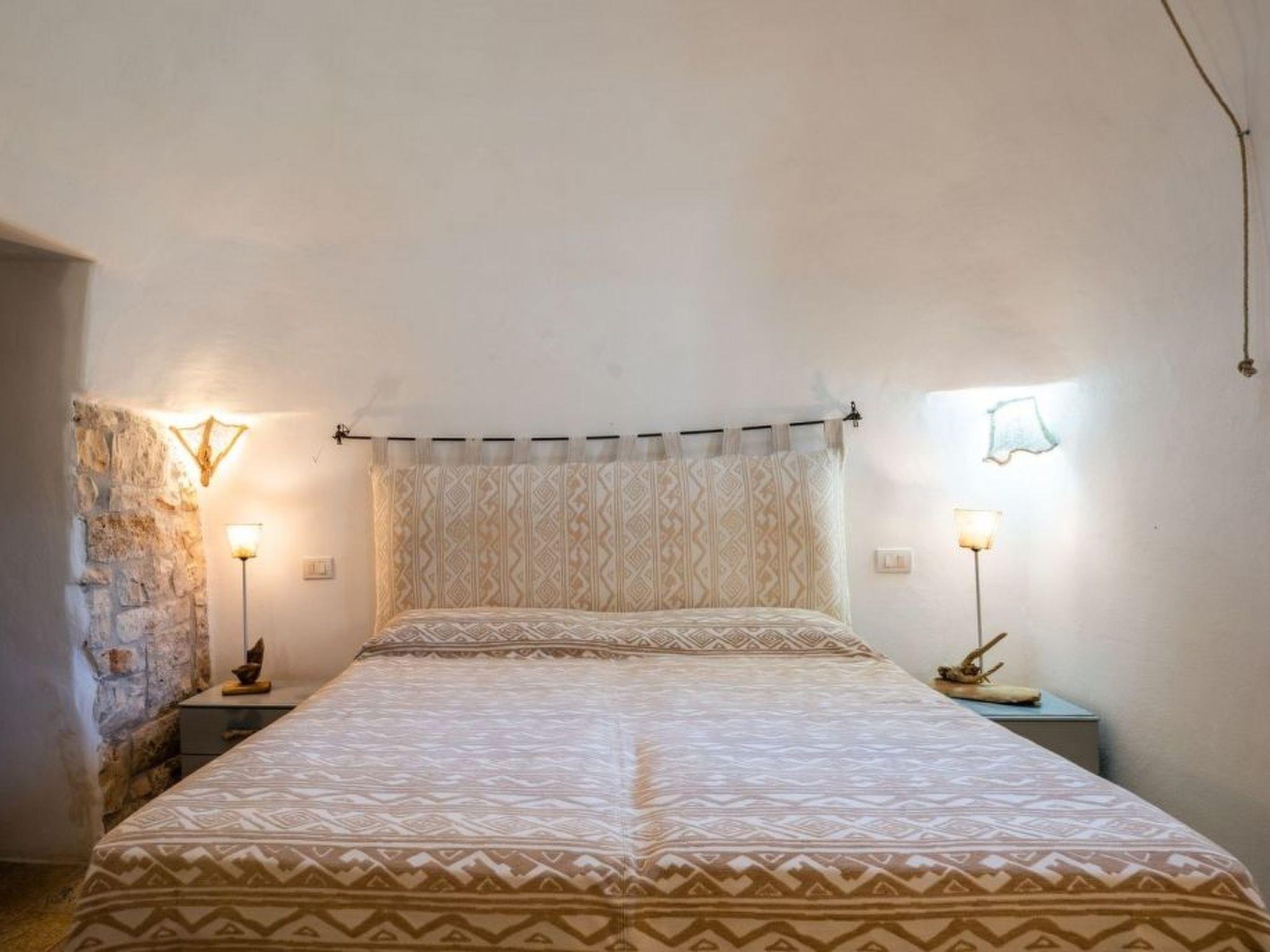 The lovingly restored trulli, two in number, are furnished as a private villa for exclusive rental for up to 14 people. Situated on a slight hill in the typical natural landscape of the Itria Valley, it is the ideal place to enjoy the peace and quiet, the flavours of this fascinating region and the simple elegance of the trulli rooms. A highlight is the outdoor swimming pool set in hollowed-out rocks. The outdoor area also features tasteful garden furniture made of local stone, which has been transformed into particularly beautiful outdoor lounges. This large holiday villa offers every comfort such as air conditioning, Internet WIFI, TV-DVD player, a private barbecue, weekly cleaning and a wonderful panoramic view of the coast and the Itria Valley.