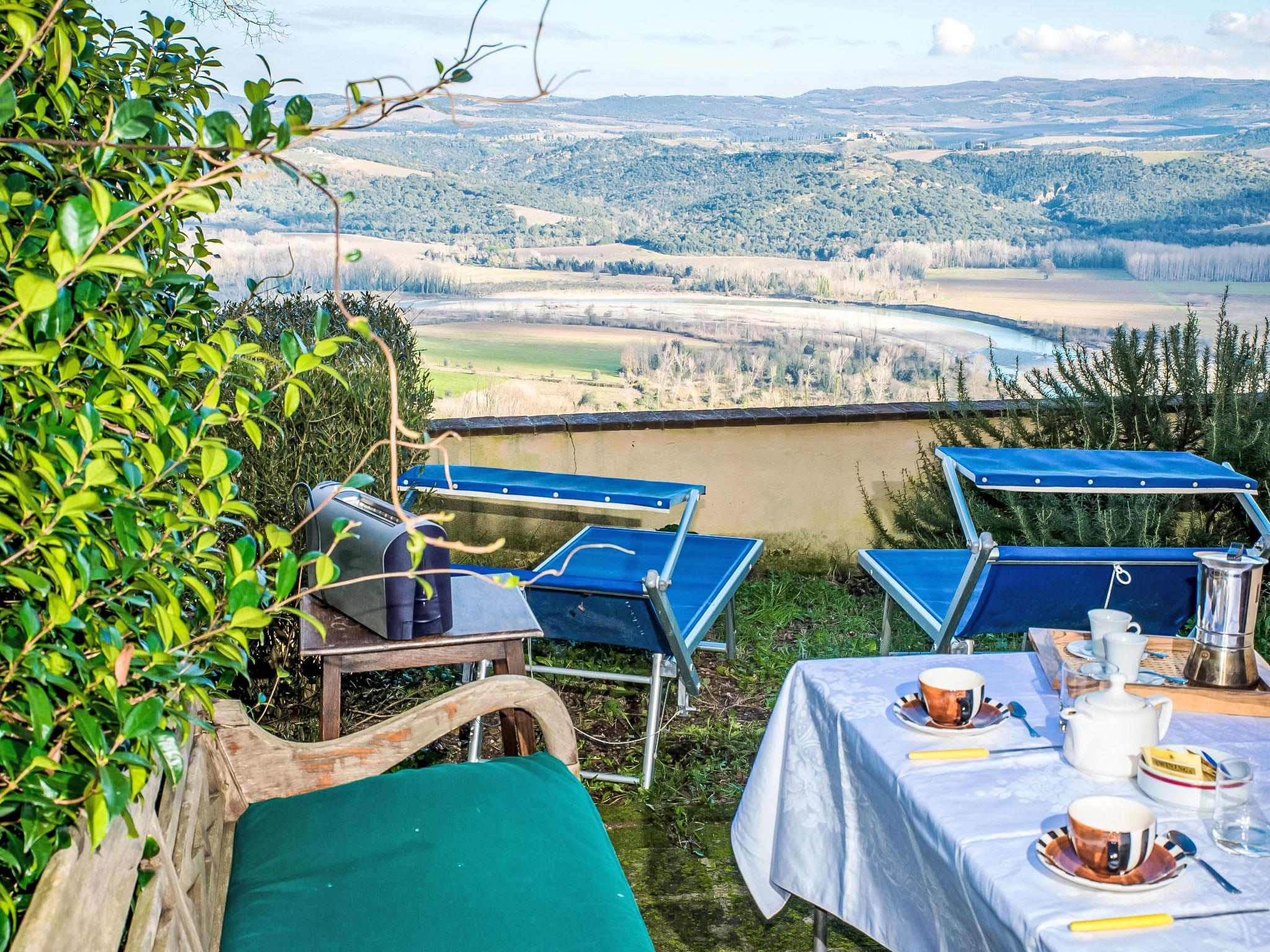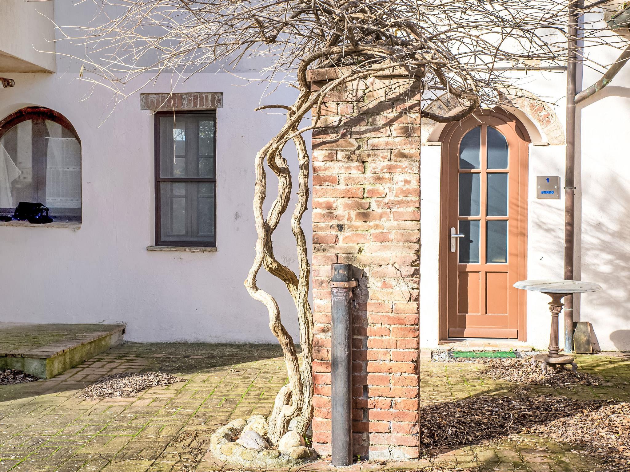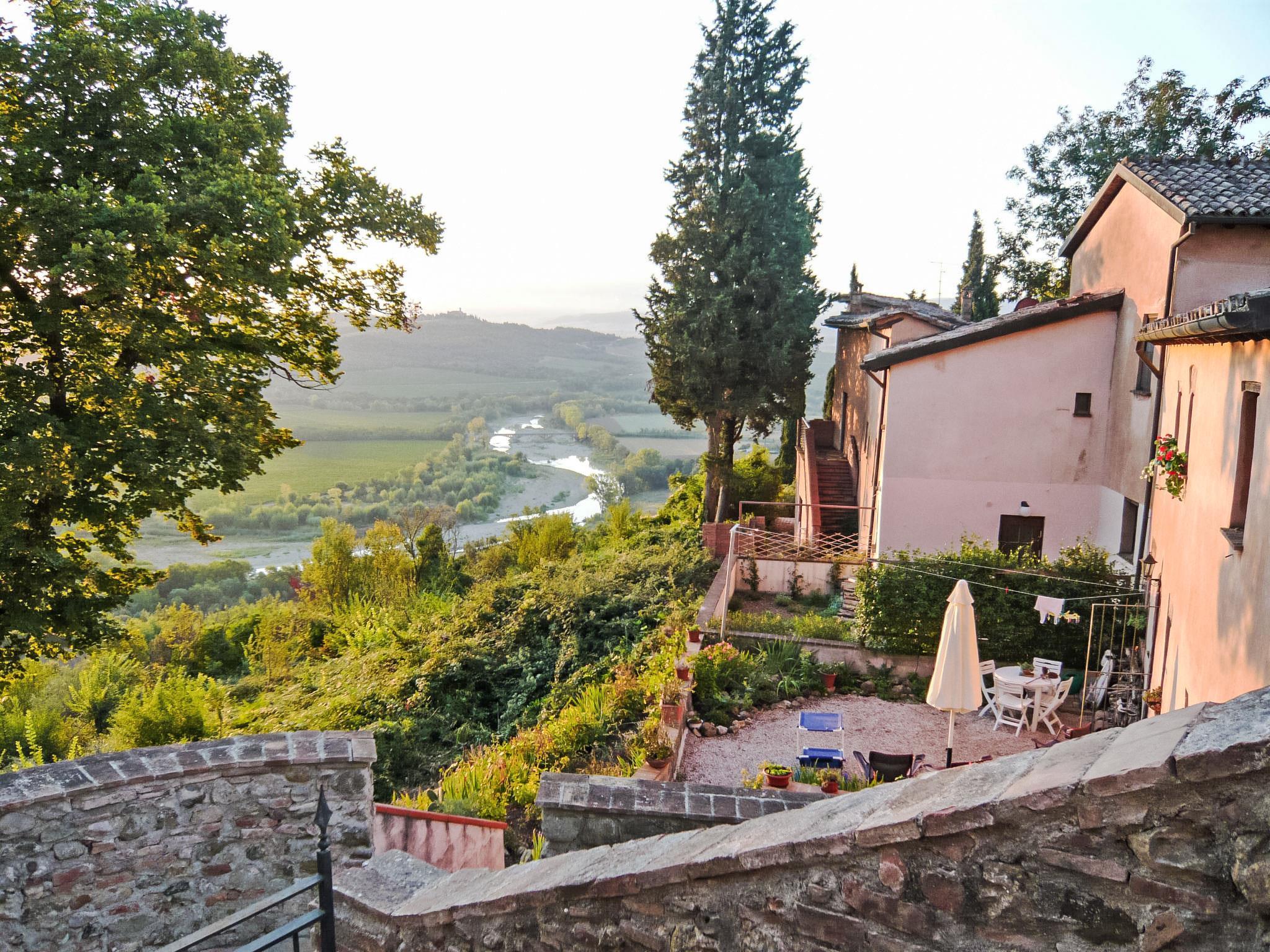 "Borgo", 3-room terraced house 70 m2 on 2 levels. Tasteful and cosy furnishings: open living room with 1 sofabed, open-hearth fireplace and satellite TV. Exit to the patio. Kitchenette (4 hot plates, oven, toaster, kettle, electric coffee machine) with dining table. Exit to the garden. Upper floor: 1 double bedroom. 1 room with 1 french bed (140 cm). Bath/bidet/WC. Patio, garden. Barbecue, sitting area. Beautiful view of the countryside and the river. Facilities: washing machine. Maximum 2 pets/ dogs allowed. The double bed can be divided in two single beds. Guest can gather in the courtyard and enjoy the garden, shared pool (150m from the apartment). Please note that the WIFI is available in the common areas near the reception (100m from the apartment). IT053008C2WC62IG2F