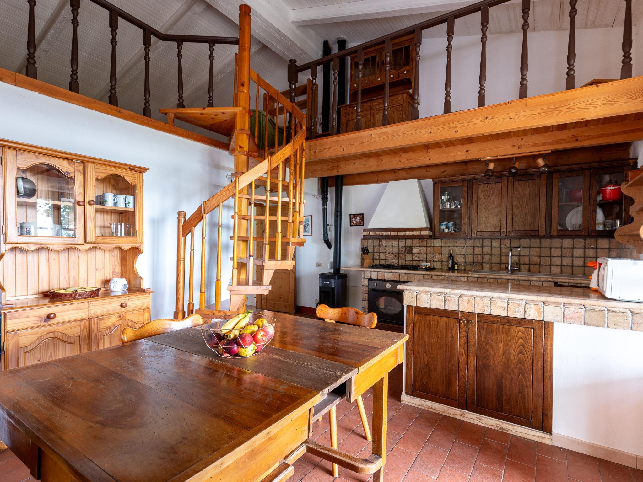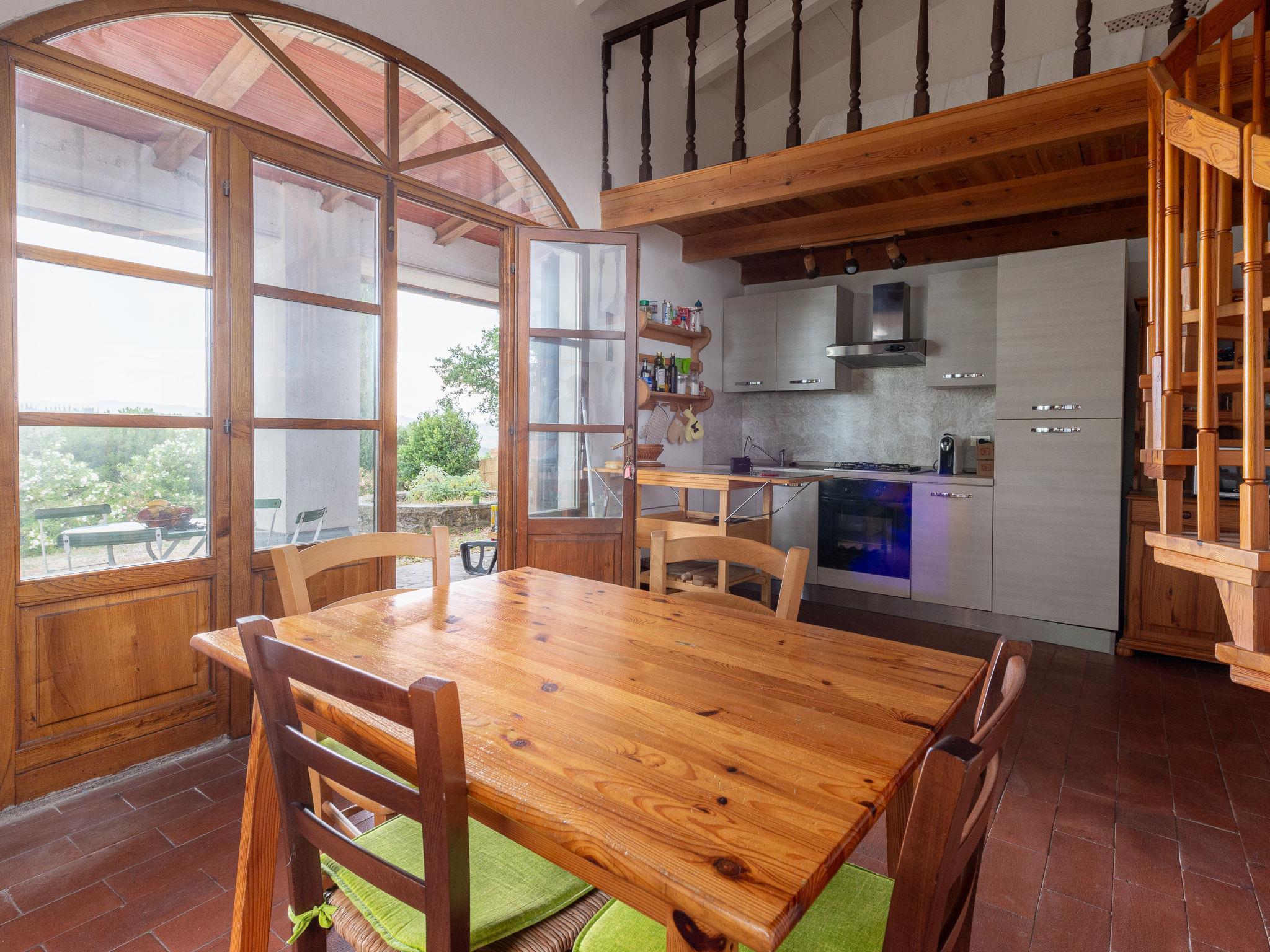 5-room house 120 m2 on 2 levels. Cosy furnishings: living/dining room with open-hearth fireplace, dining table, TV, wood-burning stove and air conditioning. Exit to the terrace. Living room with open-hearth fireplace, dining table, kitchen corner, TV and air conditioning. Exit to the terrace. 1 room with 1 double bed (200 cm). 1 room with 1 bed and 1 double bed (160 cm). Open kitchen (oven, dishwasher, 6 gas rings, toaster, kettle, microwave, electric coffee machine). Exit to the terrace. 2 showers/bidet/WC. Upper floor: (spiral staircase) open gallery with sloping ceilings with 3 beds. (spiral staircase) open gallery with sloping ceilings with 3 beds. Wood heating, forced-air heating. Heating not available in all rooms. Terrace roofed. Terrace furniture, barbecue, deck chairs. Very beautiful panoramic view of the countryside. Facilities: washing machine, iron, baby cot for up to 2 year olds, hair dryer. Internet (WiFi, free). Parking. Please note: non-smokers only. Maximum 2 pets/ dogs allowed. Private entrance. No internal connecting door between the separated properties. IT053007C2KFV6TISP,IT053007C2VMRBJJKF
