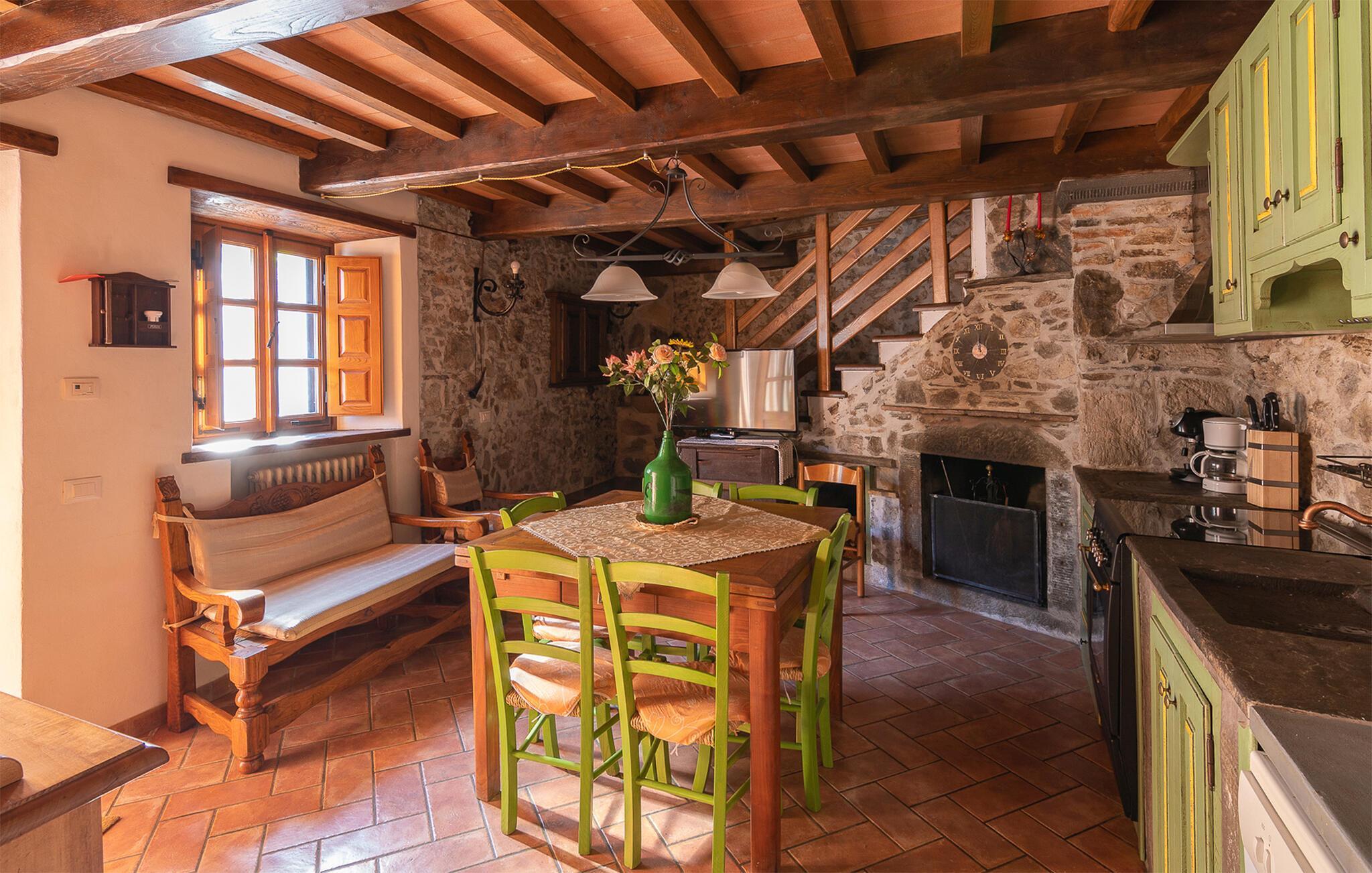 Velkommen til dette charmerende feriehus, hvor rustikke træbjælker, naturstensvægge og komfortable møbler skaber en varm og indbydende atmosfære. Tilbered toskanske retter i det hyggelige køkken, og nyd dem sammen ved det store spisebord. Om aftenen kan I slappe af foran pejsen og lade dagen slutte i afslappende omgivelser.