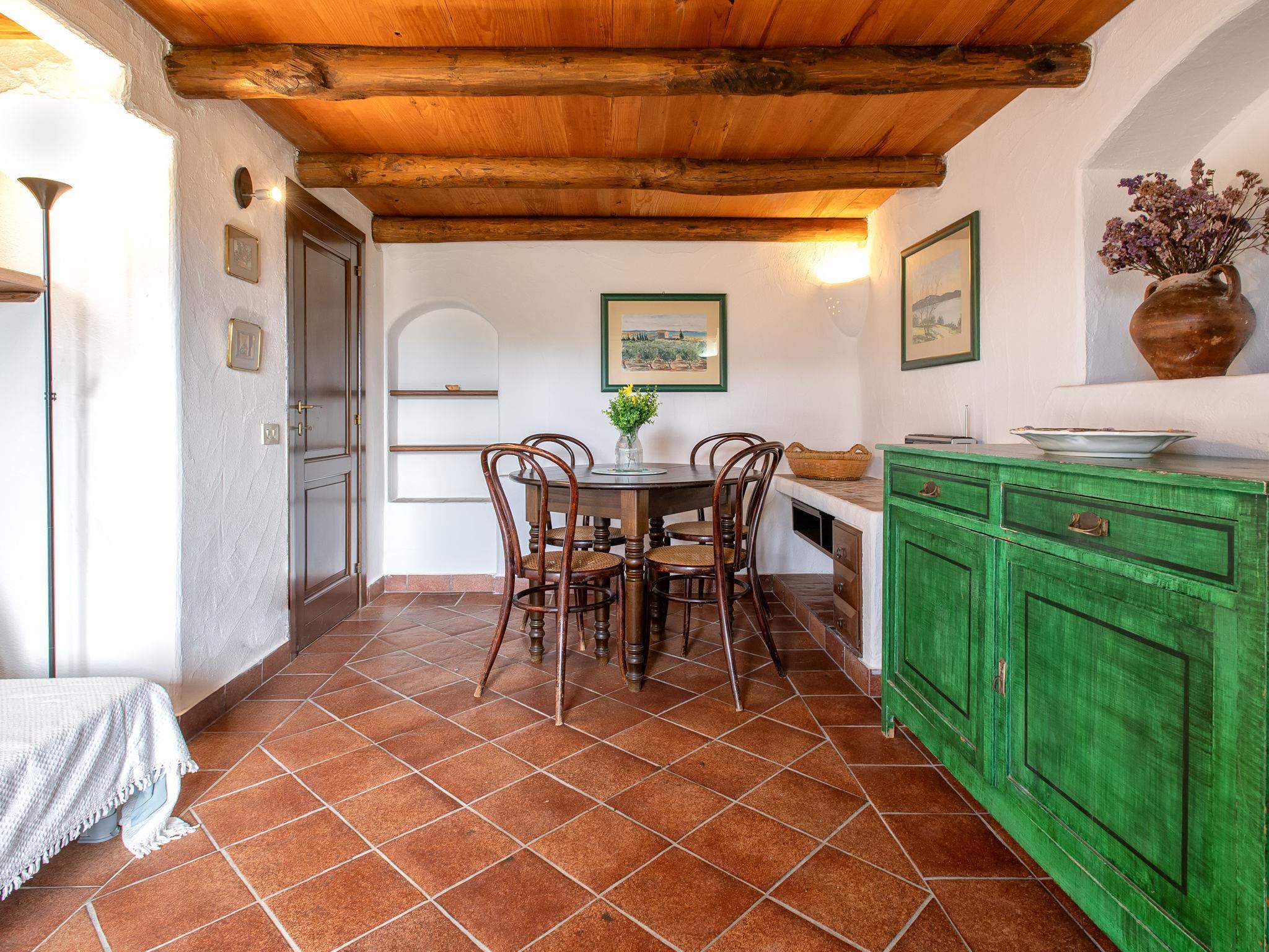 "Libeccio", 3-room house on the ground floor. Partly with sloping ceilings, rustic and antique furnishings: living/dining room with 1 double sofabed and Scandinavian wood stove (only for decoration), satellite TV (flat screen). Exit to the terrace. Kitchen (4 hot plates, oven, dishwasher, toaster, kettle). Shower/bidet/WC. No heating option. Upper floor: 1 double bedroom with sloping ceilings with 1 bed. Terrace roofed. Terrace furniture, barbecue, sitting area. Beautiful, of the countryside. Facilities: washing machine, iron, hair dryer. Internet (WiFi, free). IT090054C2000S9594