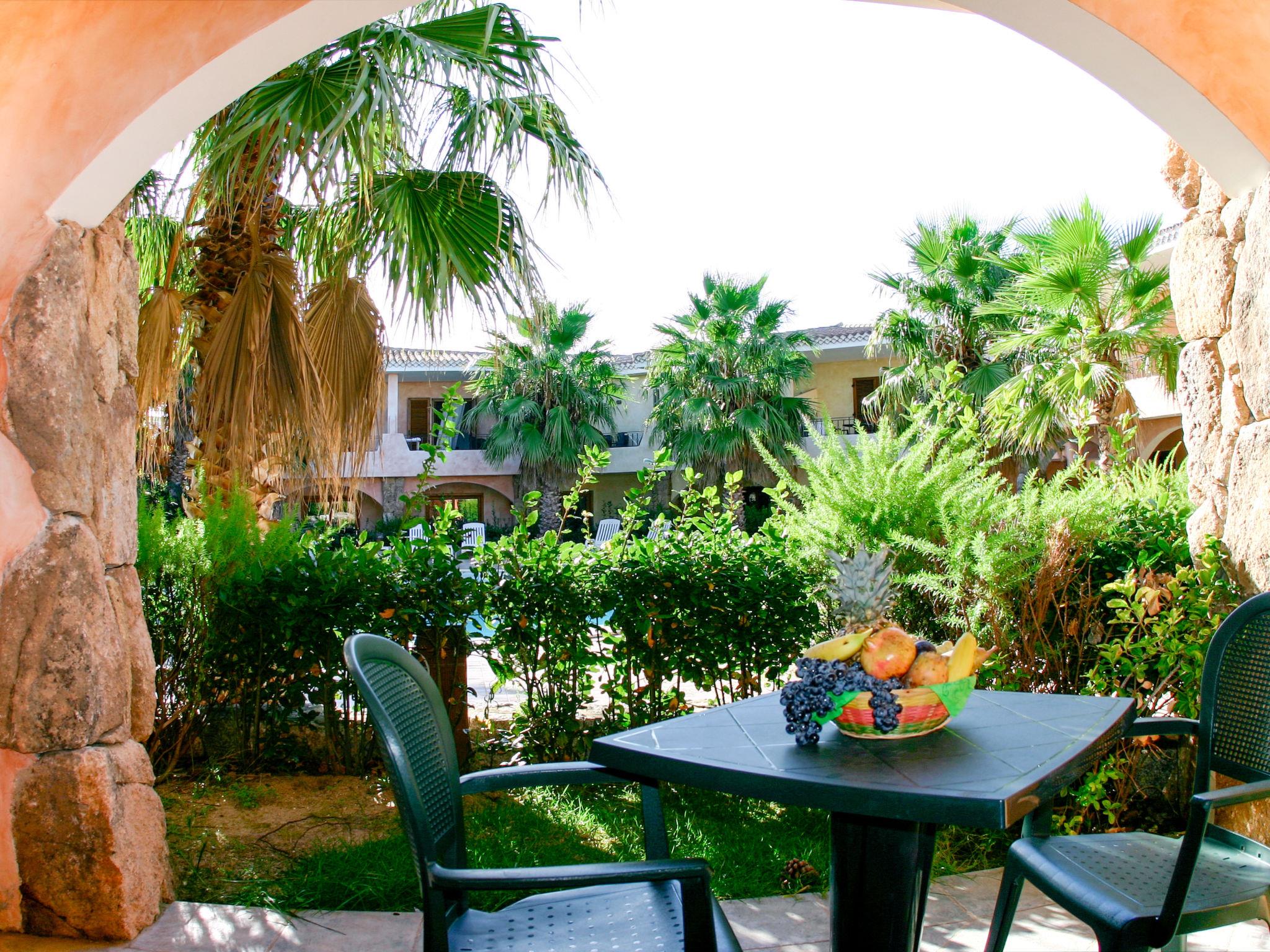 Beautiful resort "Green Village", 2 storeys, surrounded by trees. 42 apartments in the residence. 500 m from the centre of Palau, 42 km from the centre of Olbia, 150 m from the sea, 150 m from the beach. For shared use: large, well-kept garden (not fenced) with lawn and plants, swimming pool round (11 m2, depth 140 - 230 cm, seasonal availability: 28.Mar. - 30.Oct.). Terrace, barbecue, children's playground. In the complex: reception, bar, washing machine, tumble dryer (for shared use), bicycle rental. Breakfast possible on request (extra). Central parking spaces. Shop 750 m, supermarket 1.6 km, bus stop 1.5 km, ferry "Olbia" 42 km, sandy beach "'Capo d'Orso Marina'" 250 m. Golf course (9 hole) 3.7 km. On request: airport transfer to the holiday accommodation. Please note: the photograph shows a typical example.