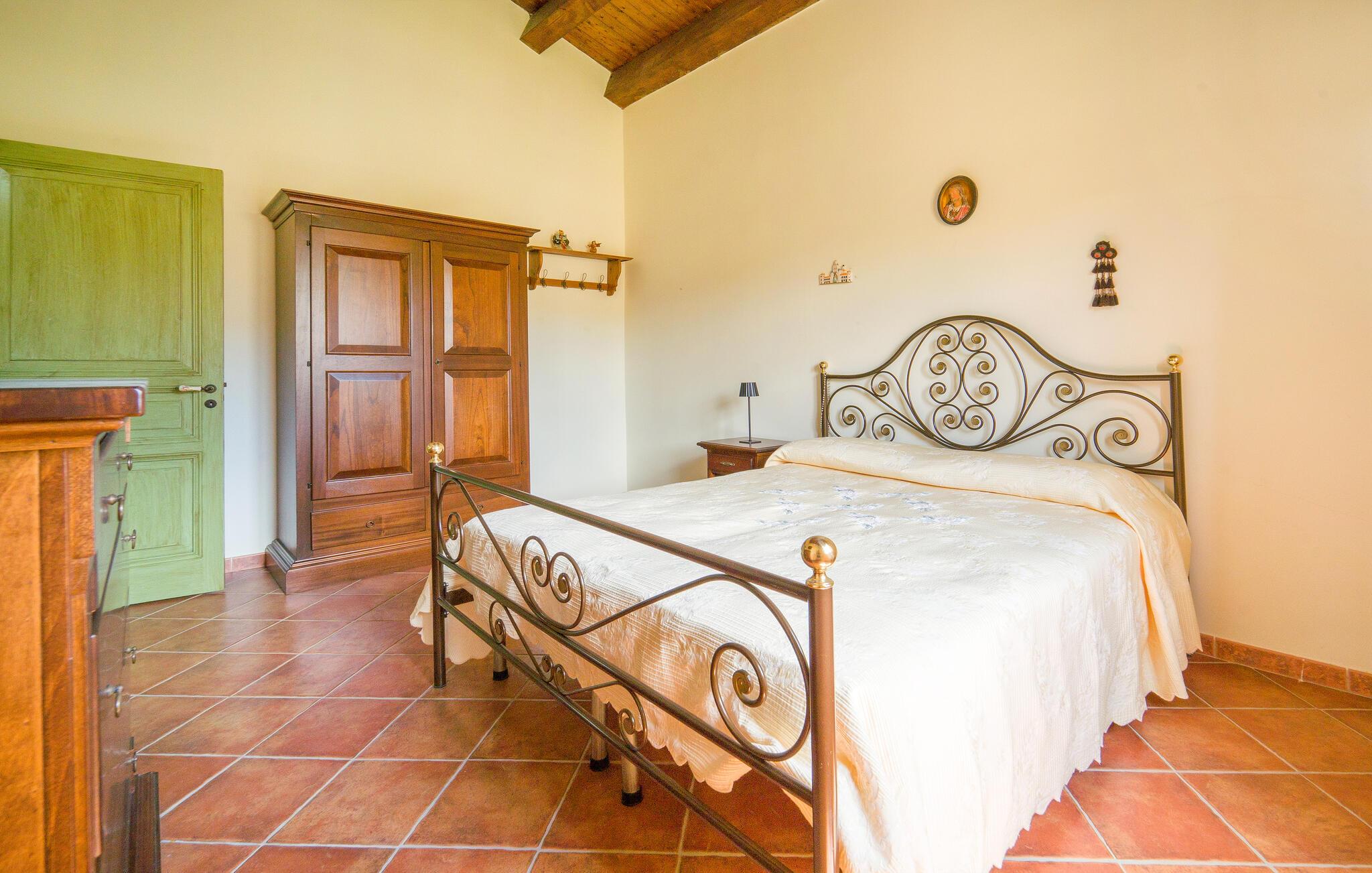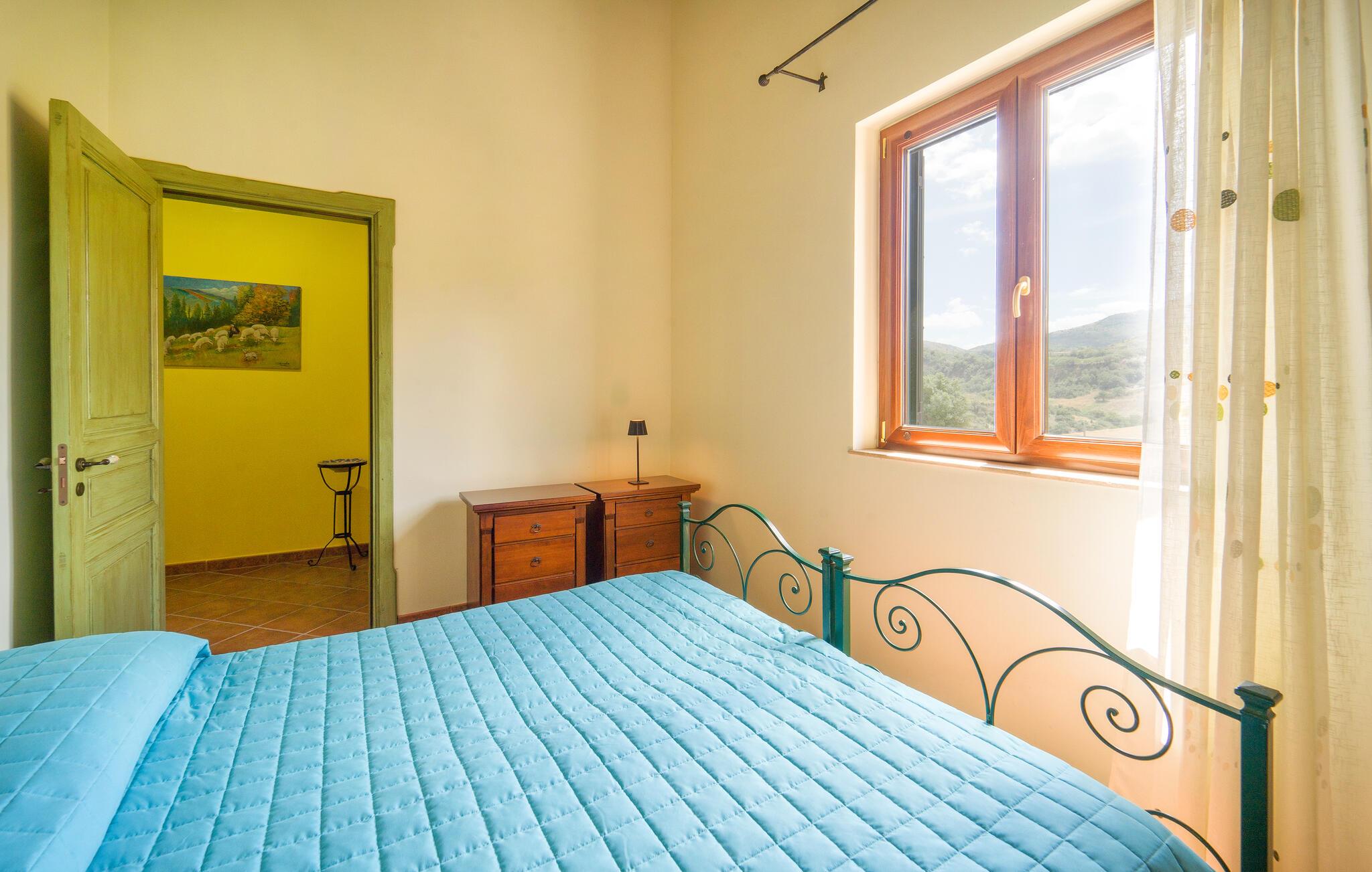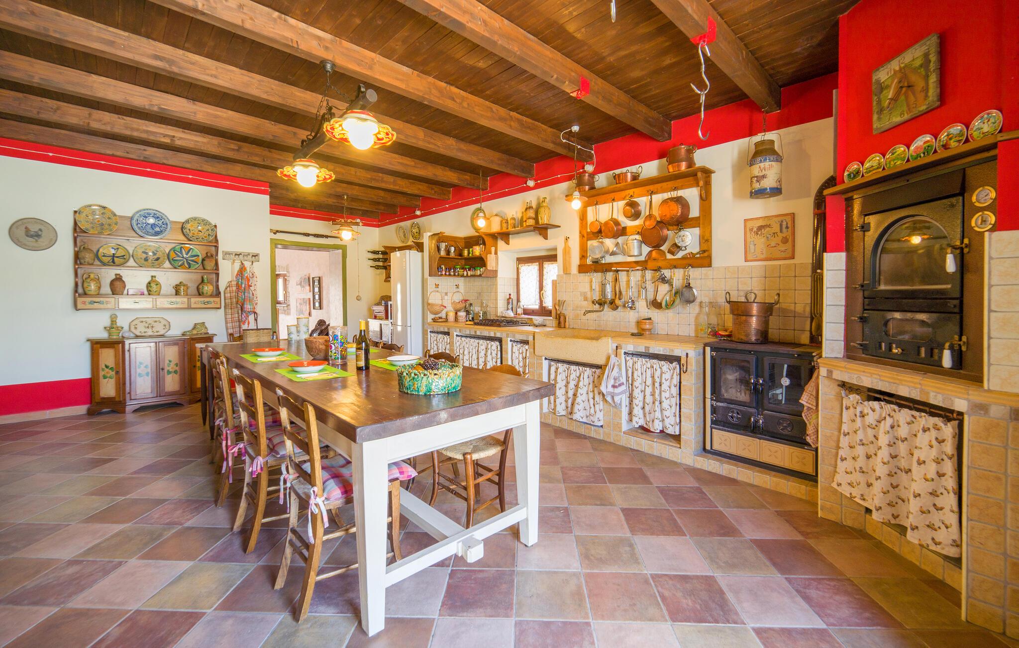 Denne rummelige bolig tilbyder det perfekte tilflugtssted for en afslappende pause og er noget særligt med sin rustikke skønhed og betagende udsigt over det omkringliggende bakkede landskab. Den landlige idyl er tydeligt tydelig både udenfor og i hvert hjørne af huset. Begynd jeres feriedage med en afslappet morgenmad i det farverige og nænsomt indrettede spisekøkken. På den skyggefulde terrasse, som er beklædt med storslået løv, kan I nyde den vide udsigt over de bølgende bakker og slappe af. Så udforsk de omfattende omgivelser i feriehuset, som er optimale til afslappende gå- og vandreture.