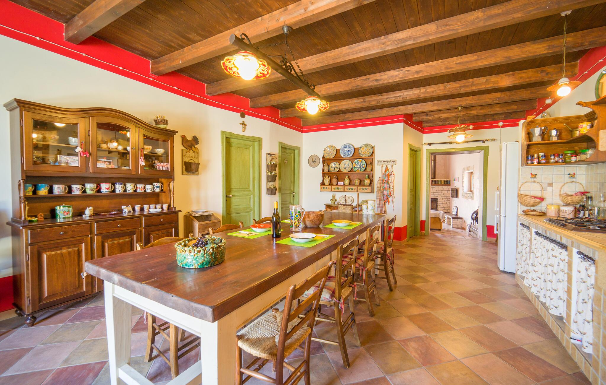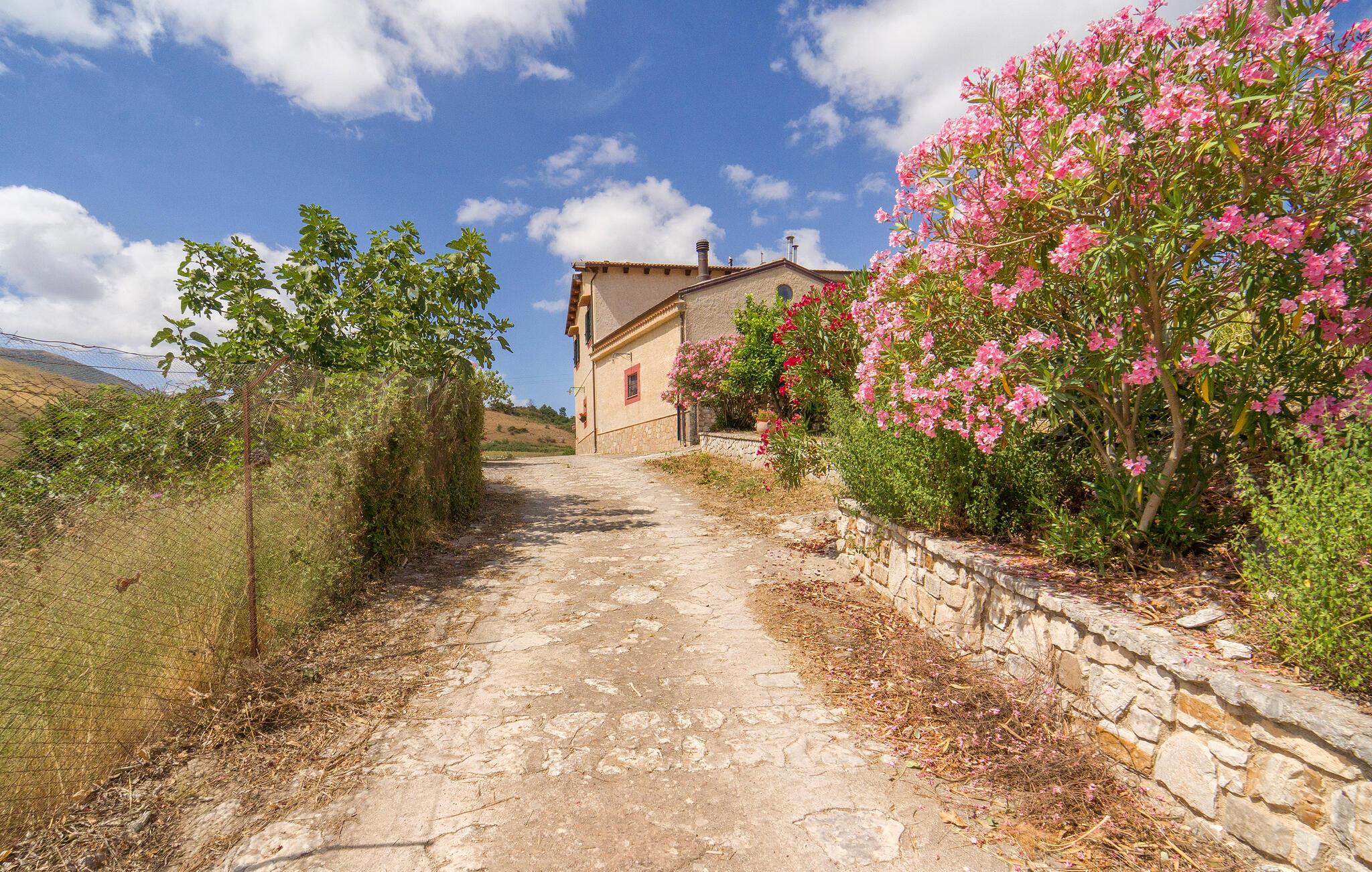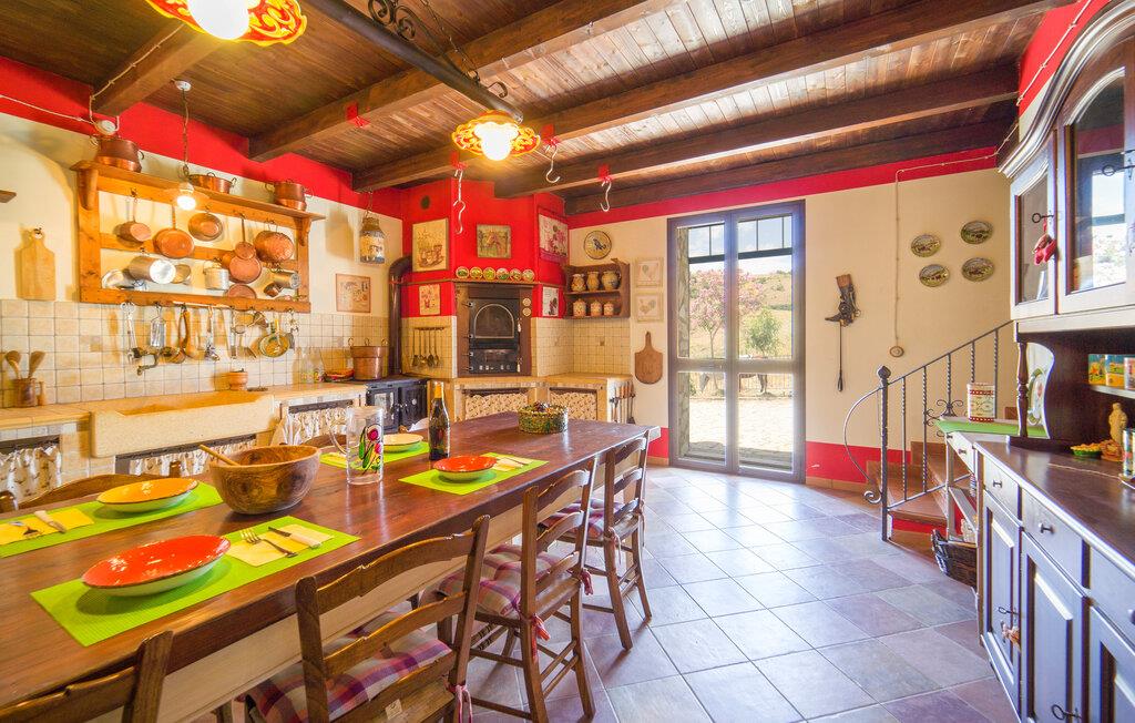 Denne rummelige bolig tilbyder det perfekte tilflugtssted for en afslappende pause og er noget særligt med sin rustikke skønhed og betagende udsigt over det omkringliggende bakkede landskab. Den landlige idyl er tydeligt tydelig både udenfor og i hvert hjørne af huset. Begynd jeres feriedage med en afslappet morgenmad i det farverige og nænsomt indrettede spisekøkken. På den skyggefulde terrasse, som er beklædt med storslået løv, kan I nyde den vide udsigt over de bølgende bakker og slappe af. Så udforsk de omfattende omgivelser i feriehuset, som er optimale til afslappende gå- og vandreture.