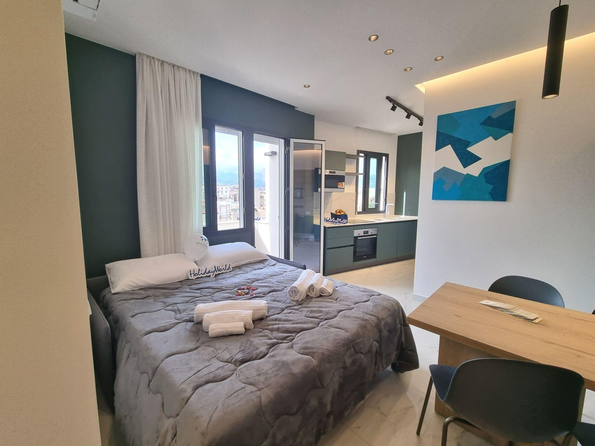 MaXelA Penthouse is a magnificent, recently renovated flat located in Palermo(PA). This wonderful accommodation can easily be divided into two separate flats (MaXela Penthouse Grey and MaXela Penthouse Green), and consists of two large open spaces with a living area and sofa bed, two dining areas and equipped kitchenettes. The area is very bright thanks to the large windows in the flats and access to the balconies. The accommodation has two bathrooms with shower and bidet while the sleeping area consists of two large bedrooms with double beds. Equipped with every comfort such as air conditioning and Wi-Fi, this flat is the perfect starting point for visiting Palermo and the surrounding areas in comfort and company.
