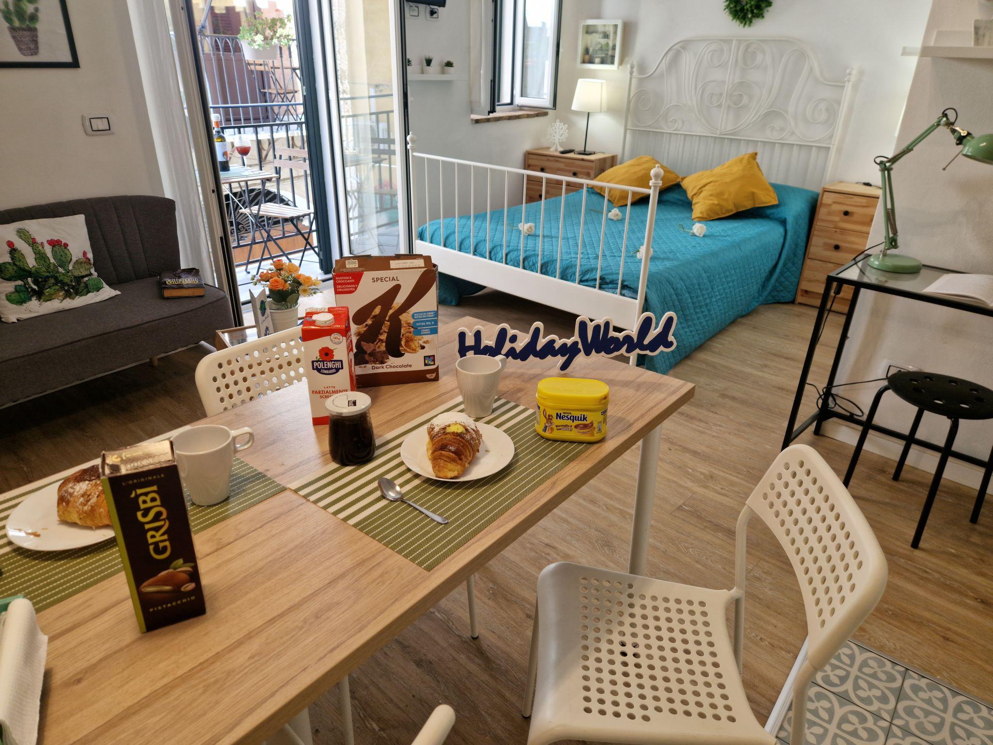 Come a casa is a practical and functional studio apartment located in the heart of Palermo's lively movida, in a central area full of life and amenities. The room is cosy and well organised, consisting of a functional kitchenette and dining area, while the sleeping area consists of a comfortable double bed and sofa, perfect for relaxing moments. The flat also has a modern bathroom, complete with shower and bidet, finished with attention to detail. The balcony provides natural light throughout the day and a pleasant outdoor space to enjoy the urban atmosphere.