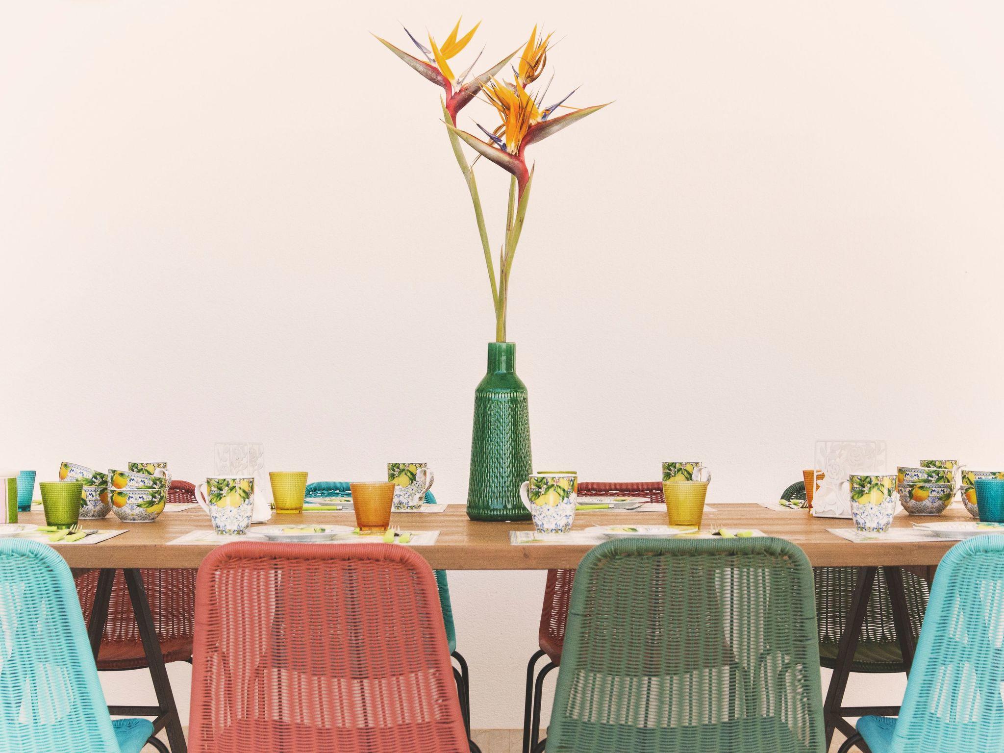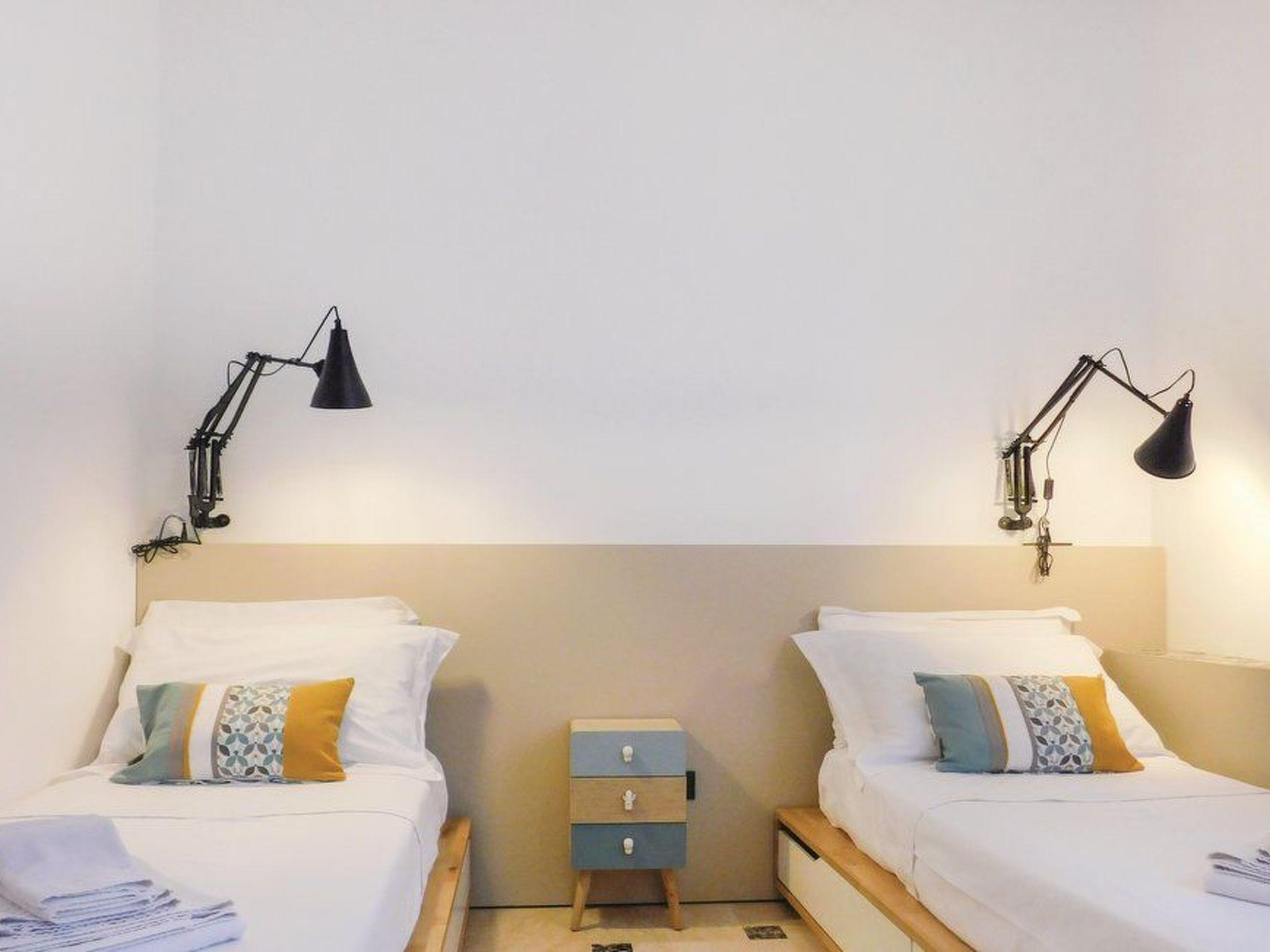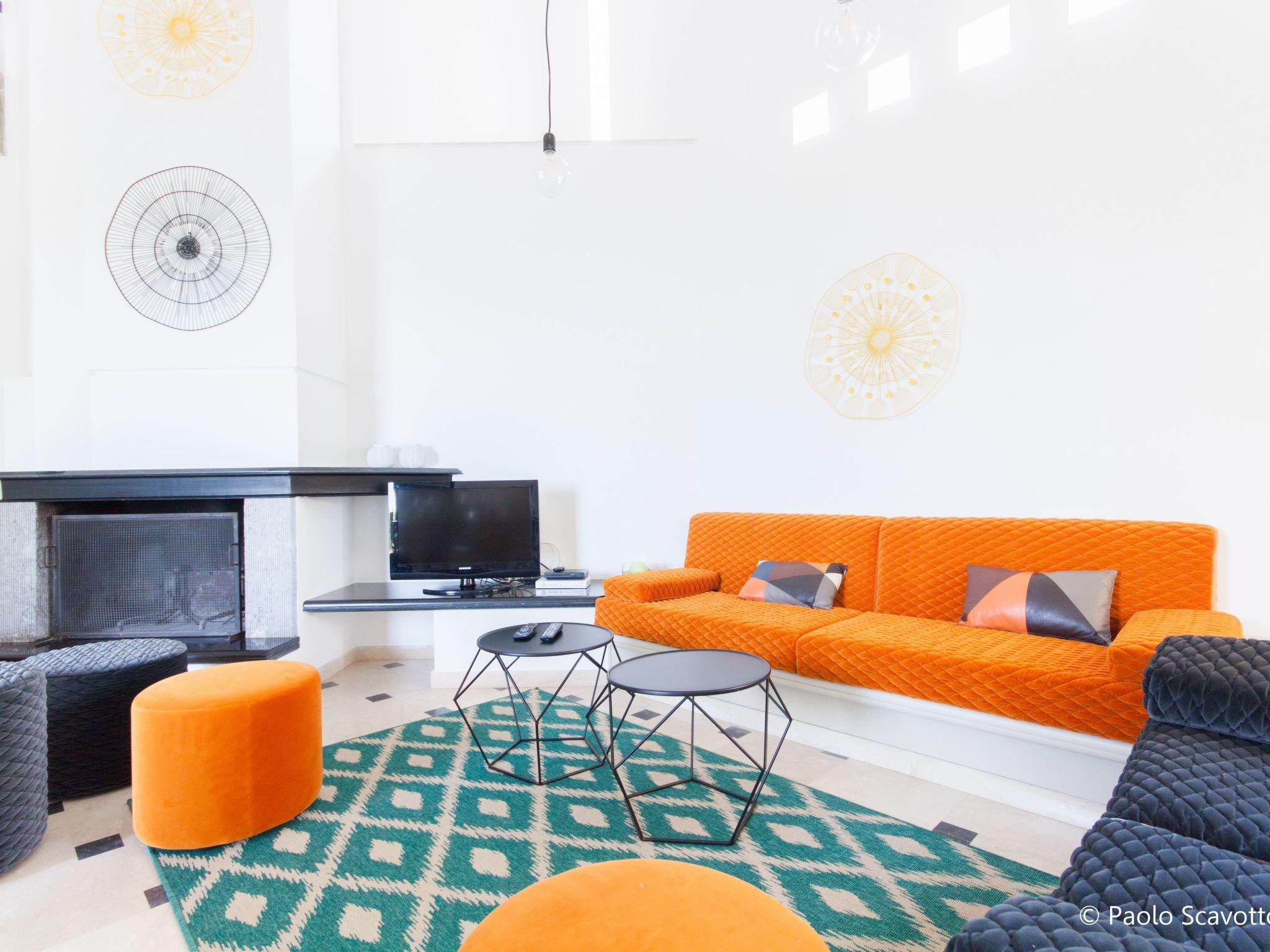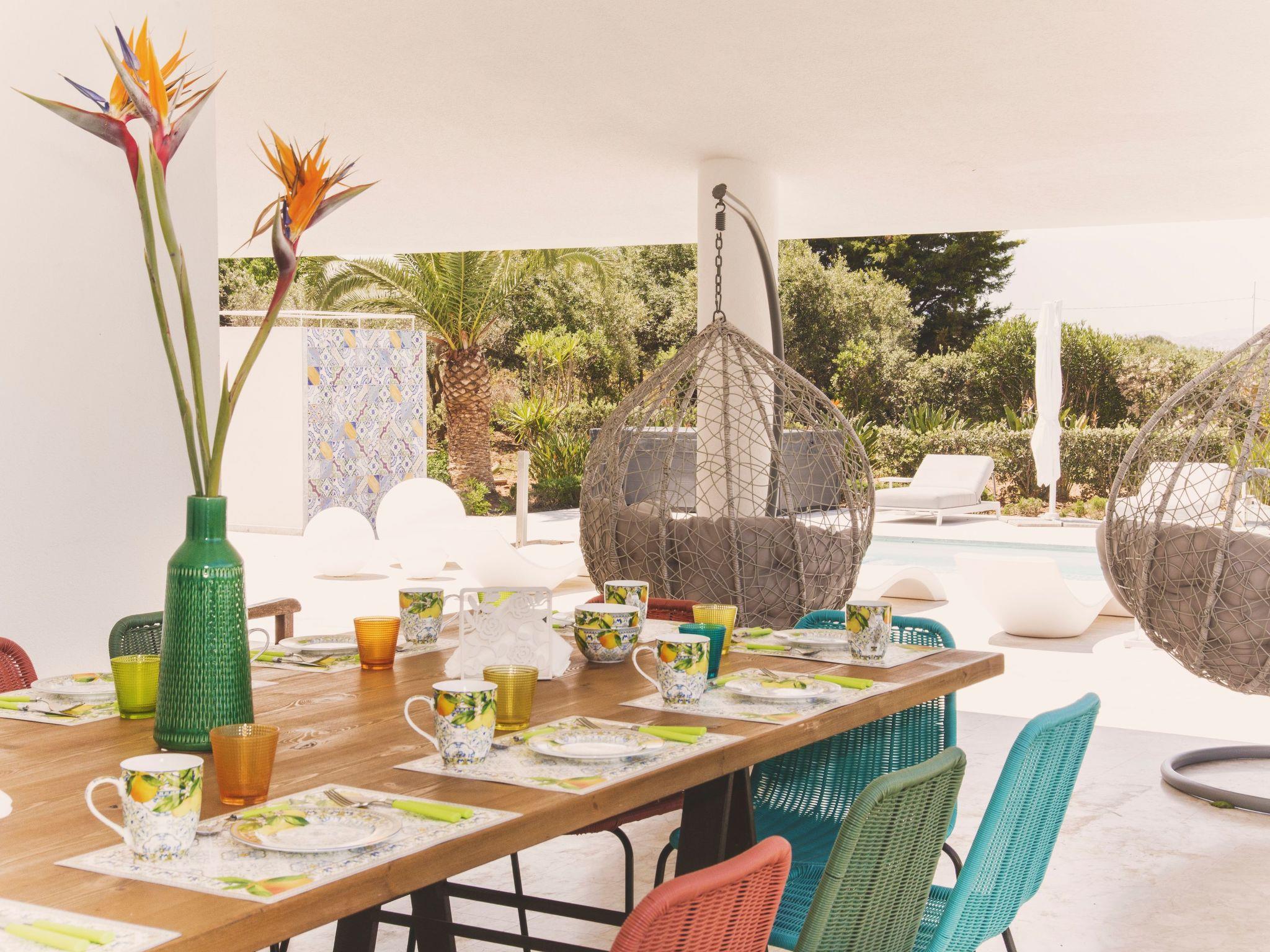 The cosy, well-divided interiors are furnished with design furniture of understated elegance. The living room and the kitchen overlook the large terrace equipped for outdoor dining (furniture, outdoor shower, barbecue).The rooms, bright and fresh, are furnished with taste and personality. EQUIPMENT Washing machine, Iron, 6 Hairdryers, 2 Fridges, 2 Freezers, Toaster, American coffee maker, Capsules coffee maker, 2 Colour TV with satellite channels, 2 Satellite receiver, Indoor kitchen: 4 gas burners, Oven, Microwave, Fireplace, Cd player, Dvd player, High chair, Fans: 2, Air conditioning: 7 Outdoor kitchen: 4 gas burners. Laundry with washing machine. Outdoor 8-seater whirlpool bath. ACCOMMODATION Inside: Ground Floor: living-dining room with fireplace, kitchen open onto the living room, 1 double bedroom, 1 twin bedroom, 2 bathrooms with shower, 1 service bathroom. First Floor: 3 double bedrooms, 2 bathrooms with shower. Dependance: 1 double bedroom, bathroom with shower
