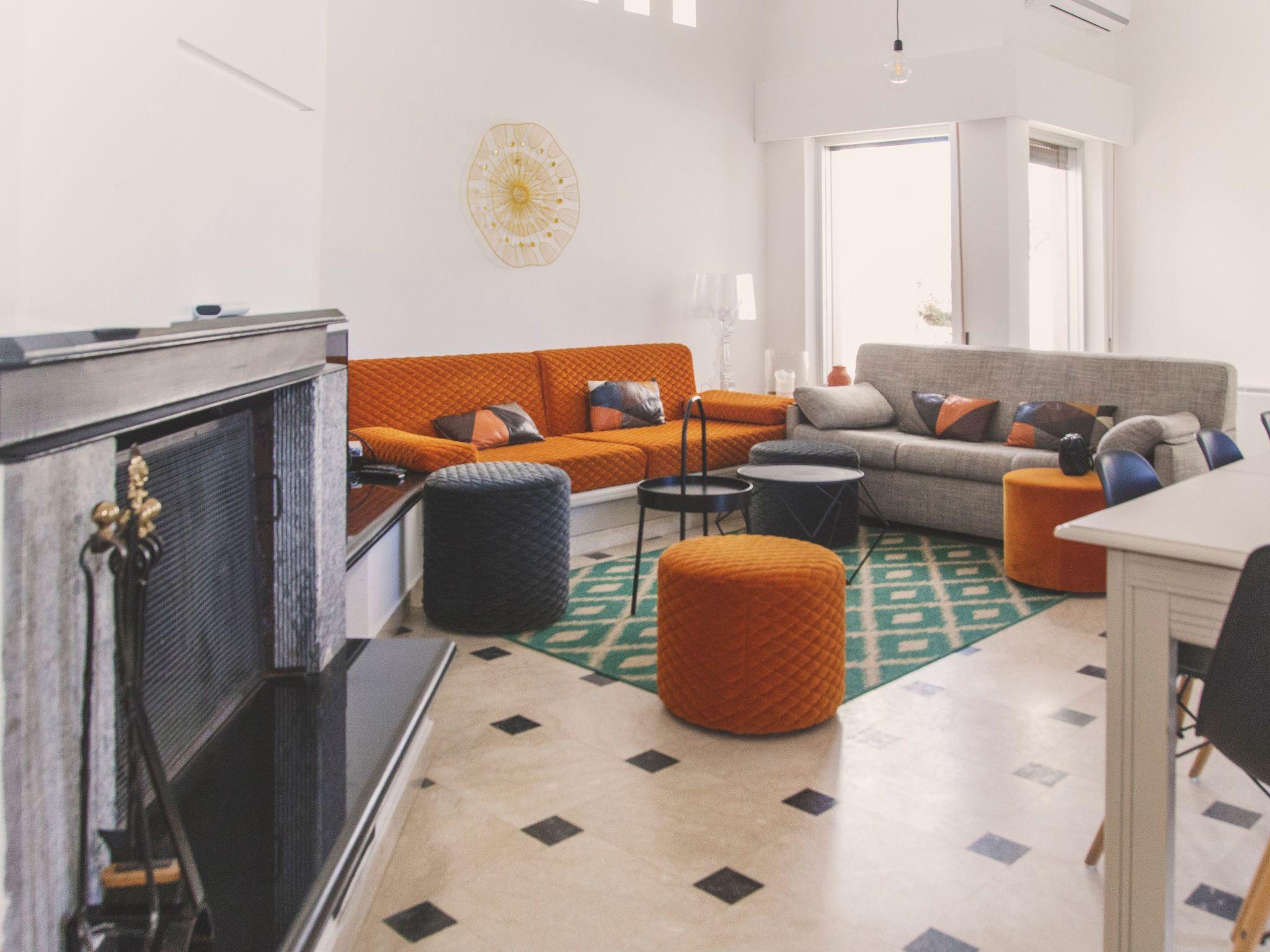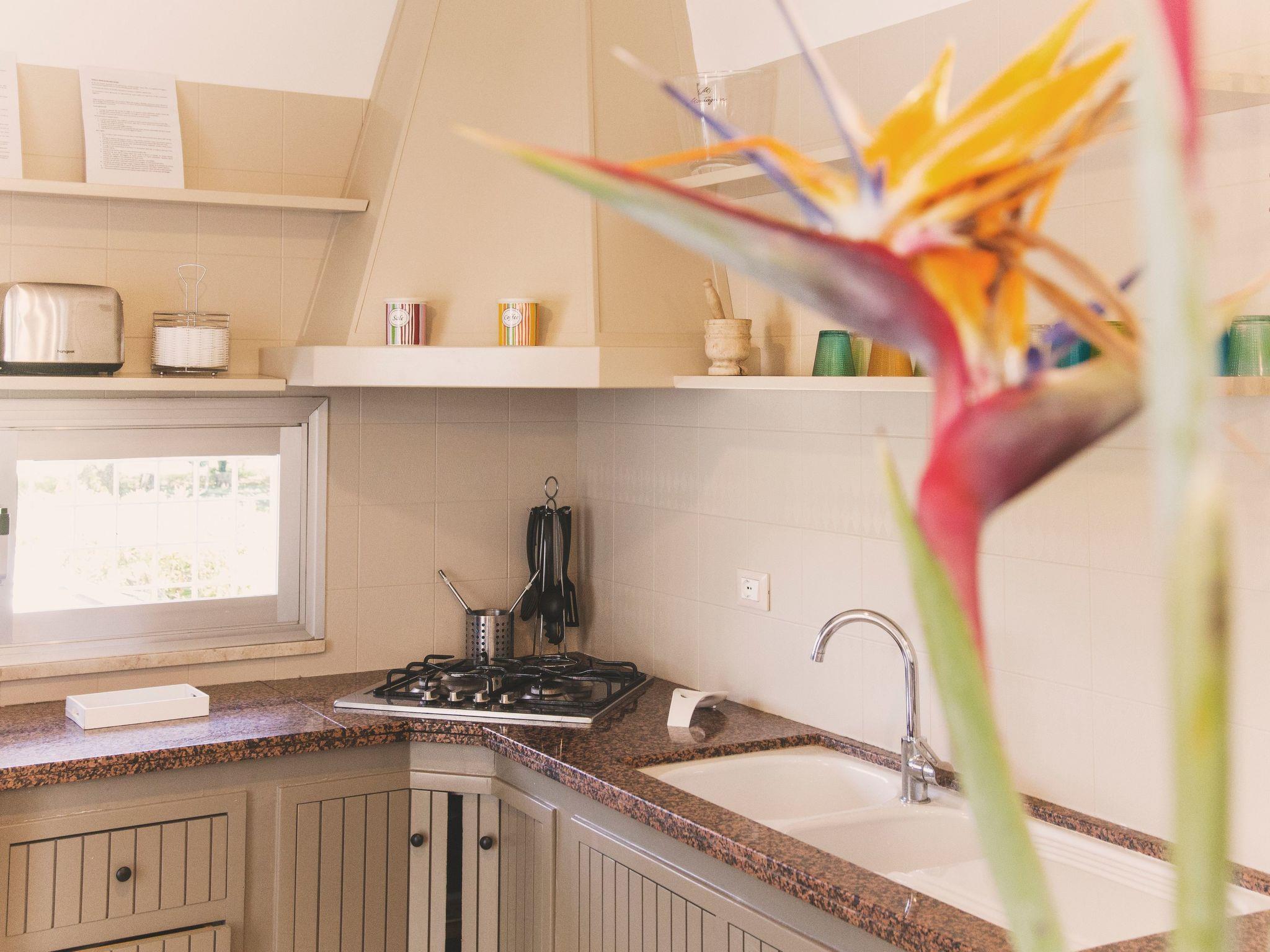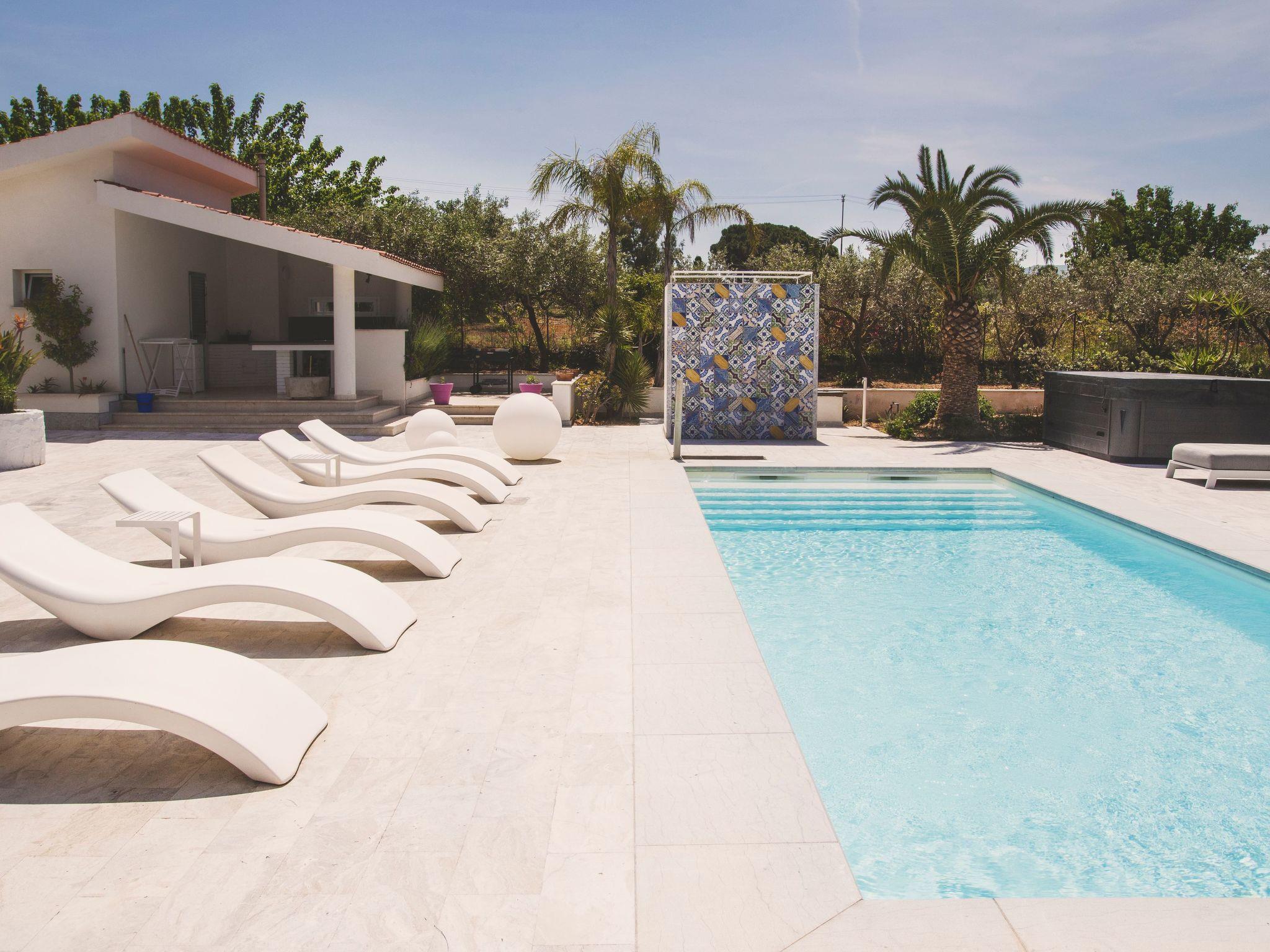 The residence, located in the countryside in a flat area, is surrounded by large equipped spaces and a lush garden with olive, almond, citrus, aromatic and ornamental plants. Terrace, porch, garden with barbecue, sofas, outdoor shower and toilet, dining table, chairs, large swimming pool with deckchairs and parasols. Jacuzzi seating 8. Laundry with washing machine. Hammock under a tree.