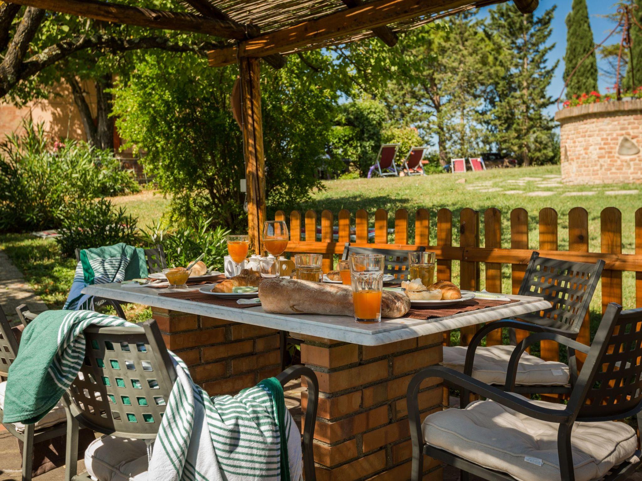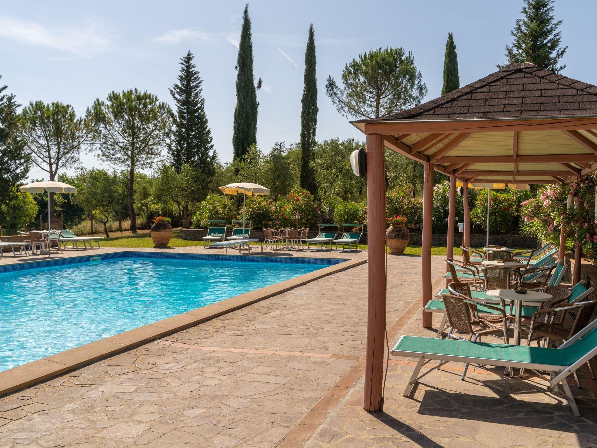 The holiday home has 8 comfortable flats furnished in Tuscan style, all with private terraces, terracotta floors and wood-beamed ceilings. The house is surrounded by a 7000-square-metre garden with swimming pool (20x8 m, open from May to October, depth: 1.4 to 3.0 metres) with hydro-massage corner, table tennis table, children's playground, outdoor barbecue and bocce court.